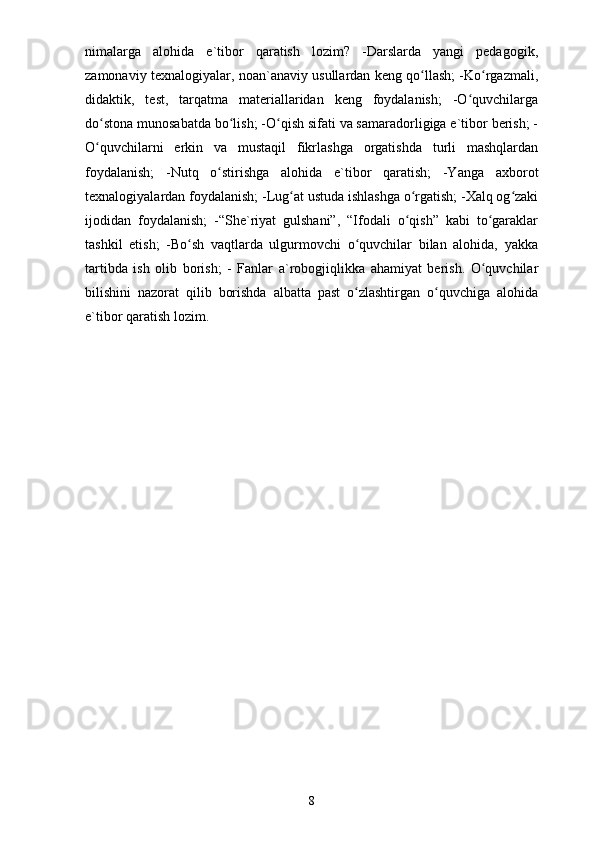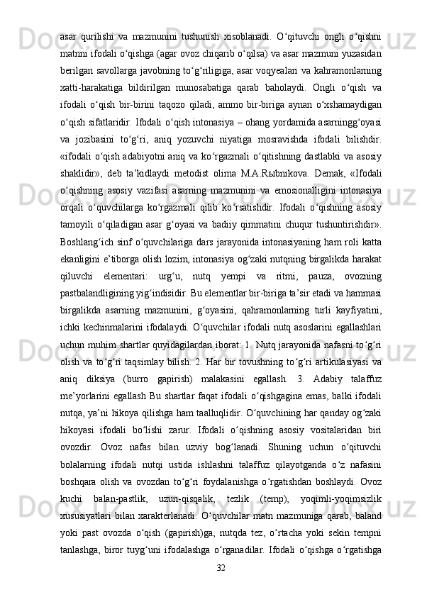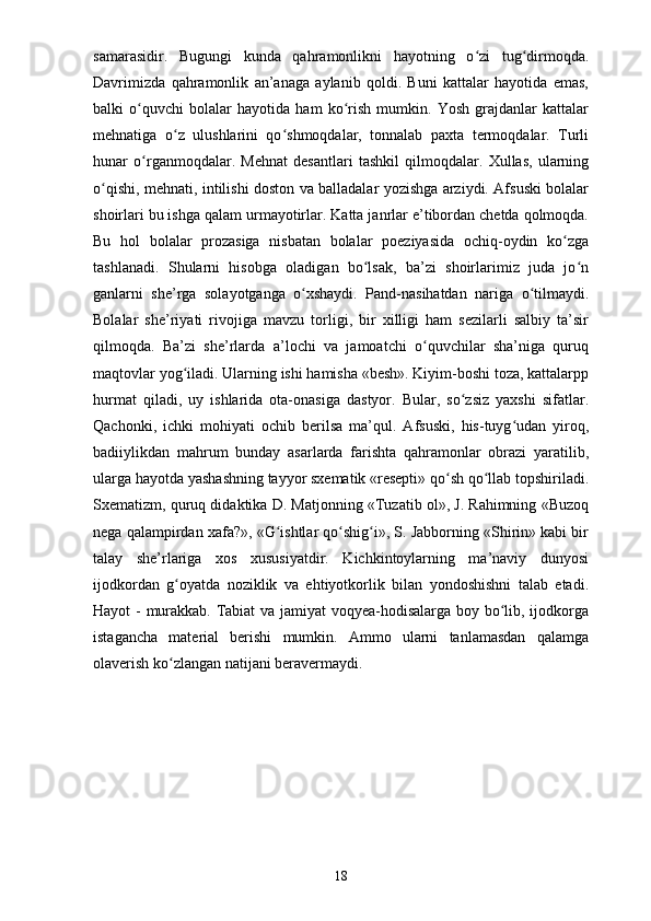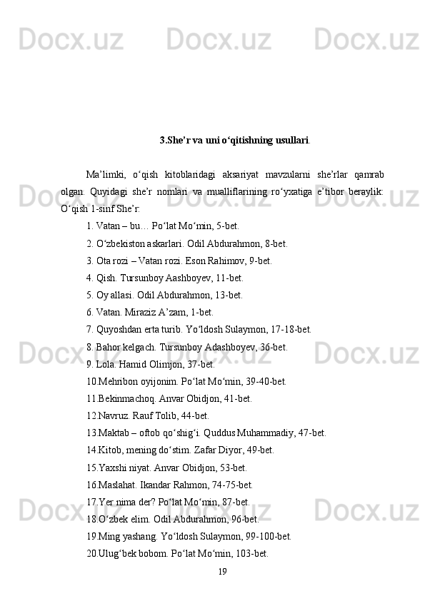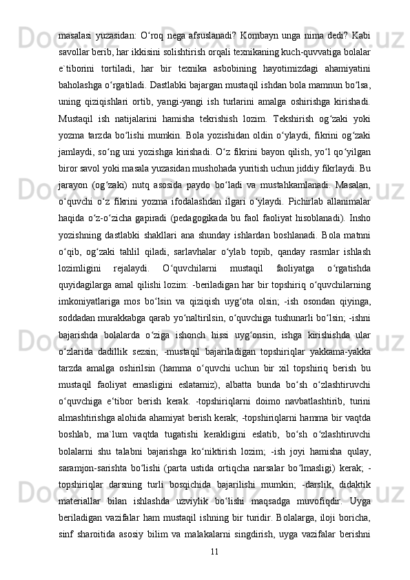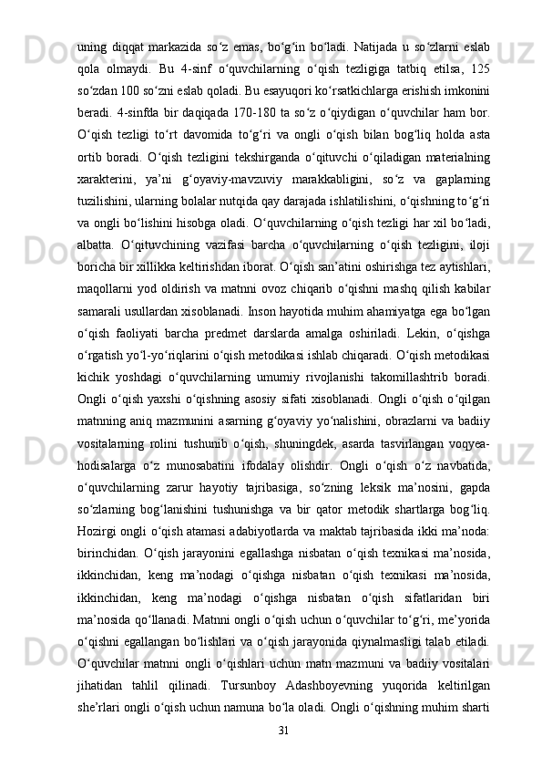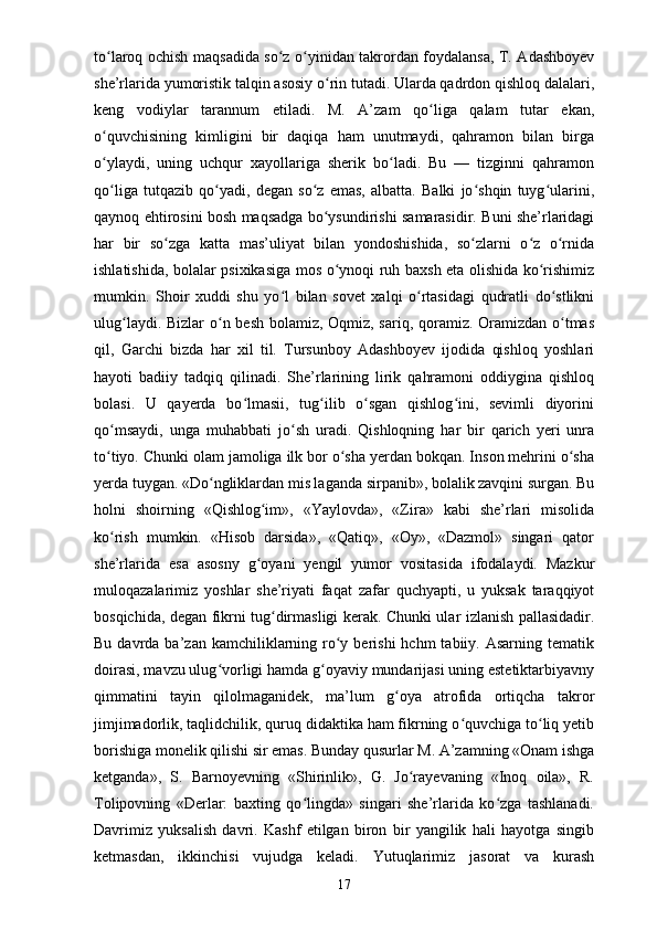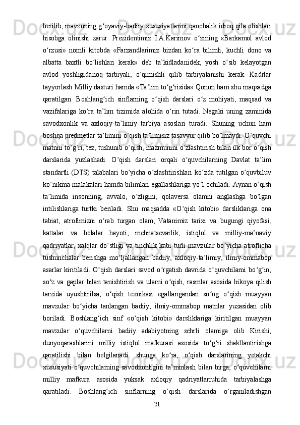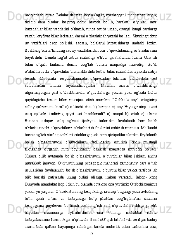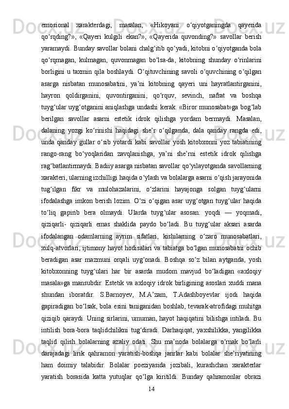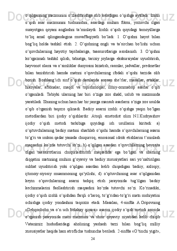 Oʻqish darslarida she'riy asarlarni oʻrganish uslubiyoti
