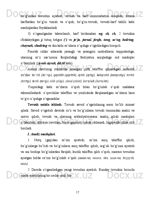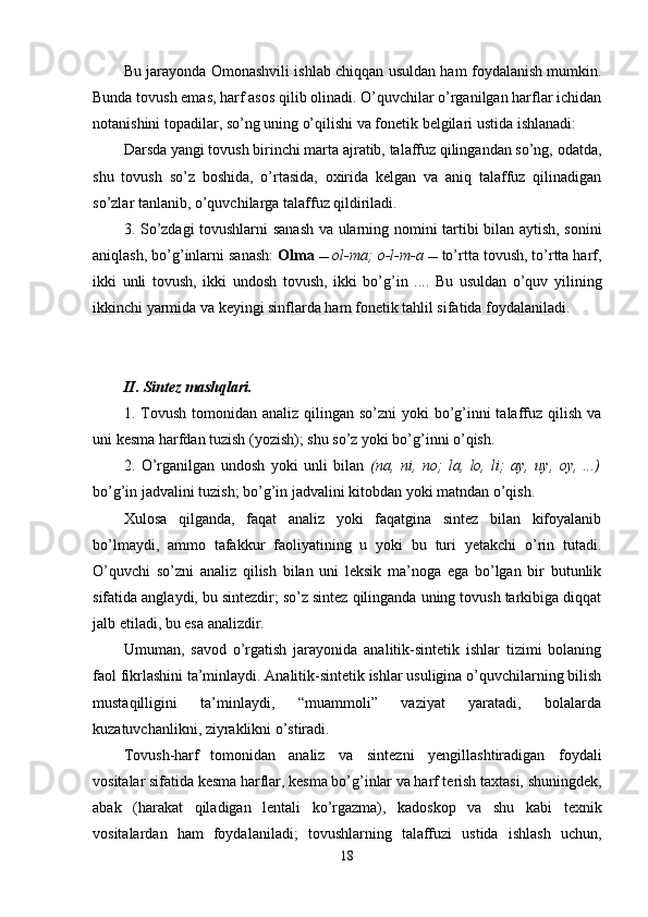 | II-BOB. Savod o’rgatish davrida grammatik-orfografik bilimlarni amaliy o’zlashtirish | |