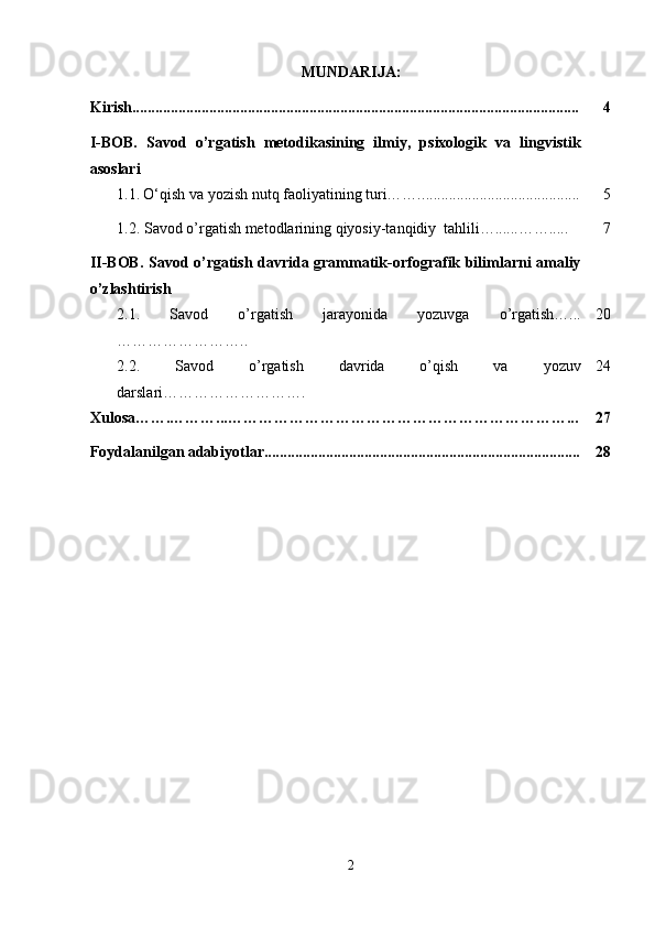 MUNDARIJA: