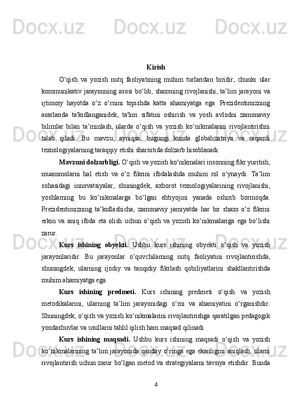 | Kirish.................................................................................................................... | 4 |