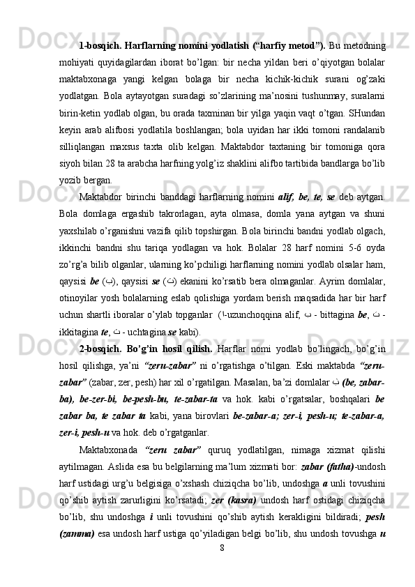 | I-BOB. Savod o’rgatish metodikasining ilmiy, psixologik va lingvistik asoslari | |