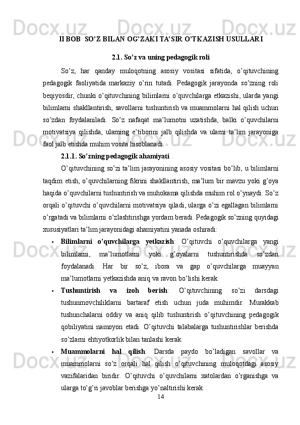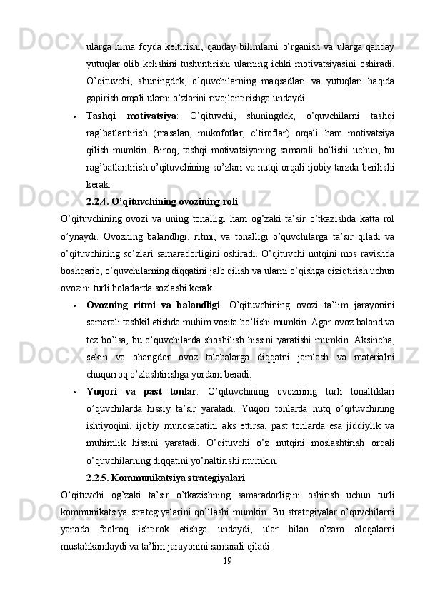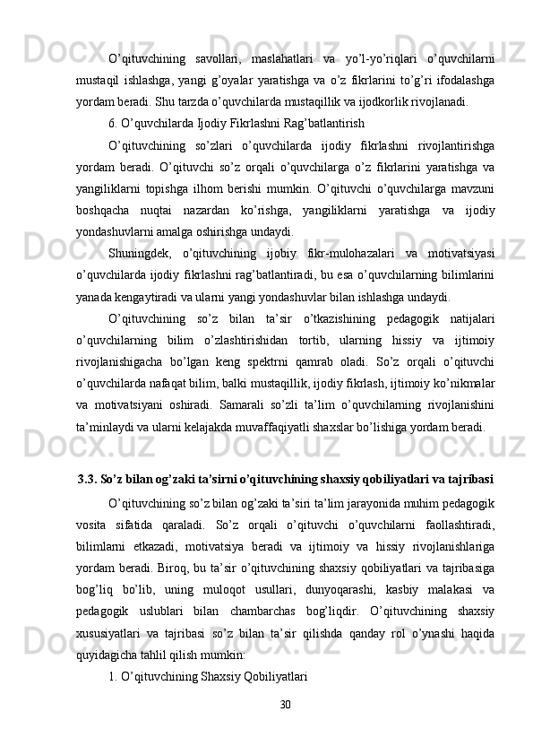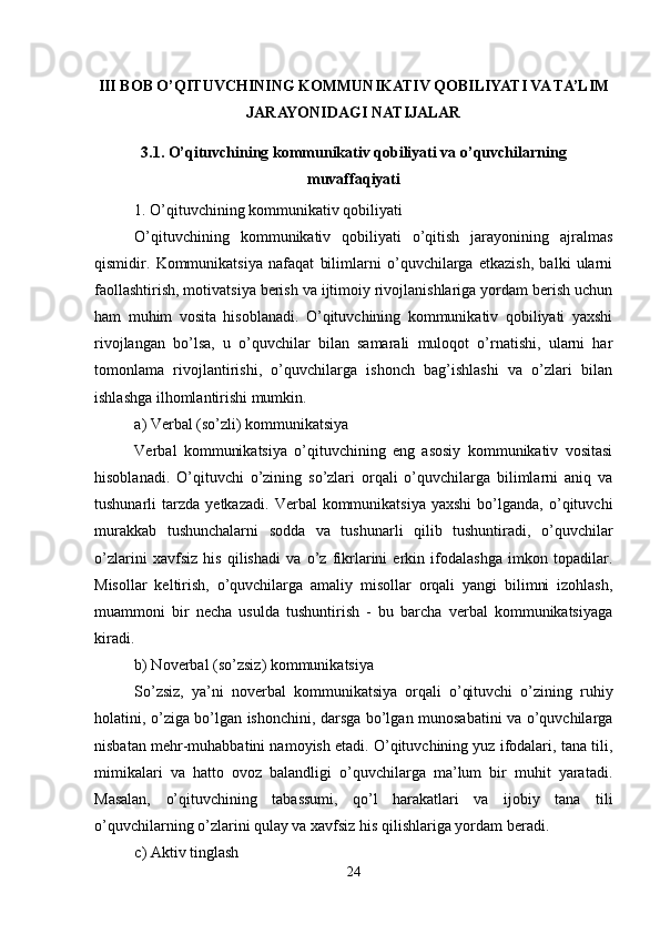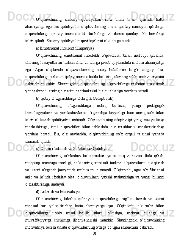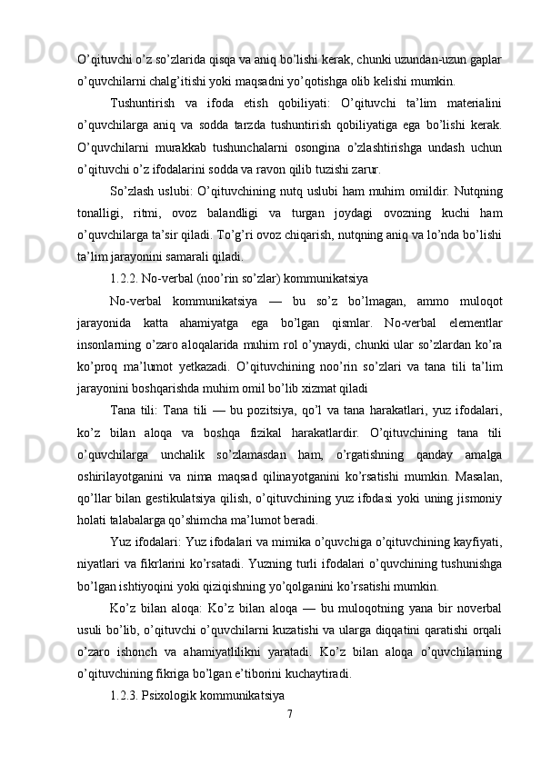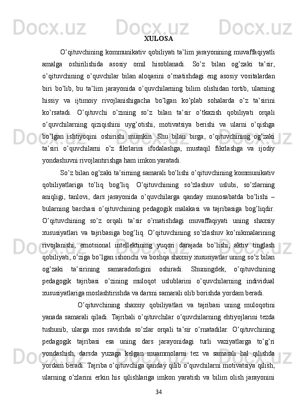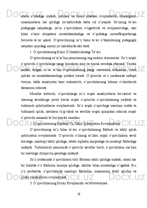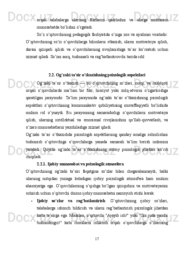 O'qituvchining kommunikativ qobiliyatida so'z bilan og'zaki ta'sir o'tkazish