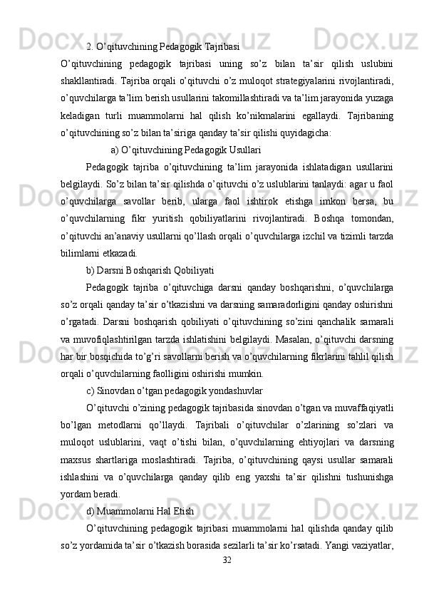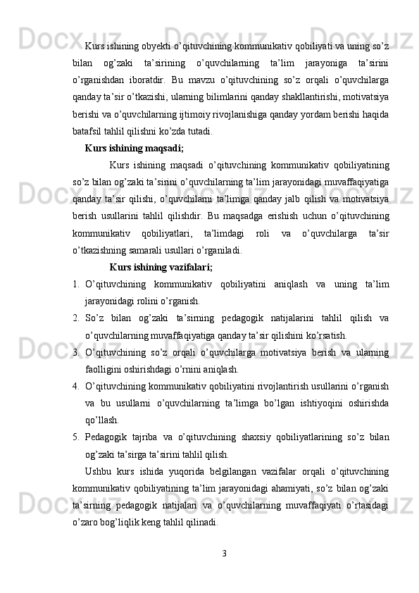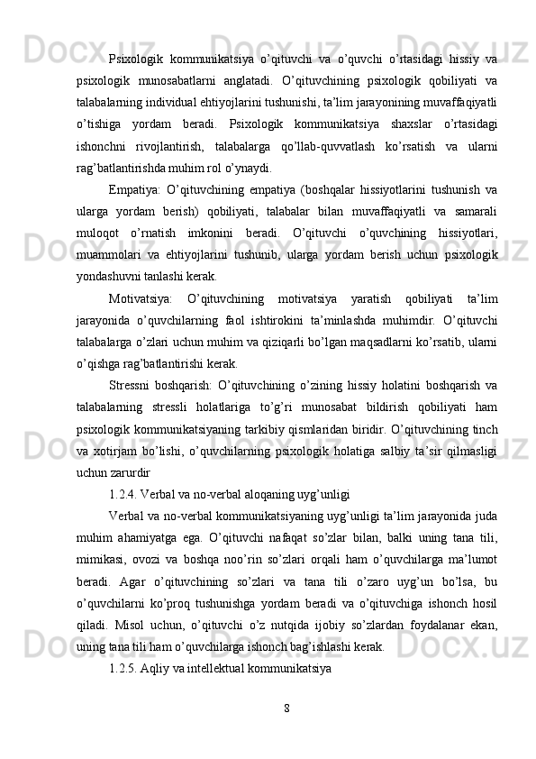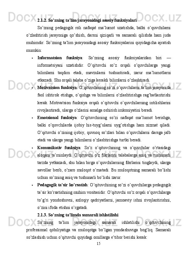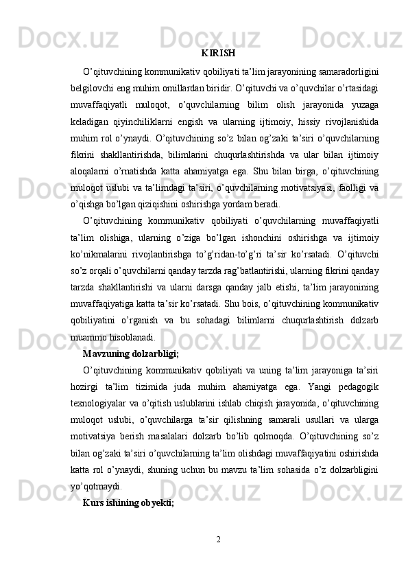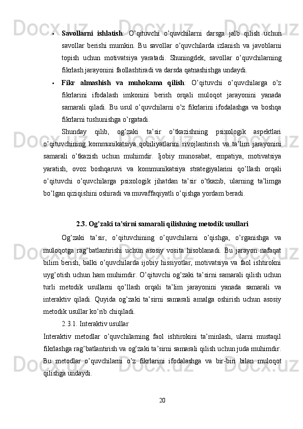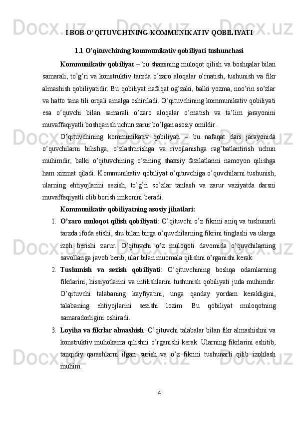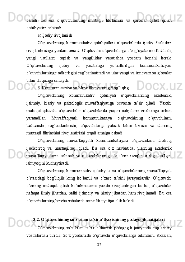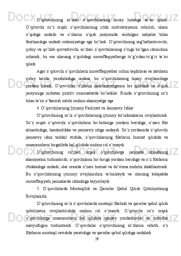 O'qituvchining kommunikativ qobiliyatida so'z bilan og'zaki ta'sir o'tkazish