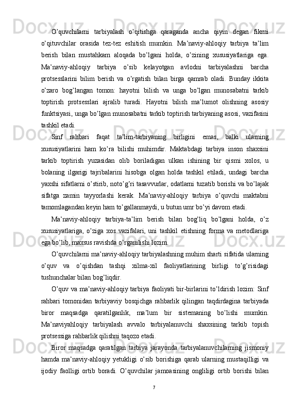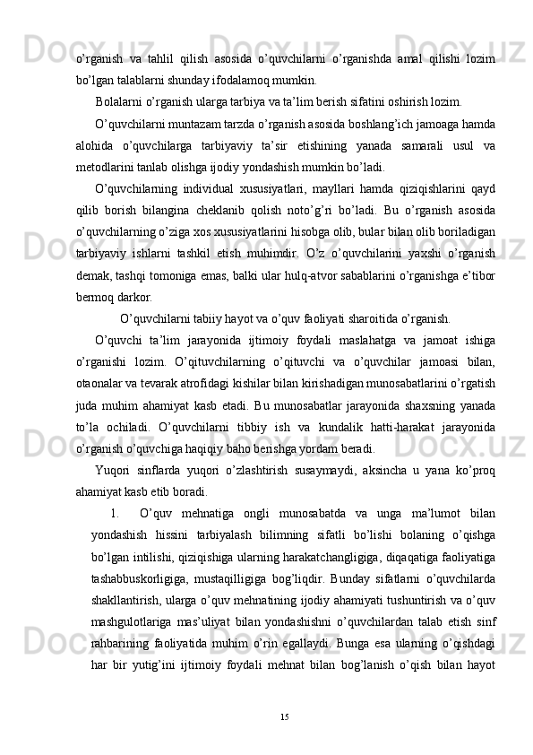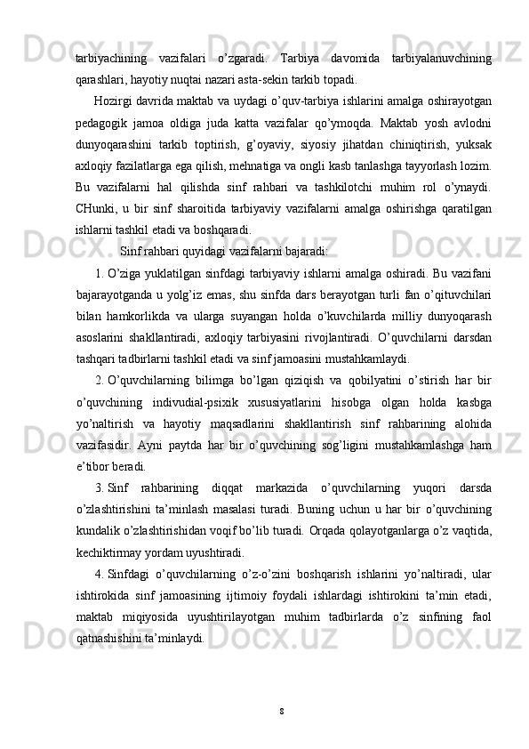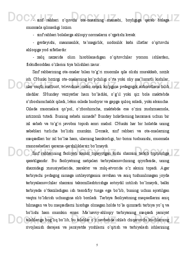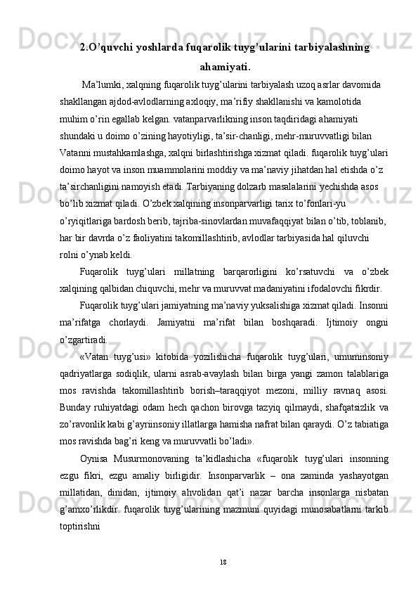 O’quvchi yoshlarda fuqarolik tuyg’ularini tarbiyalashda sinf rahbarining o’rni