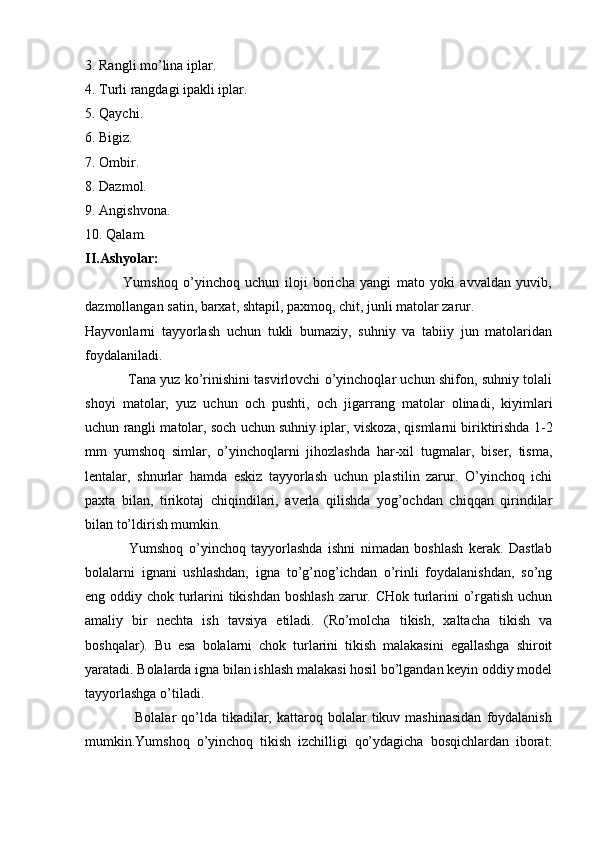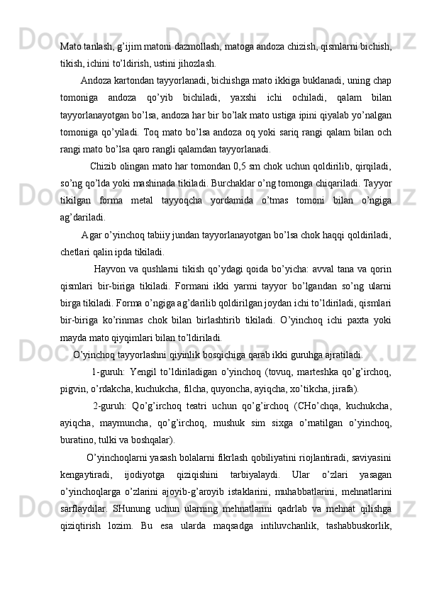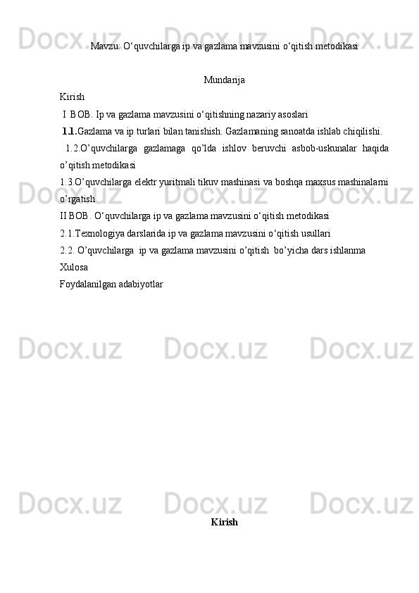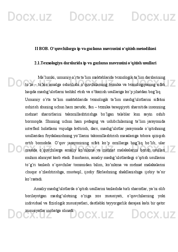 II BOB. O‘quvchilarga ip va gazlama mavzusini o‘qitish metodikasi