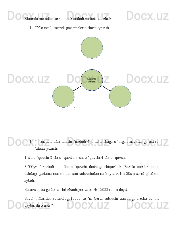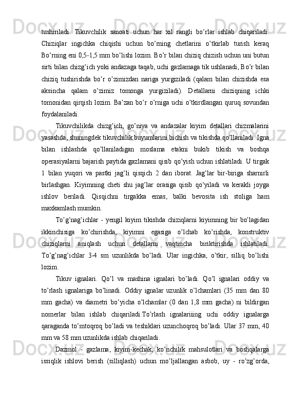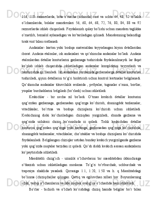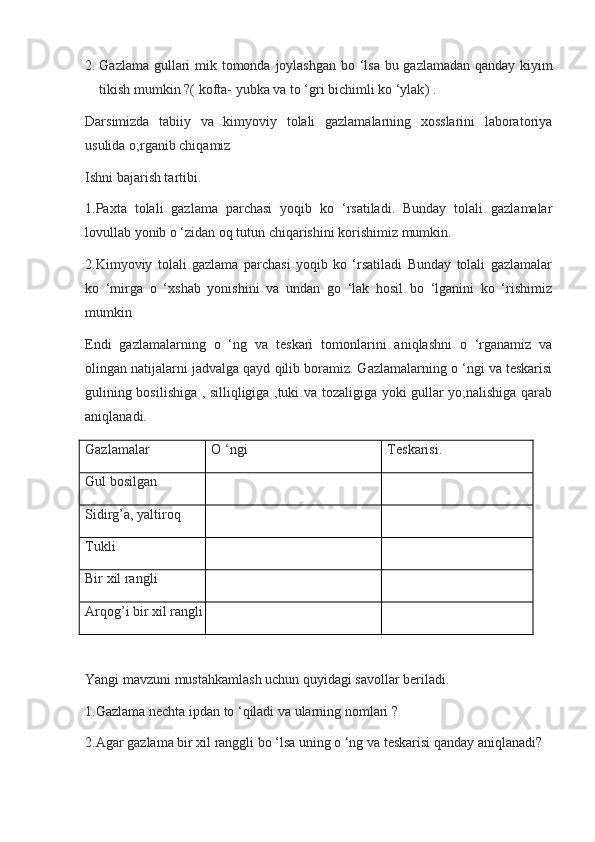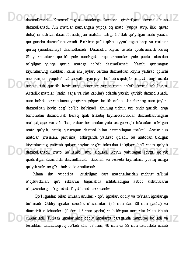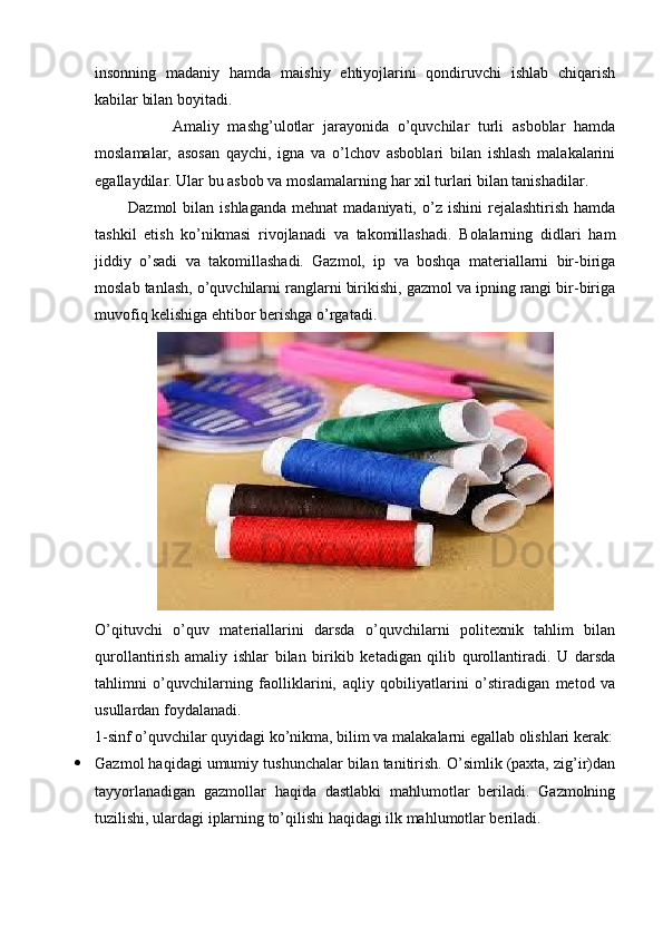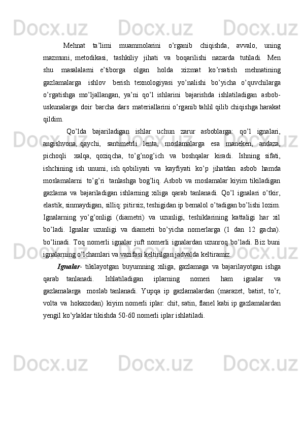 1.2.O’quvchilarga gazlamagaqo’lda ishlov beruvchi asbob-uskunalar haqida o’qitish metodikasi