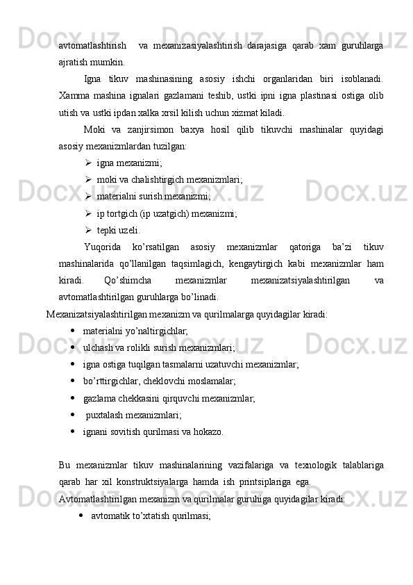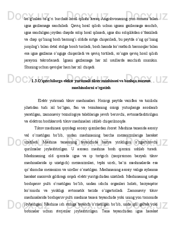 1.3.O’quvchilarga elektr yuritmali tikuv mashinasi va boshqa maxsus mashinalarni o’rgatish