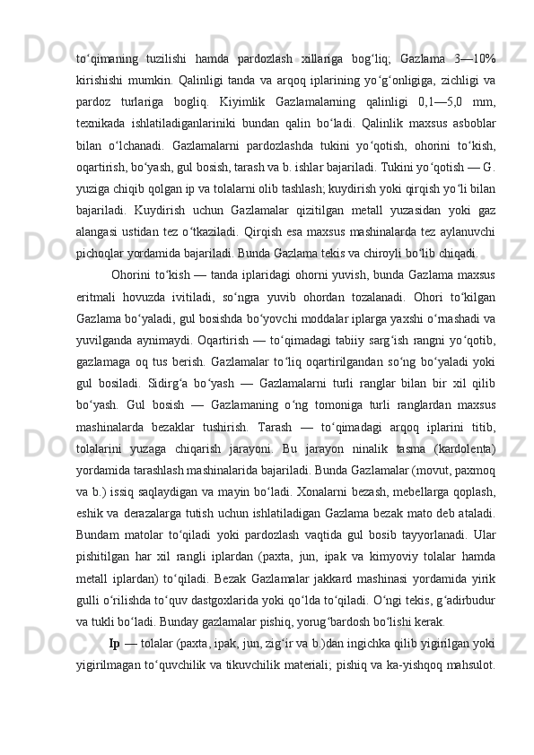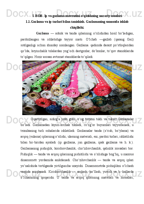1.1.Gazlama va ip turlari bilan tanishish.Gazlamaning sanoatda ishlab chiqilishi.