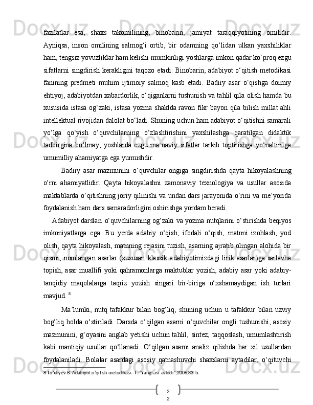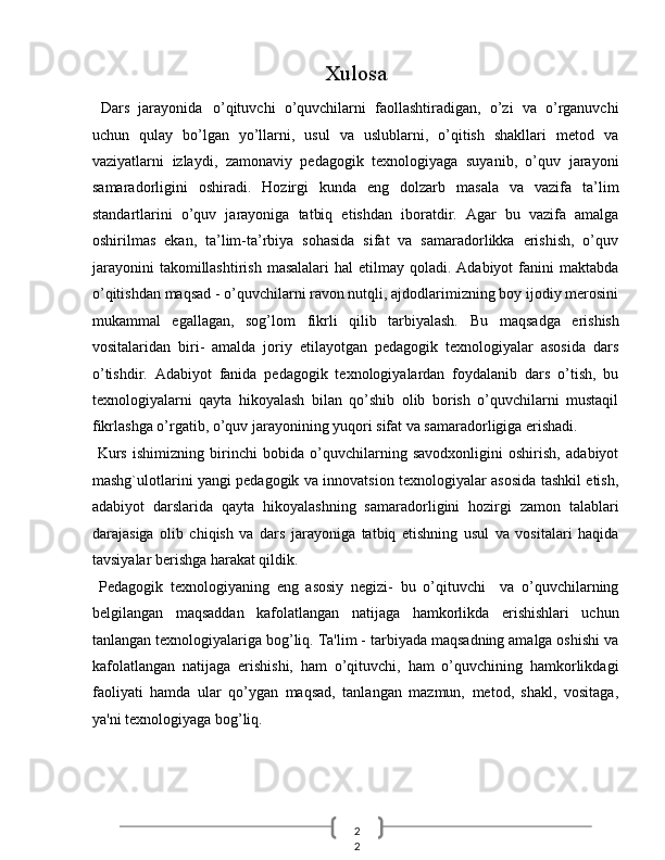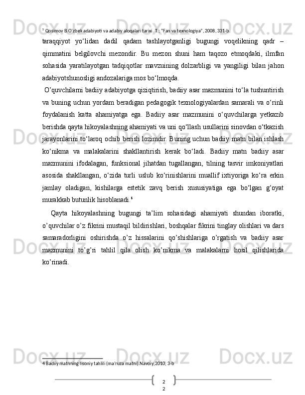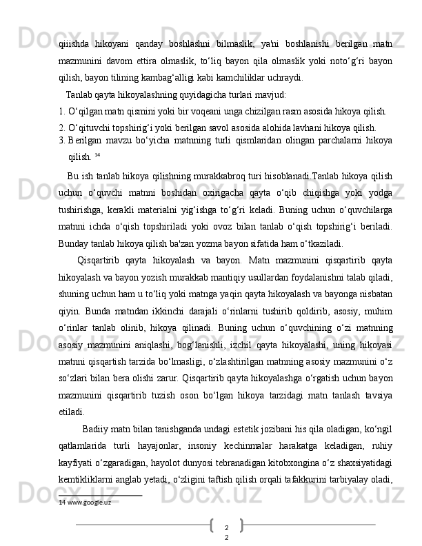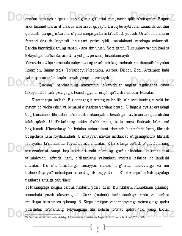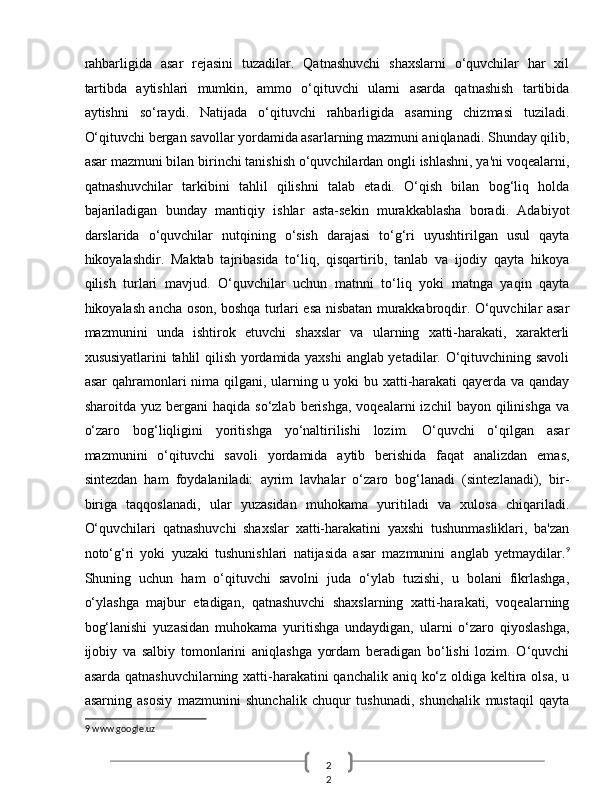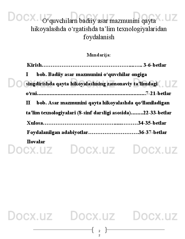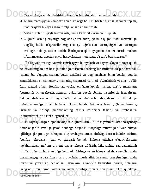 O‘quvchilarn badiiy asar mazmunini qayta hikoyalashda o‘rgatishda ta’lim texnologiyalaridan foydalanish