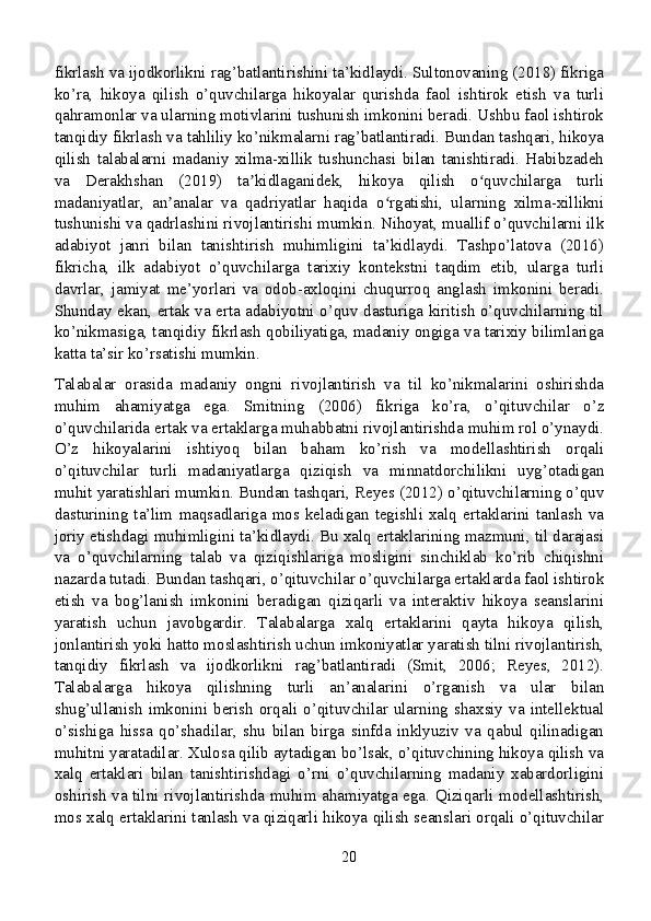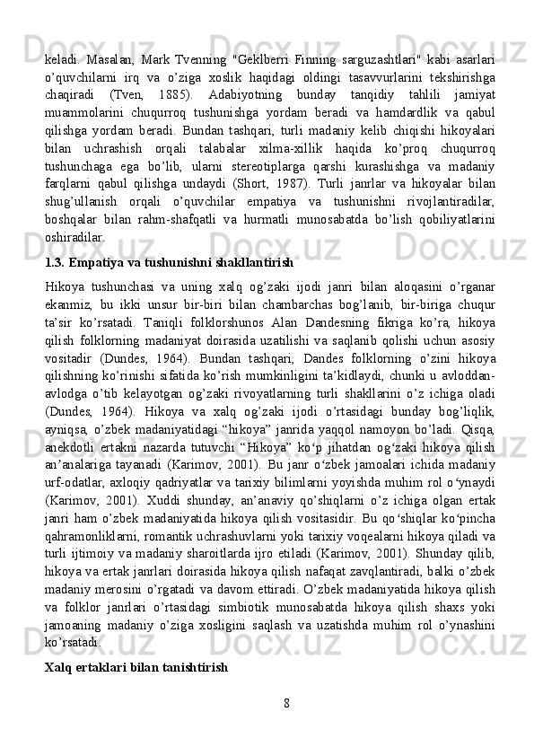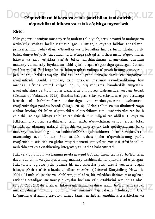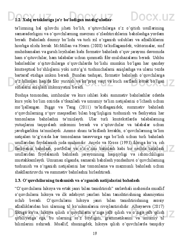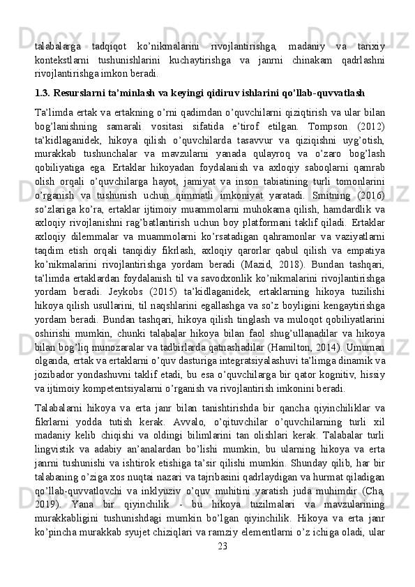 O’quvchilarni hikoya va ertak janri bilan tanishtirish, o’quvchilarni hikoya va ertak o’qishga tayyorlash