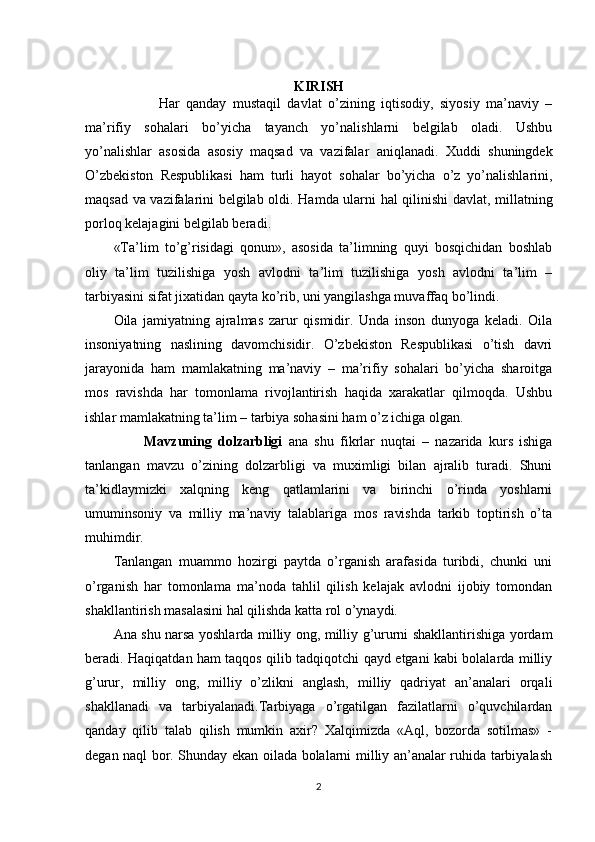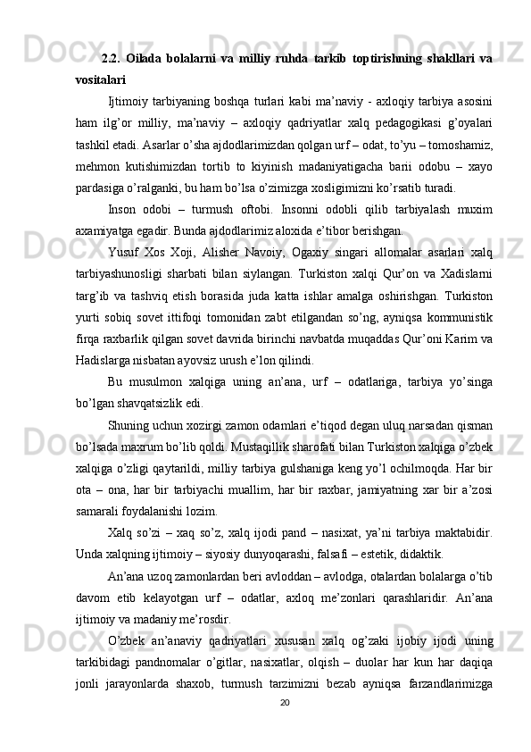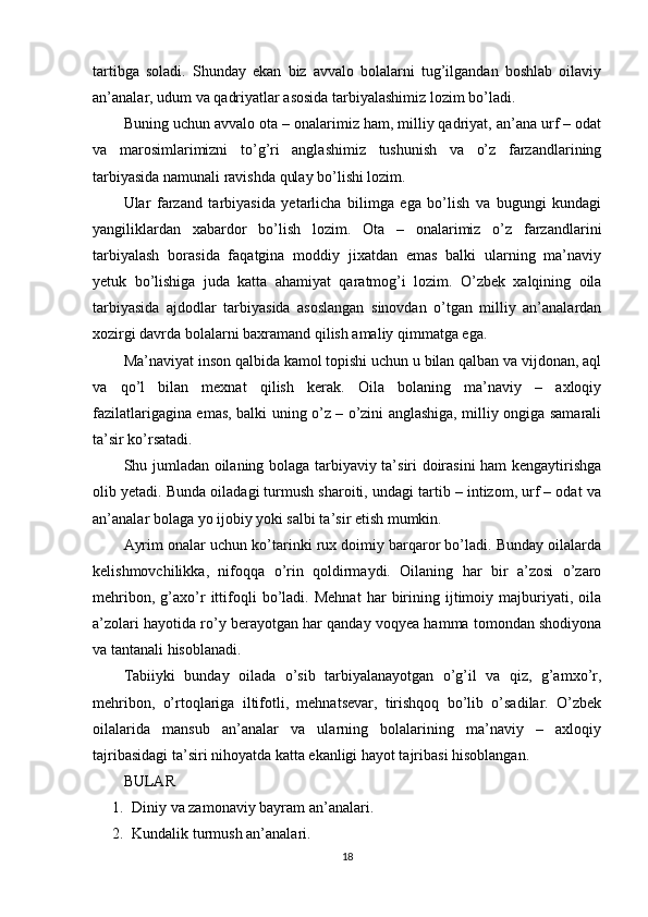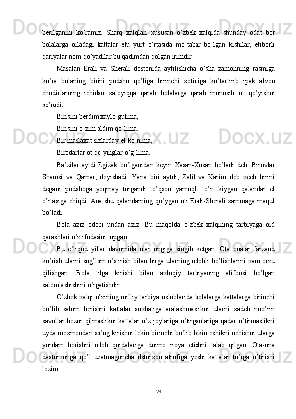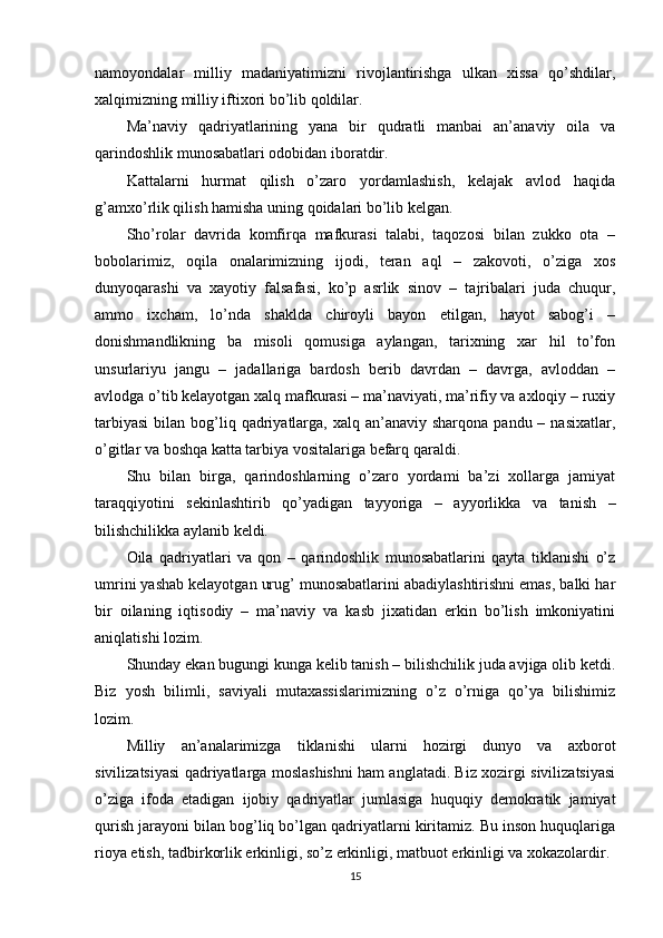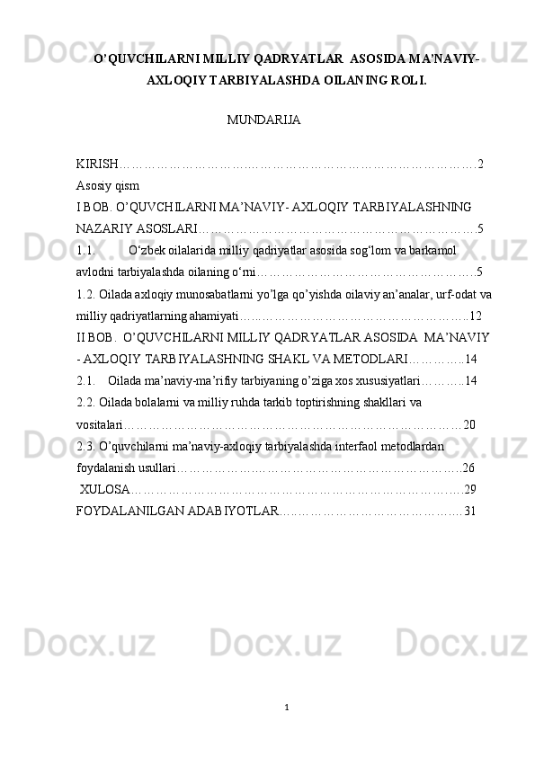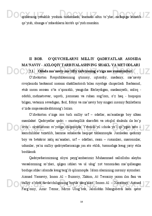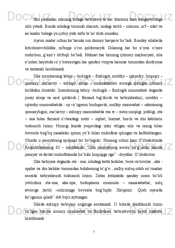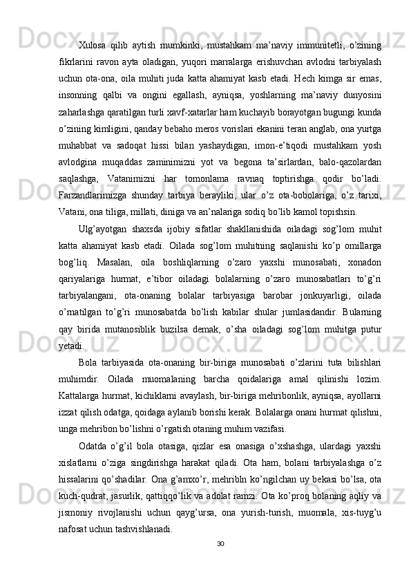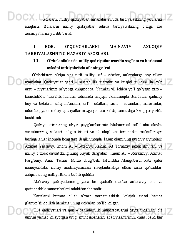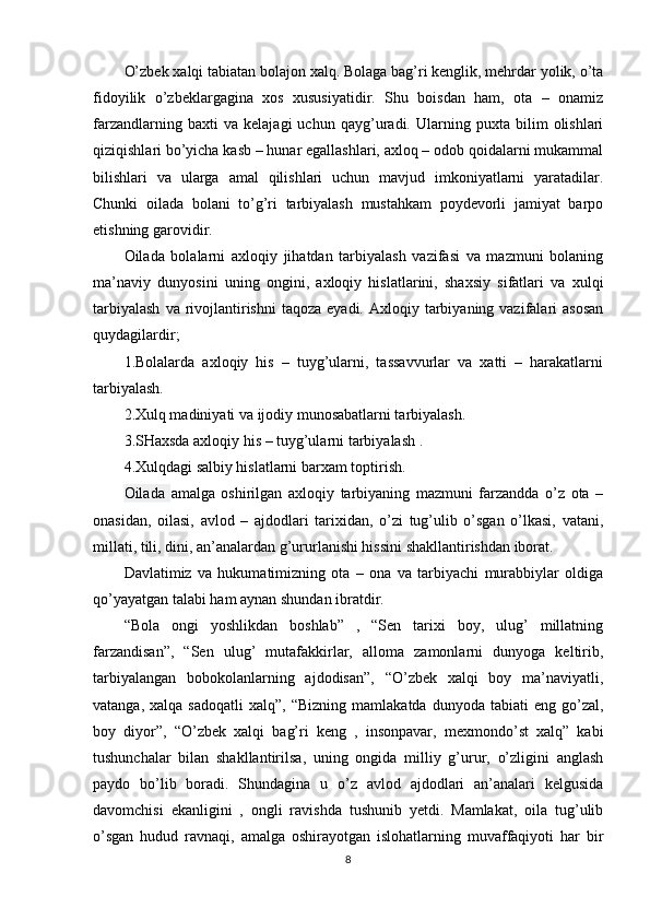 O’quvchilarni milliy qadryatlar asosida ma’naviy- axloqiy tarbiyalashda oilaning roli