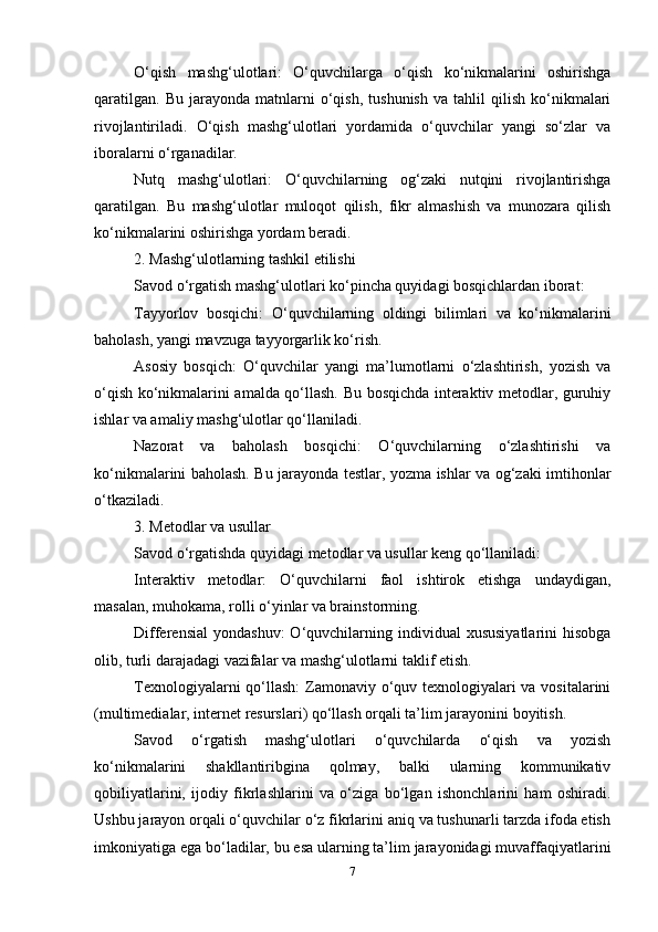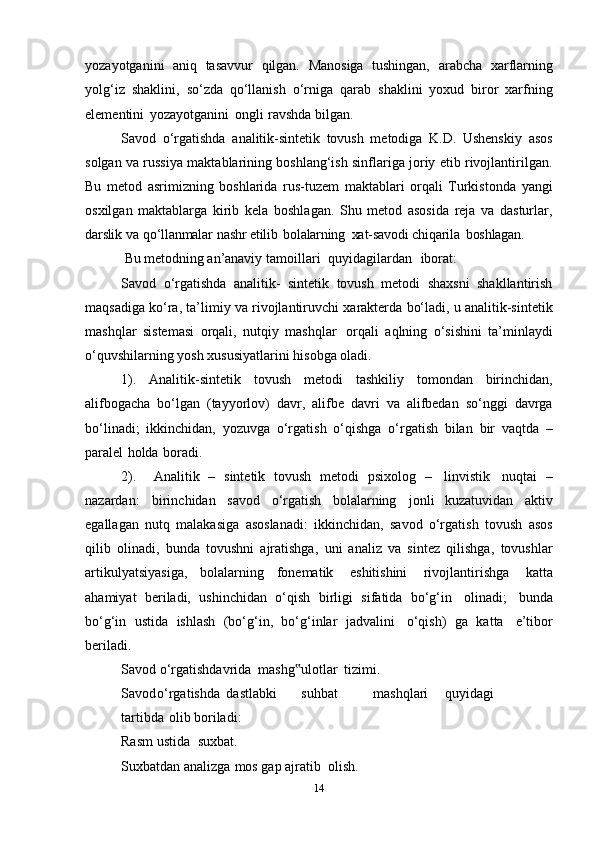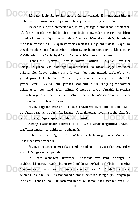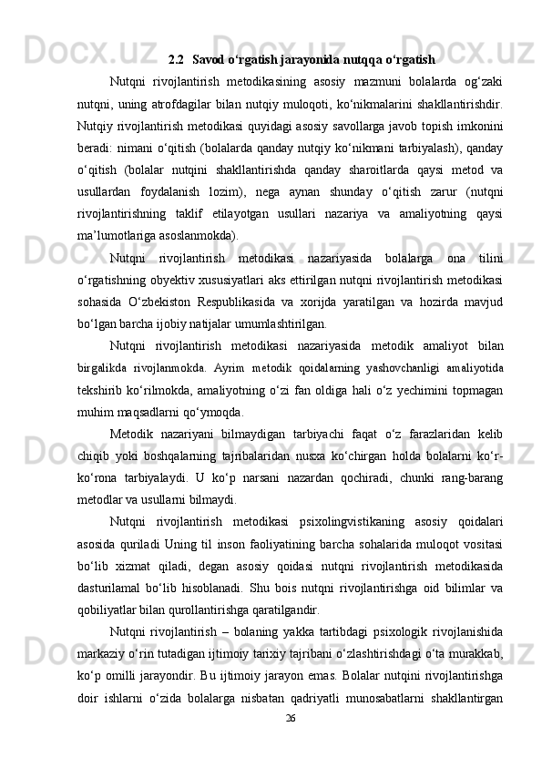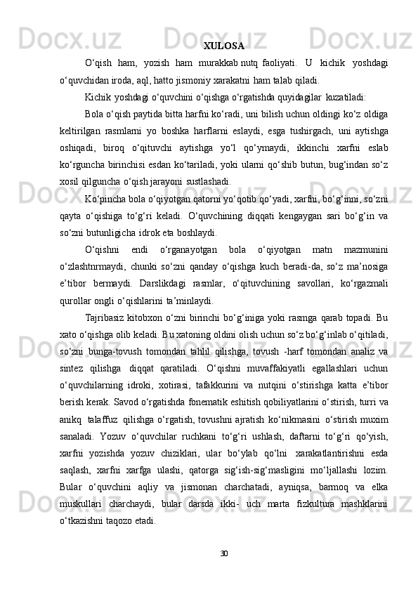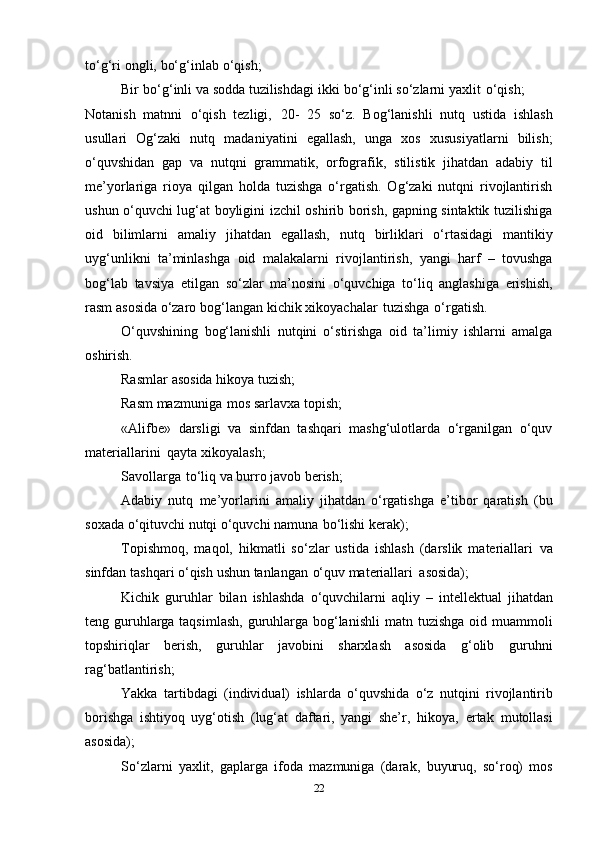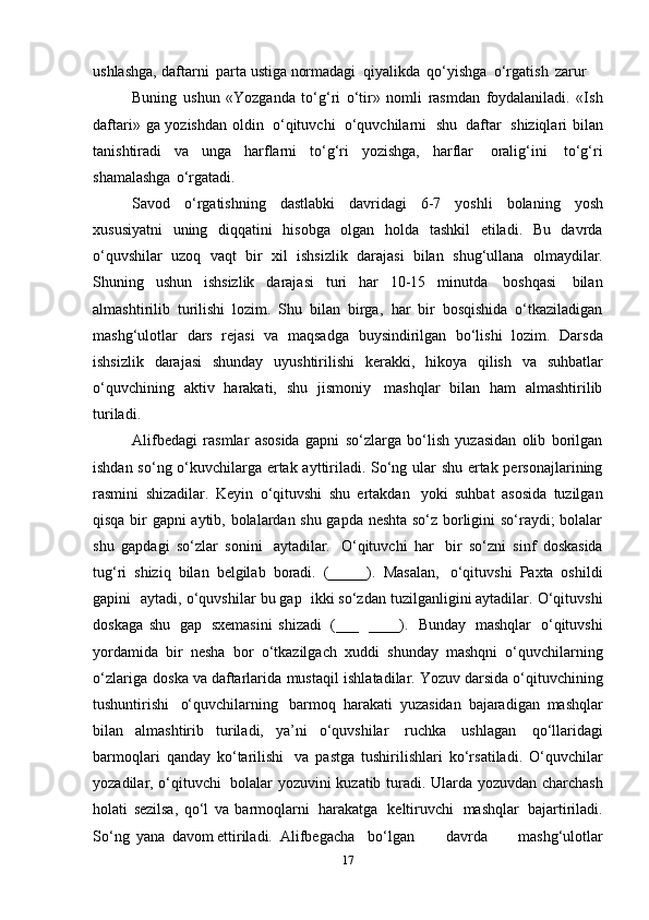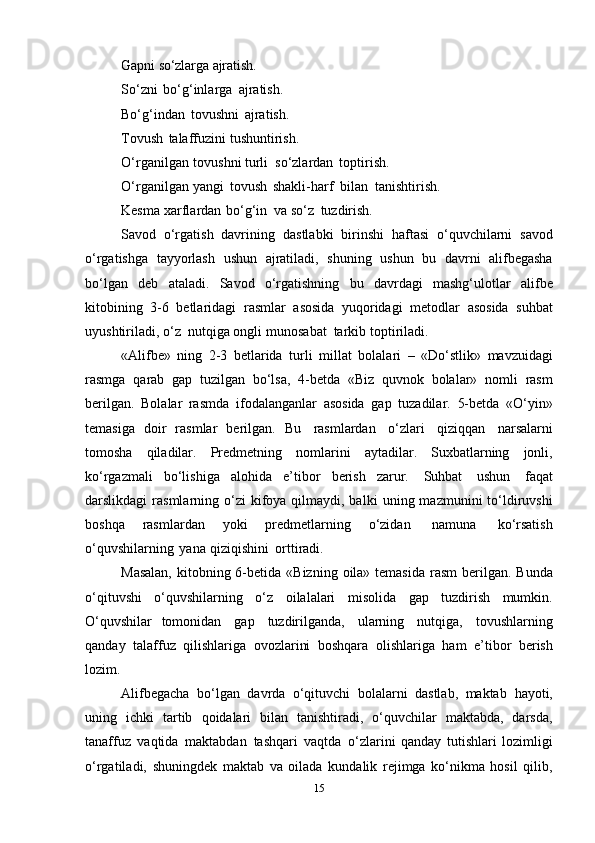 Oʻquvchilarni savod oʻrgatishga tayyorlov (Alifbegacha boʻlgan davr) davrida nutq oʻstirish