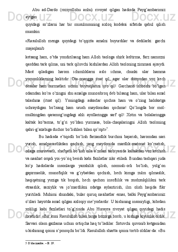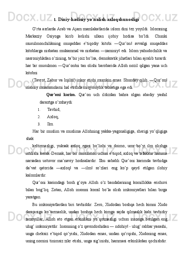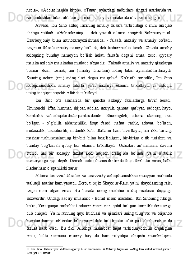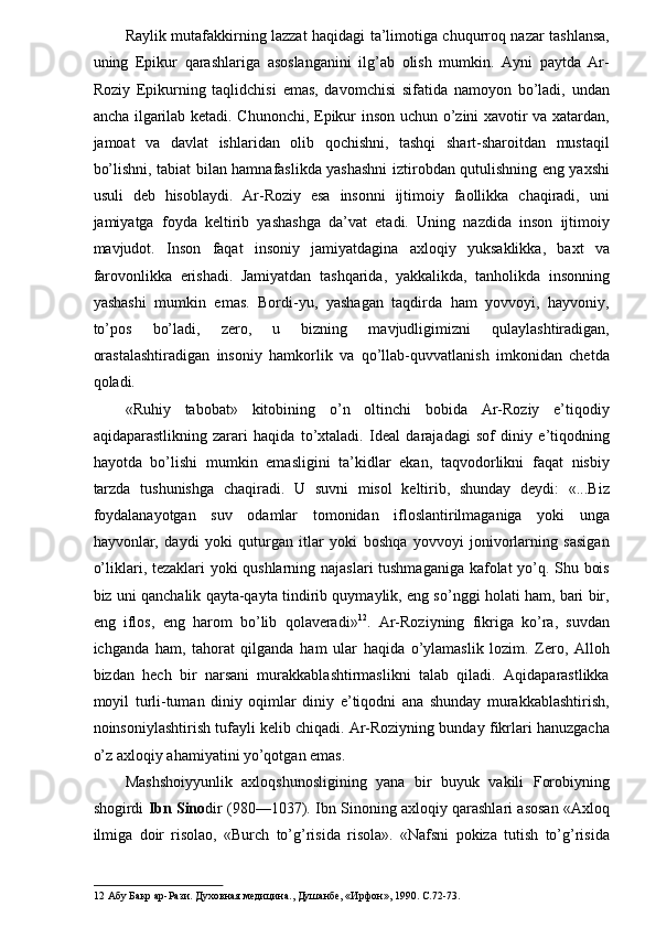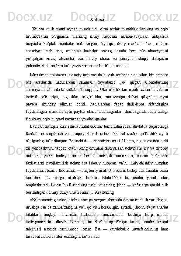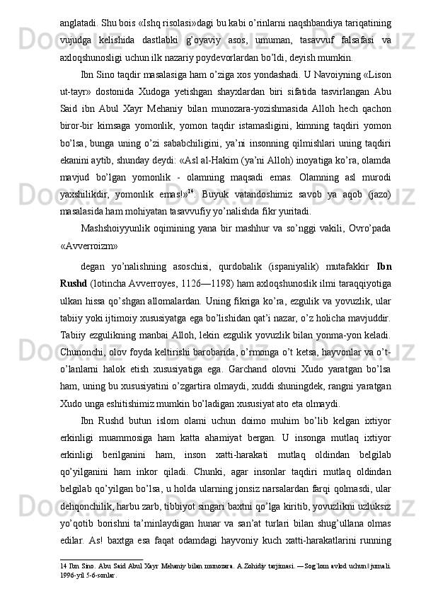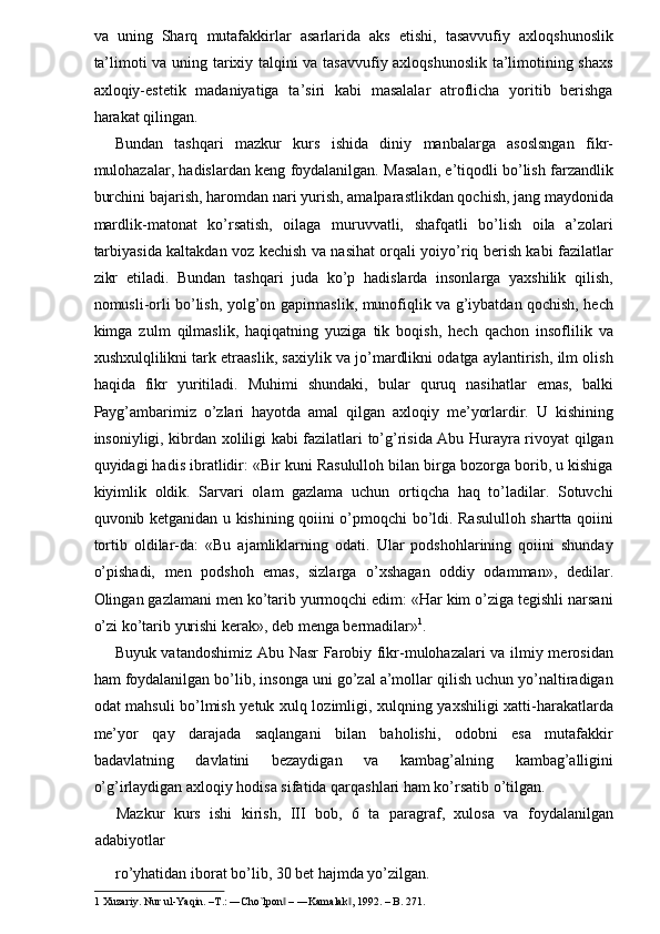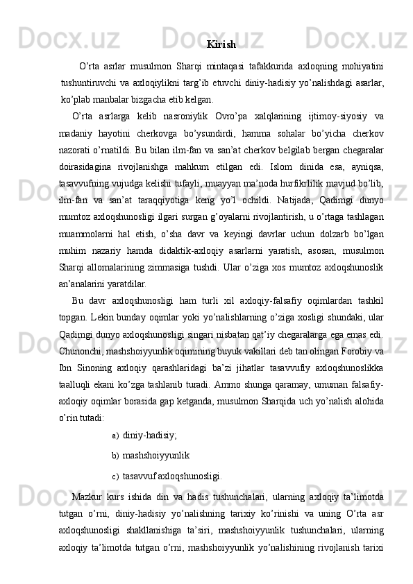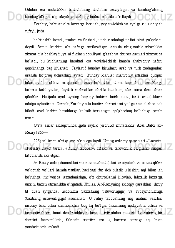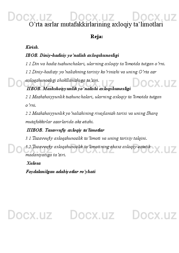 O’rta asrlar mutafakkirlarining axloqiy ta’limotlari