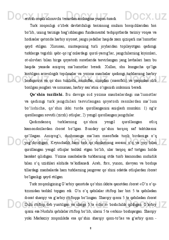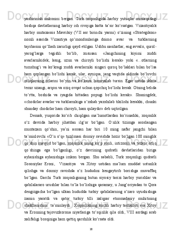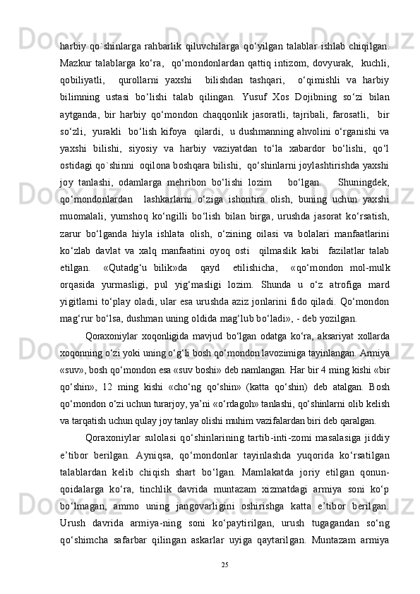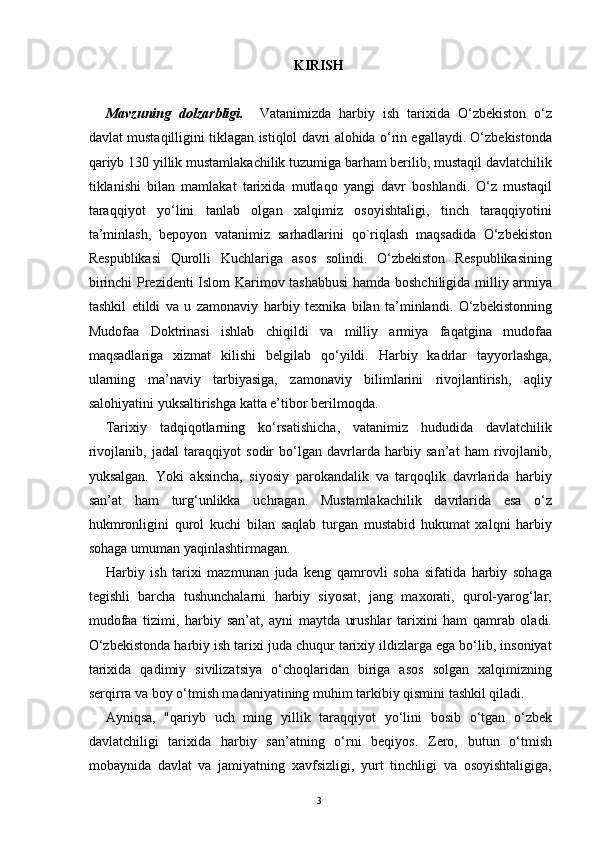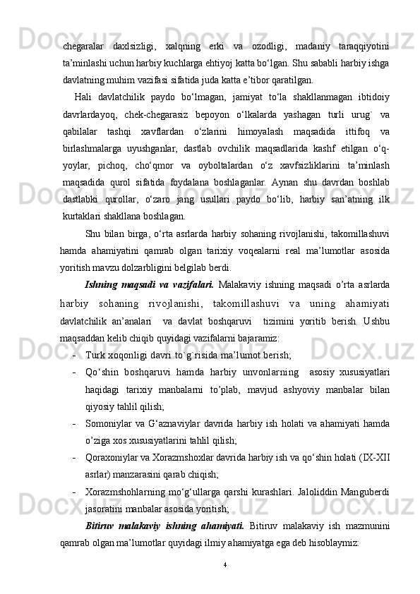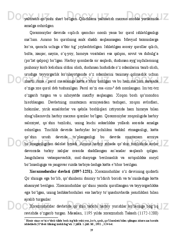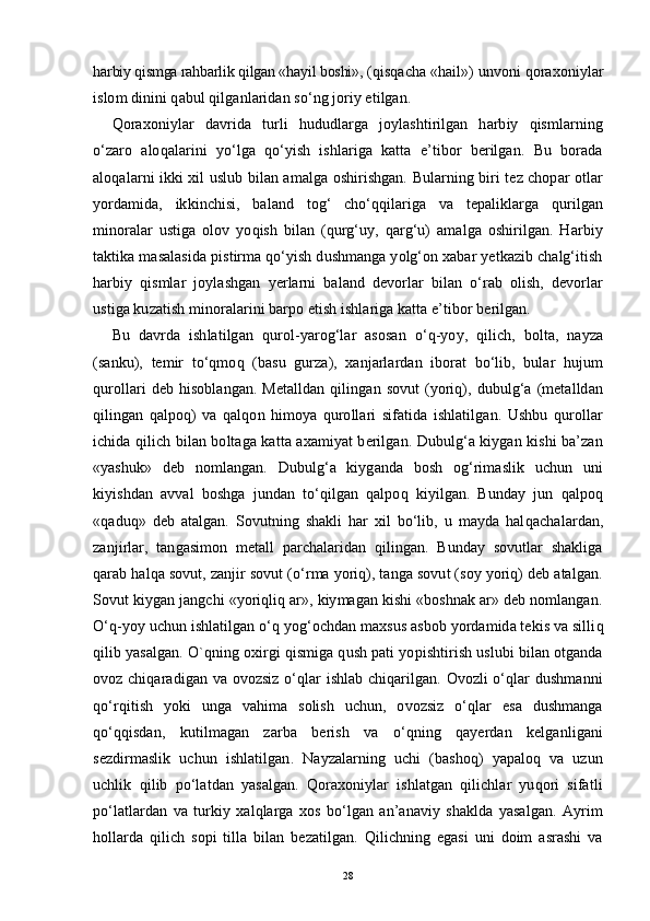 O‘rta asrlarda harbiy sohaning rivojlanishi, takomillashuvi va uning ahamiyati