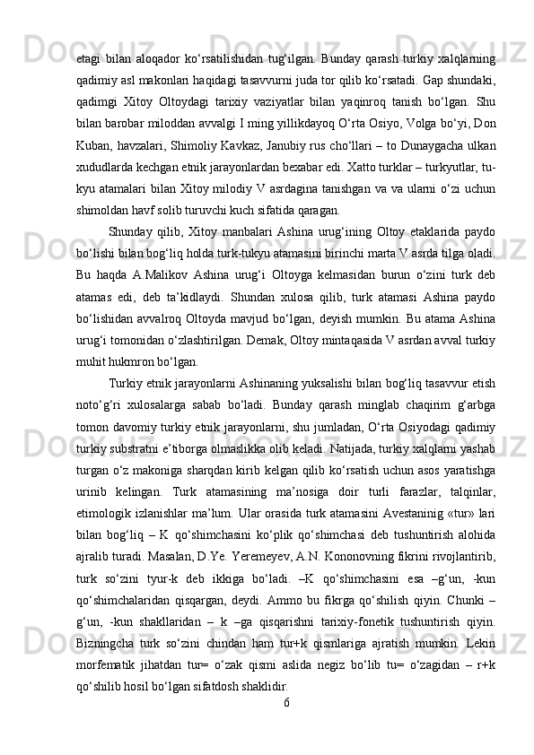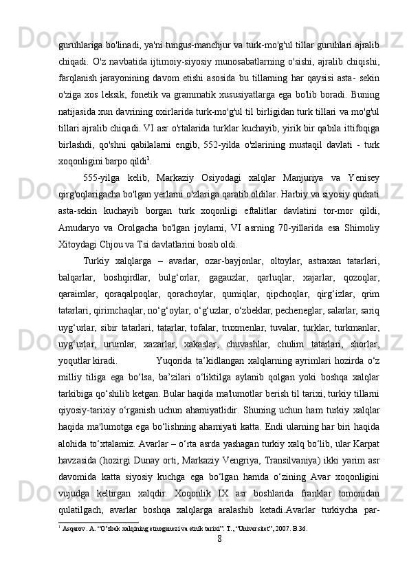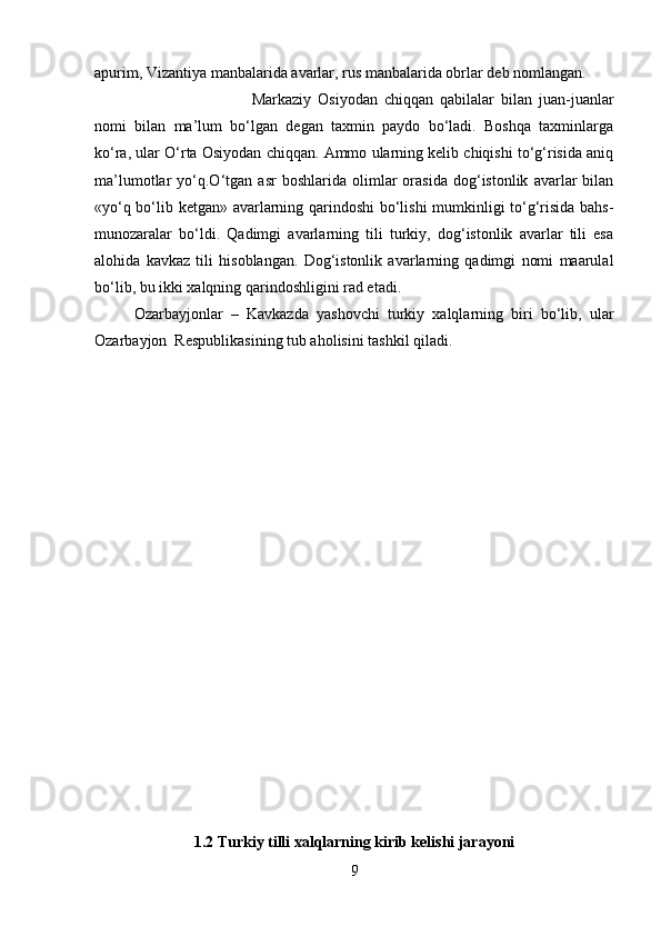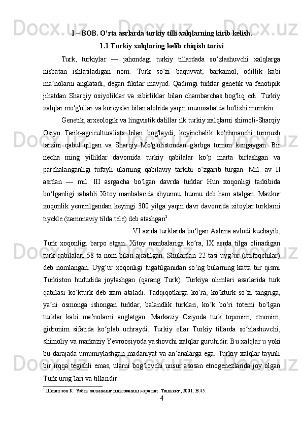 O’rta asrlarda turkiy tilli xalqlarning kirib kelishi
