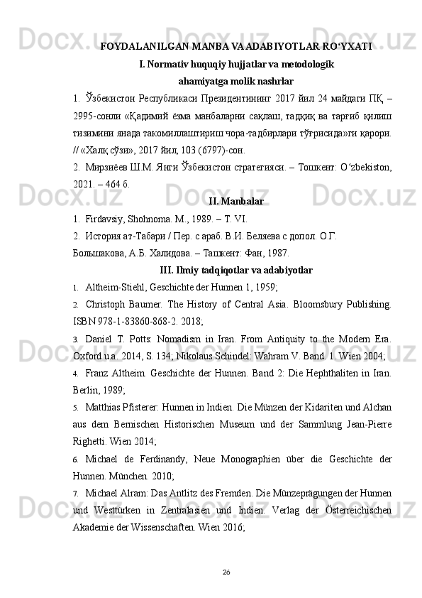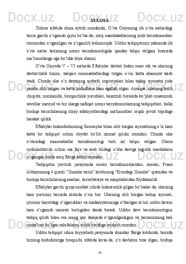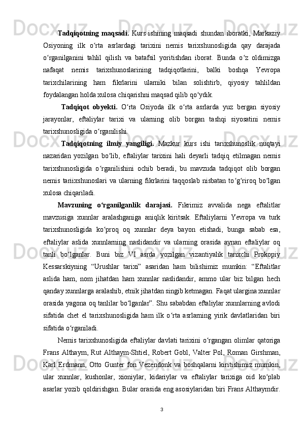 OʻRTA OSIYO TARIXINI NEMIS TARIXSHUNOSLIGIDA OʻRGANILISHI