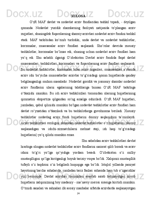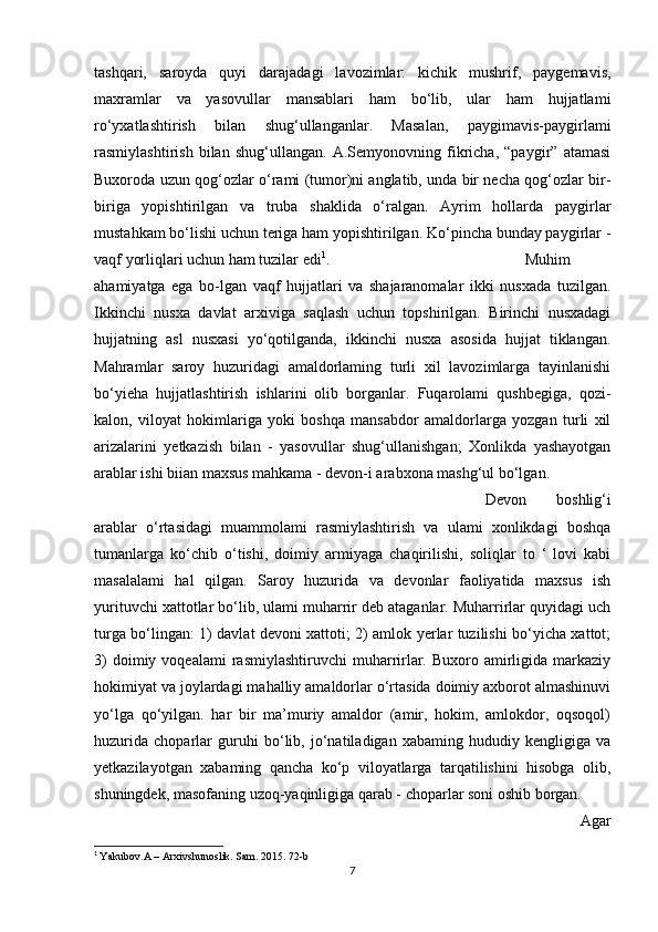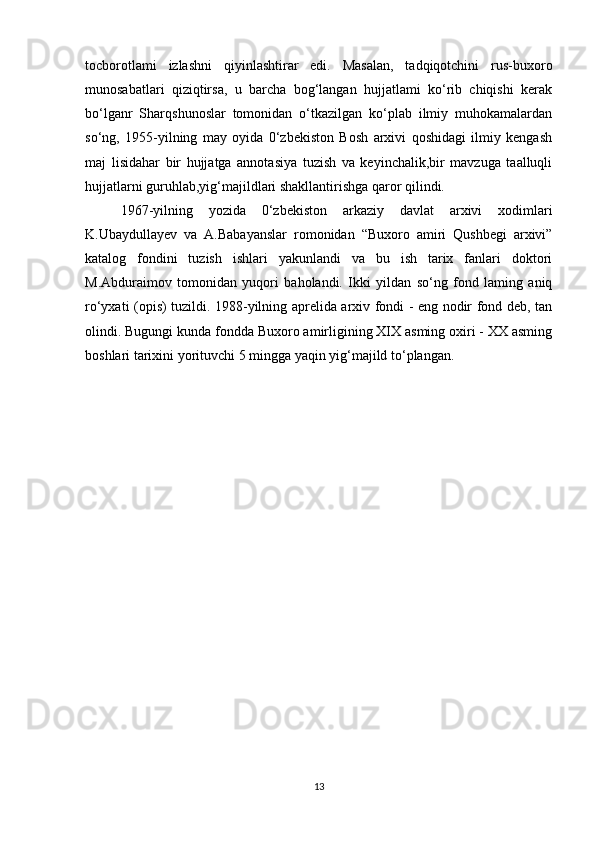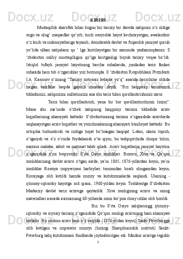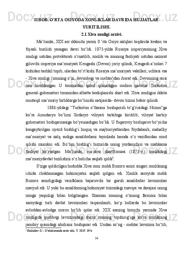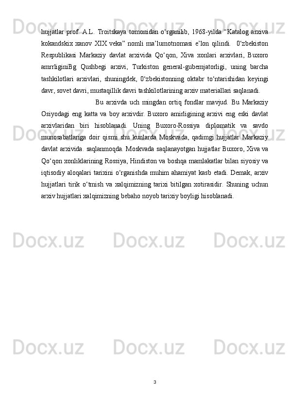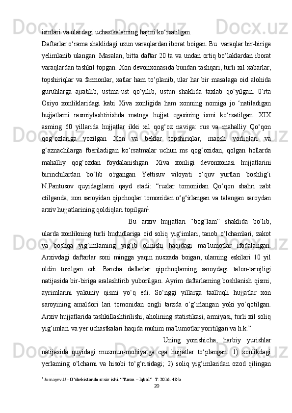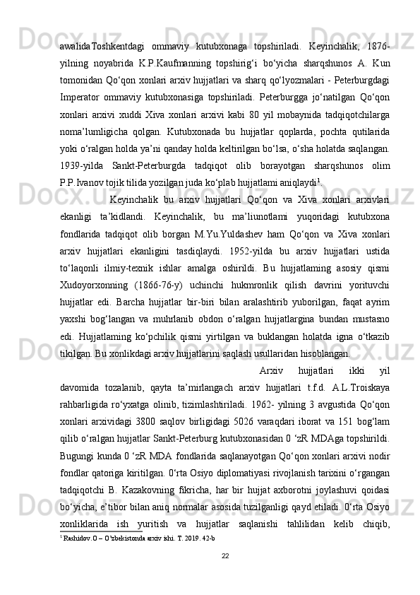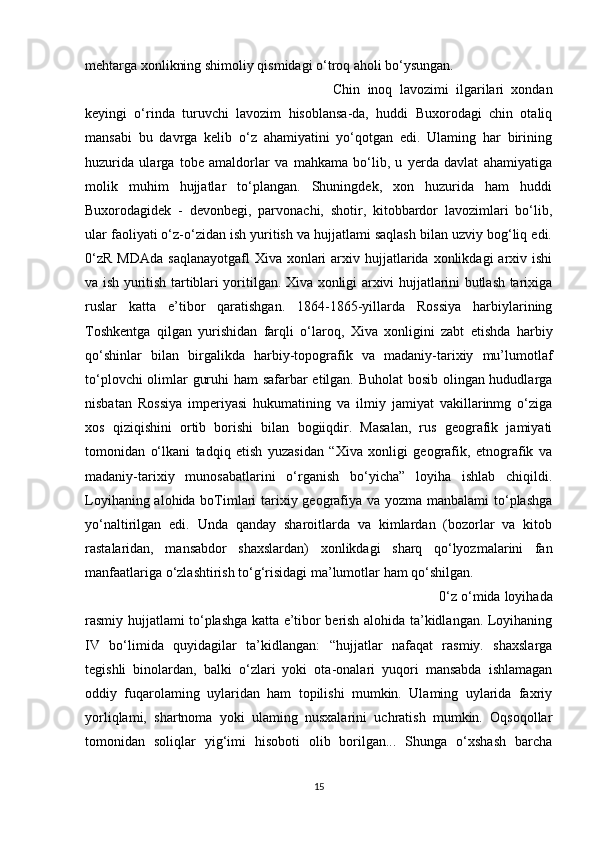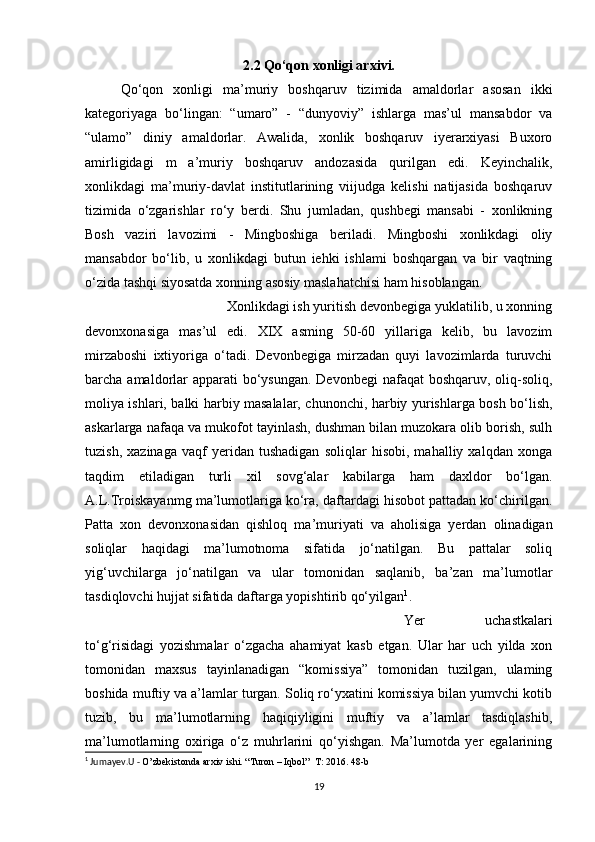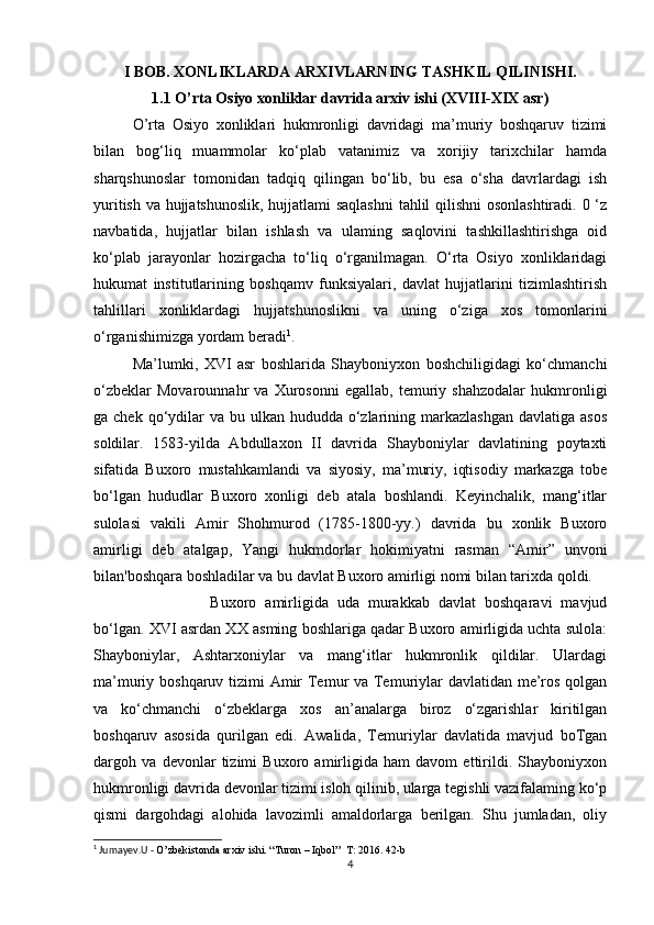 O’rta Osiyo xonliklari davrida arxiv ishi haqida