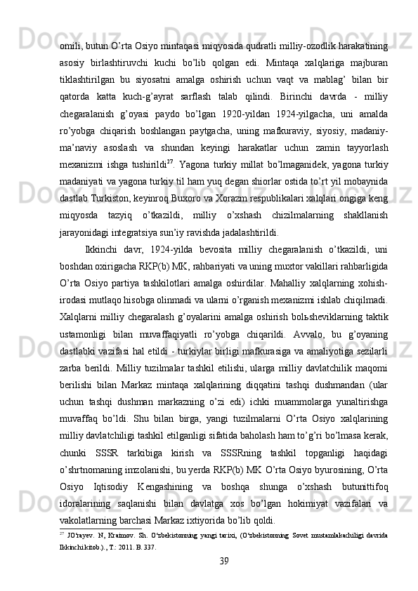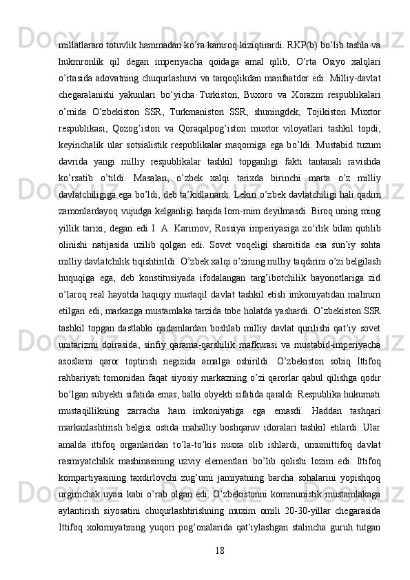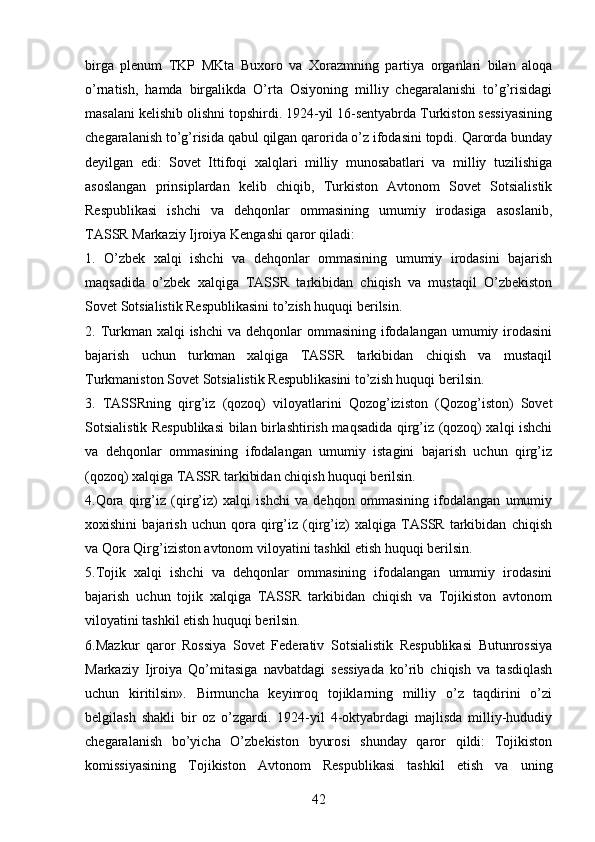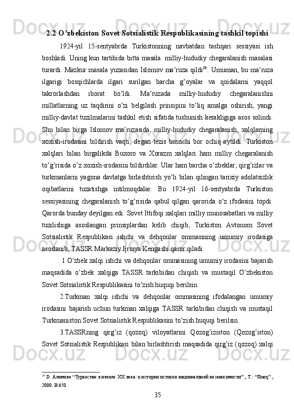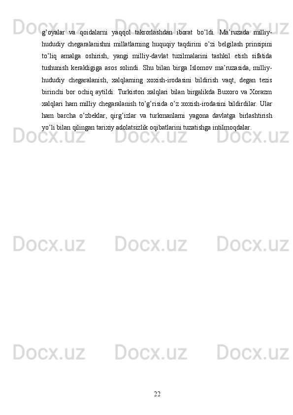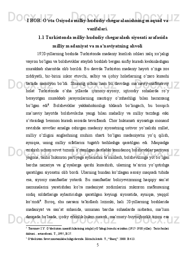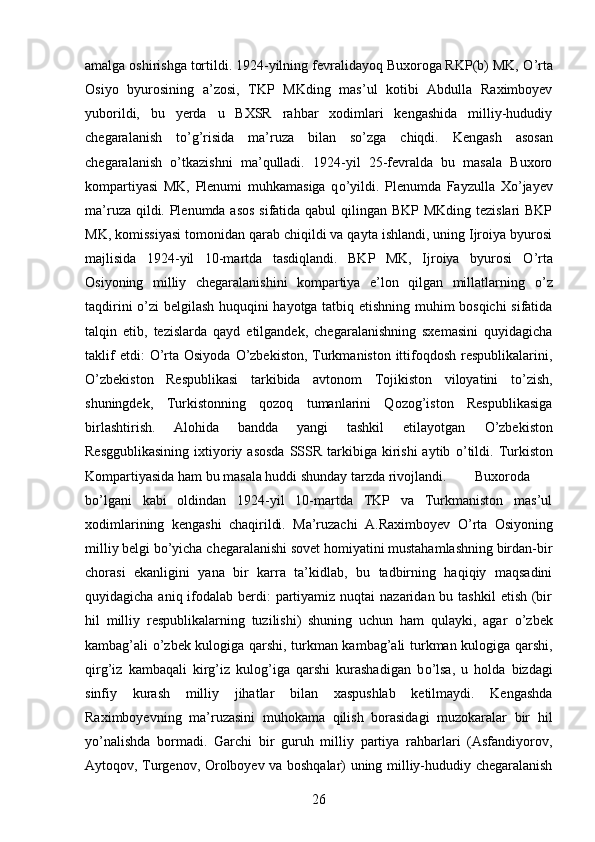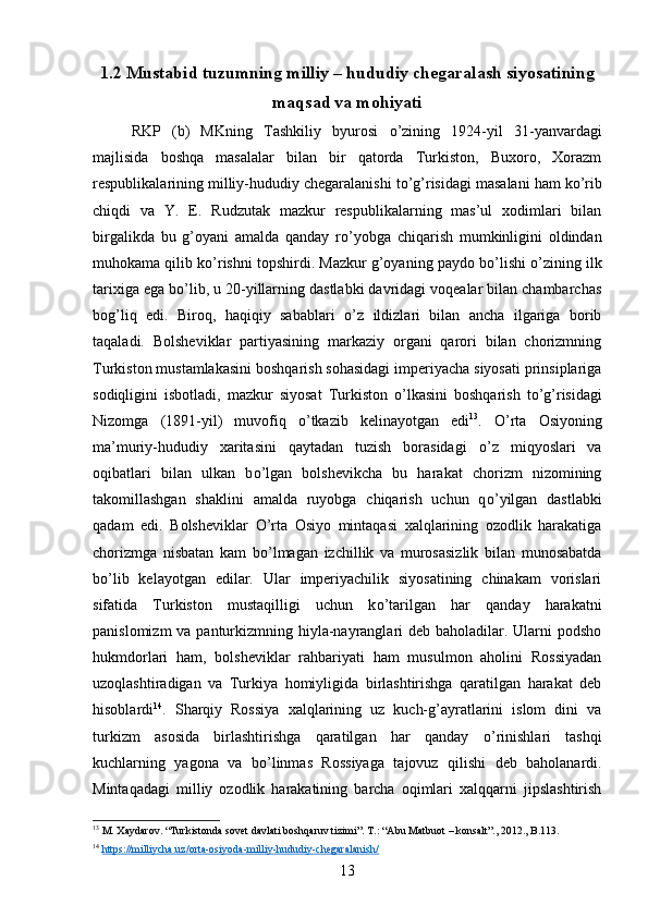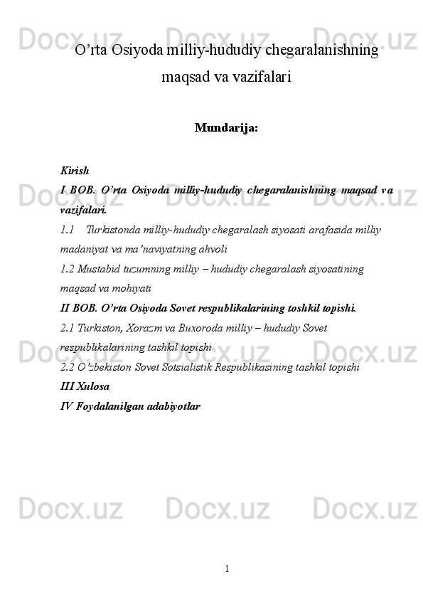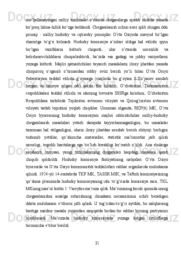 О'rta Osiyoda milliy-hududiy chegaralanishning maqsad va vazifalari