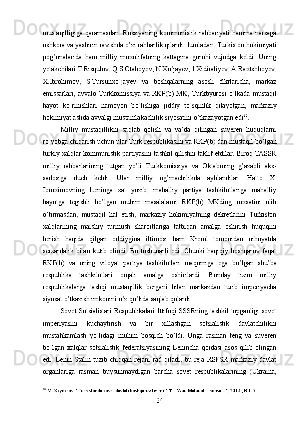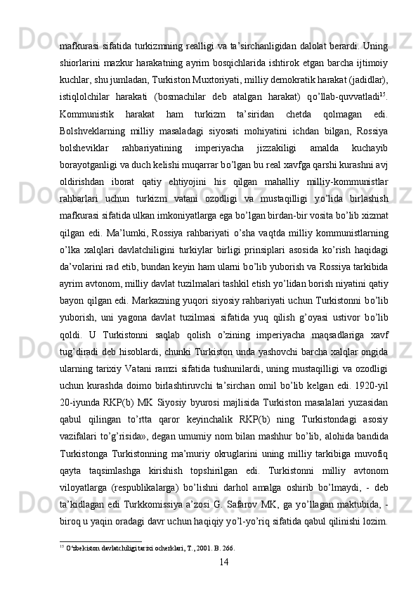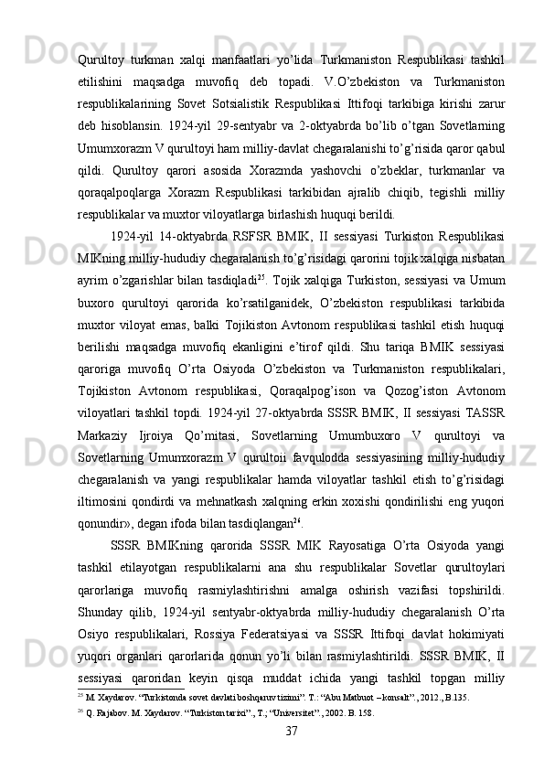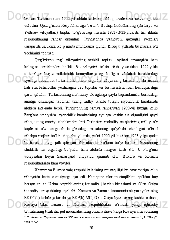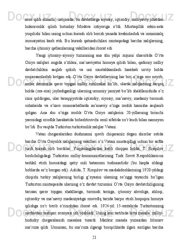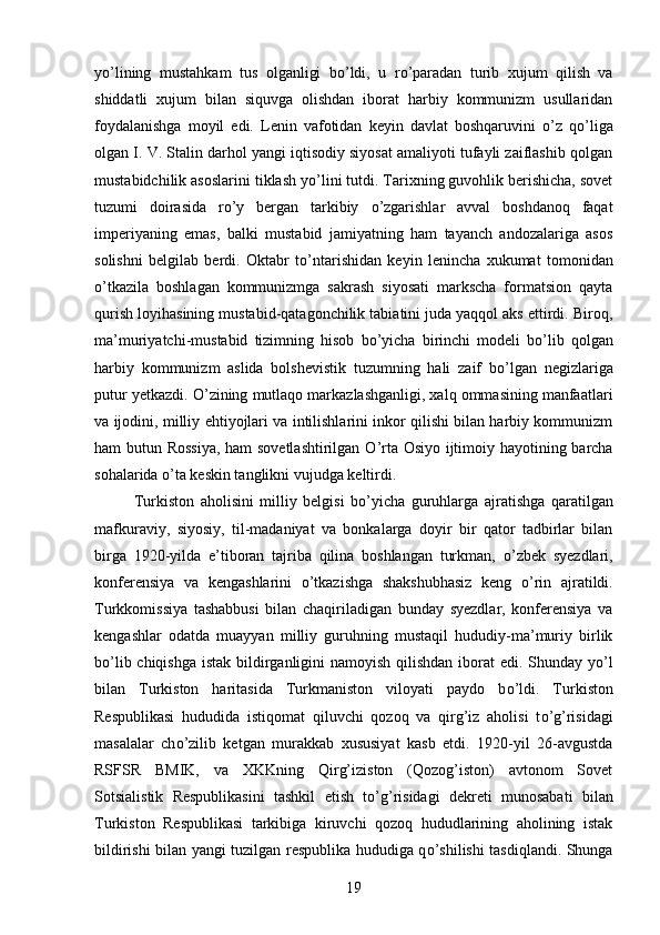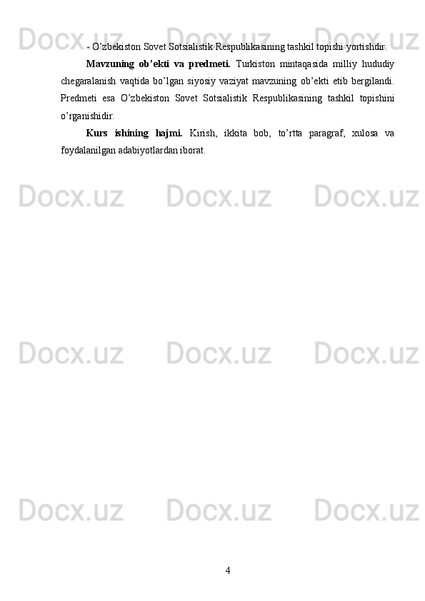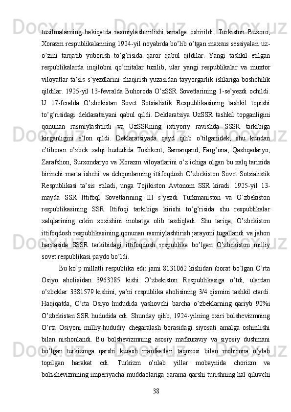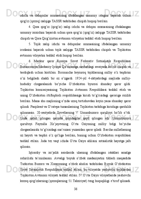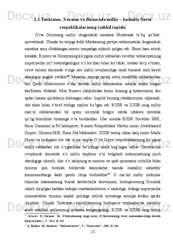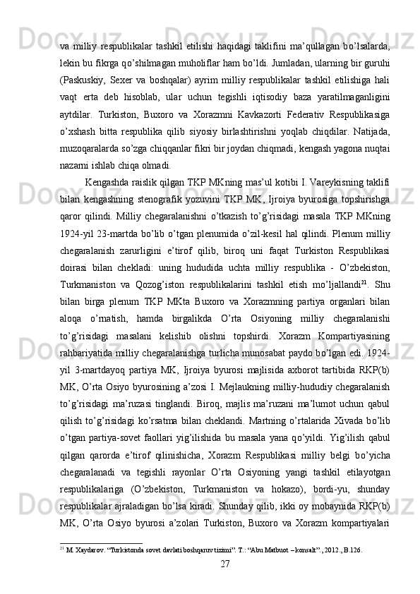 О'rta Osiyoda milliy-hududiy chegaralanishning maqsad va vazifalari
