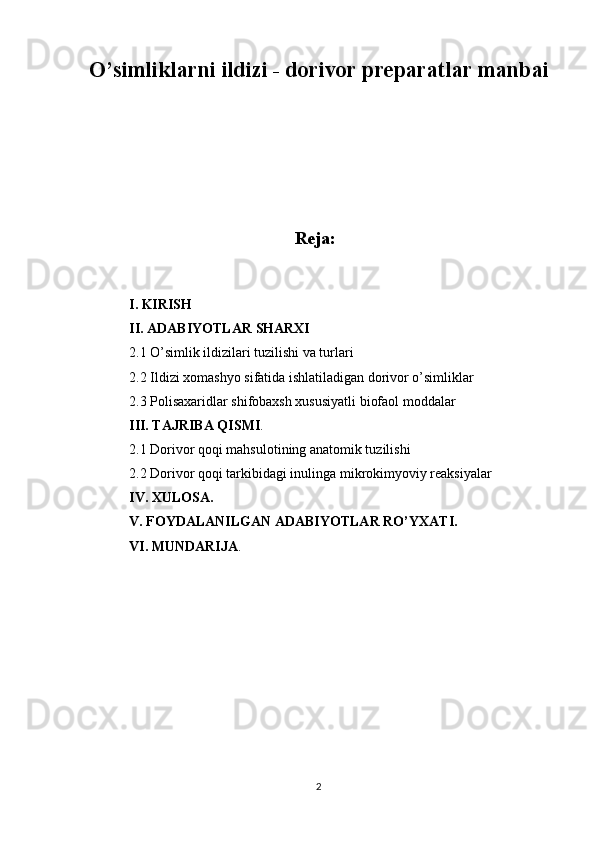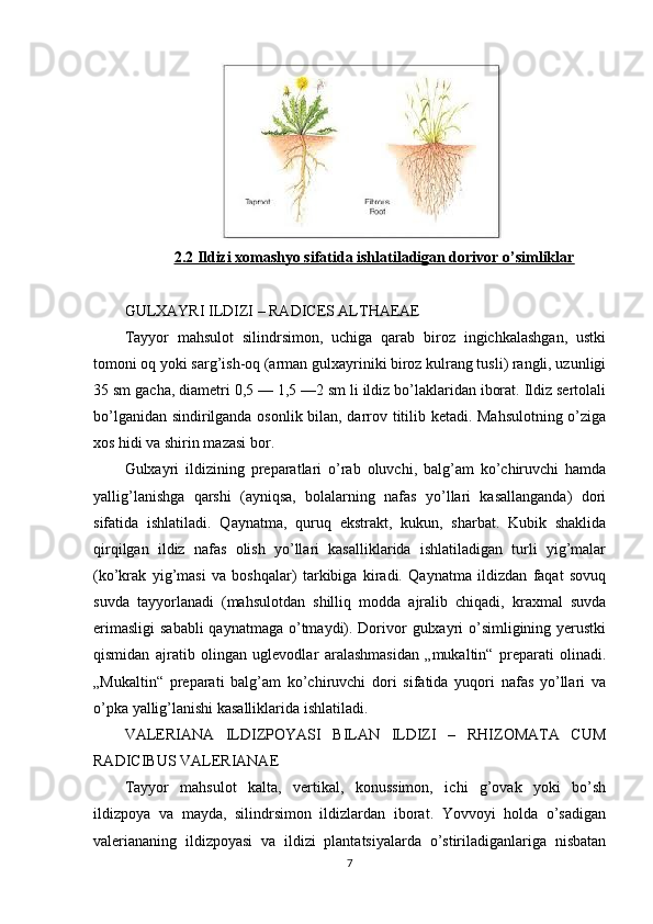 O’simliklarni ildizi - dorivor preparatlar manbai