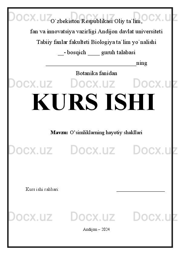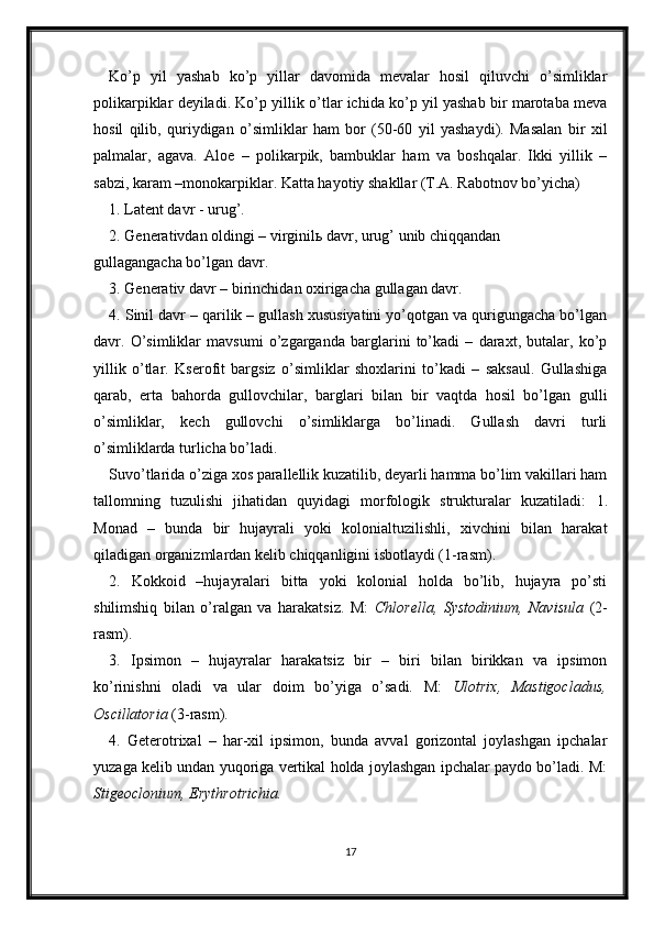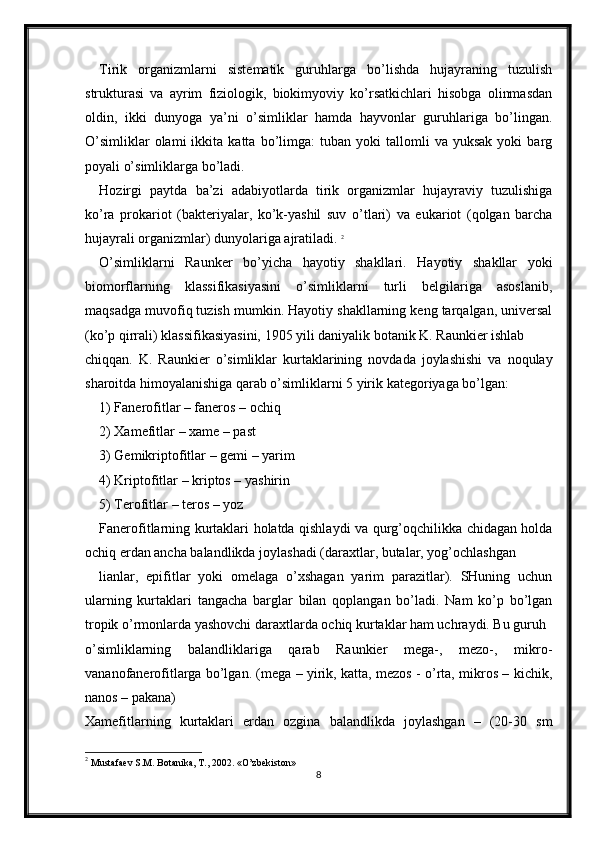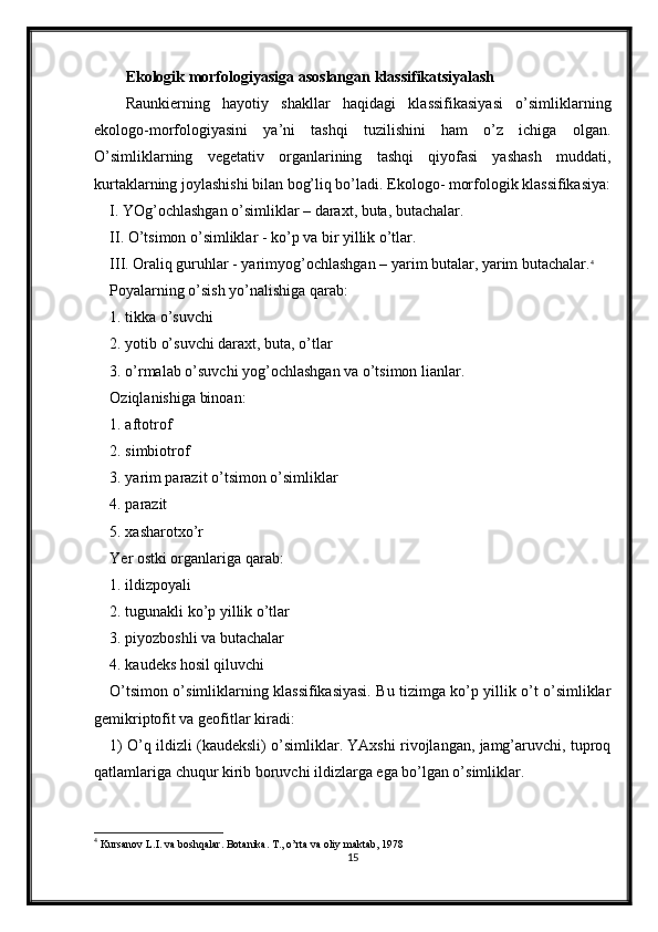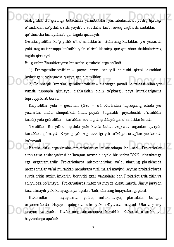 O’simliklarning hayotiy shakllari