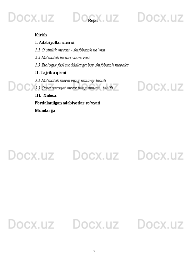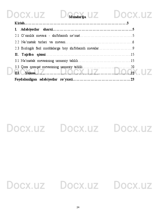 O’simliklarning mevasi- shifobaxsh preparatlar olish uchun manba
