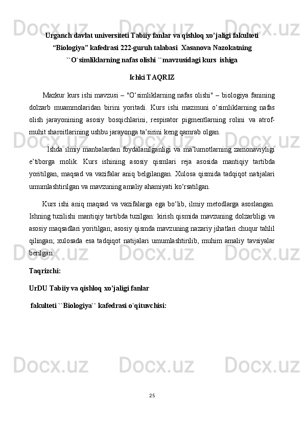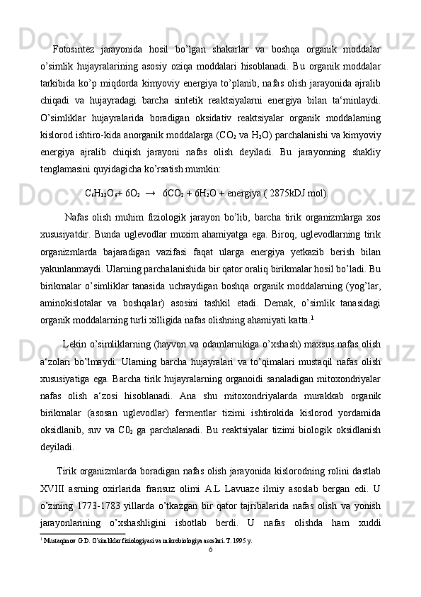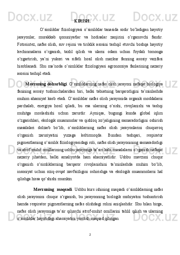 O'simliklarning nafas olishi