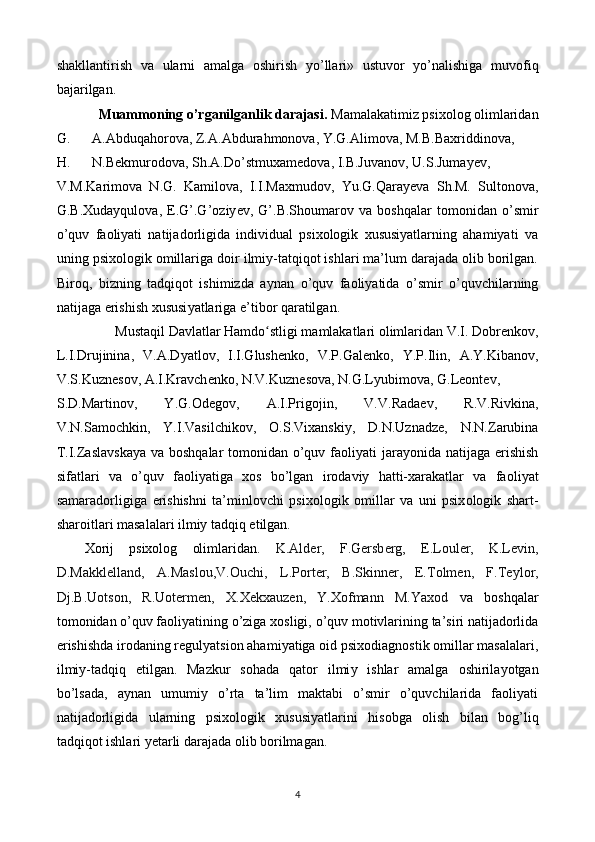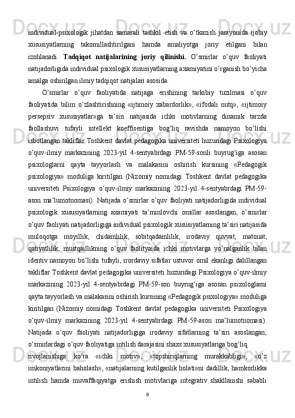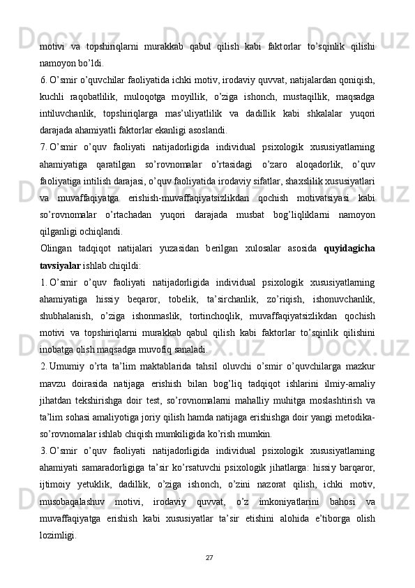 O'smir o'quv faoliyati natijadorligida individual psixologik xususiyatlarning ahamiyati