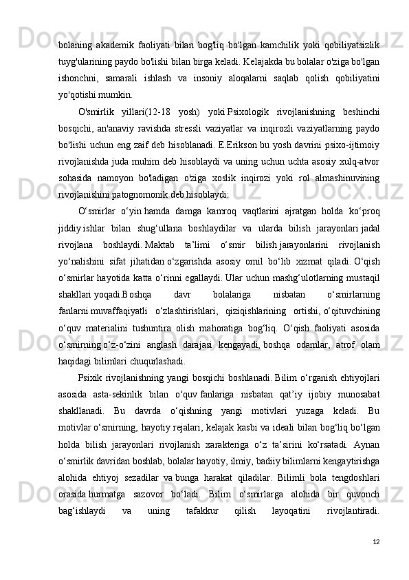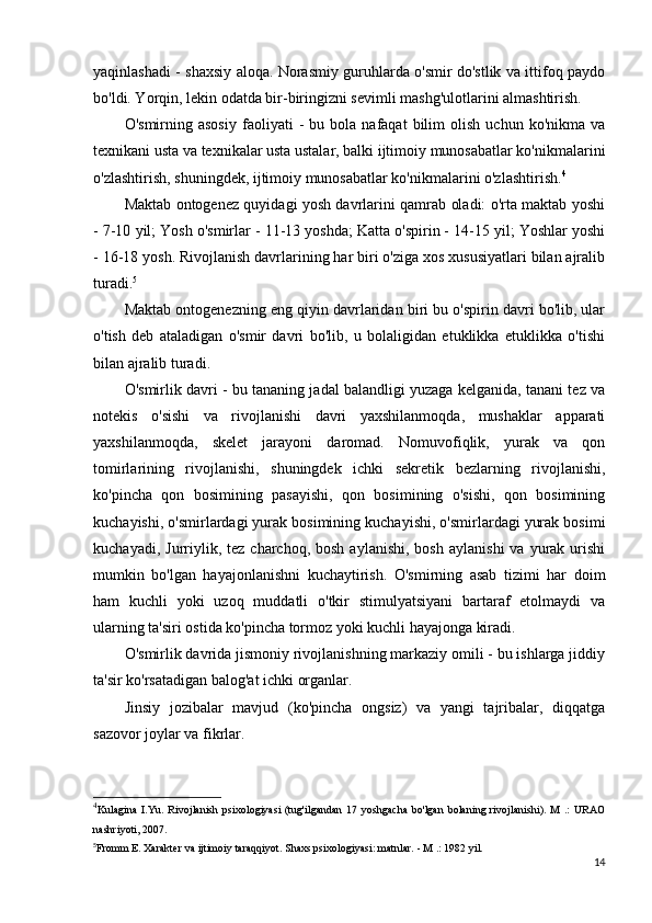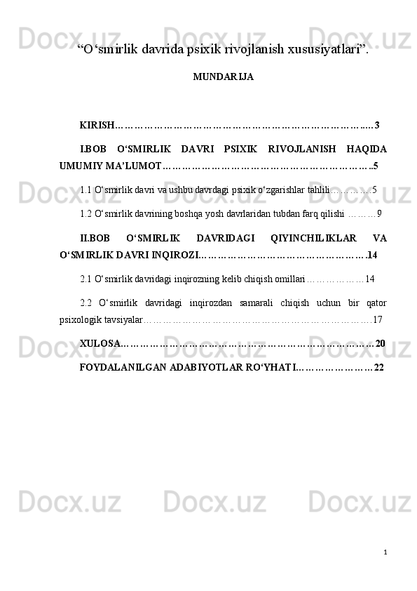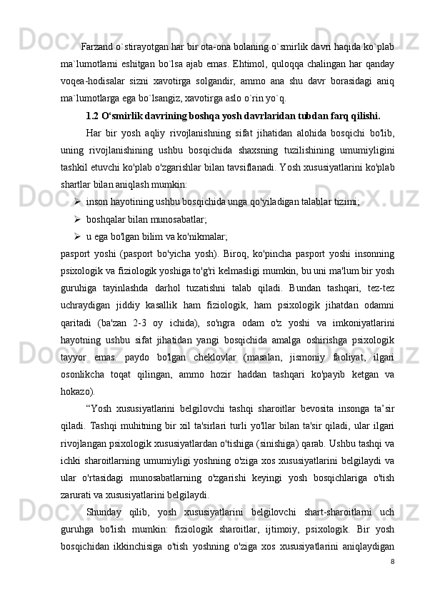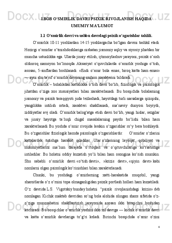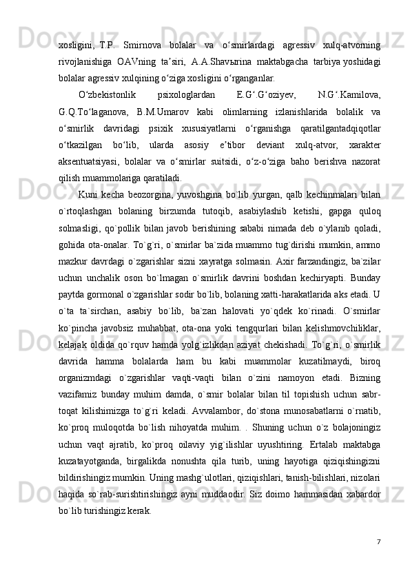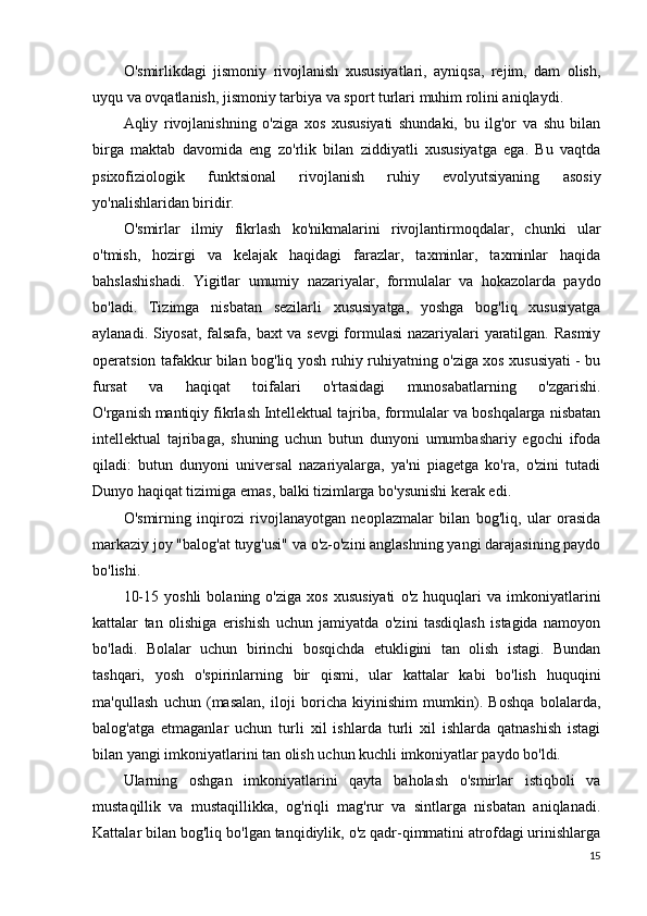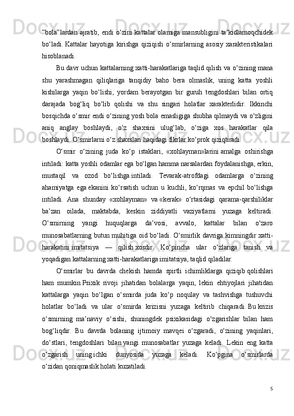 “O‘smirlik davrida psixik rivojlanish xususiyatlari”.