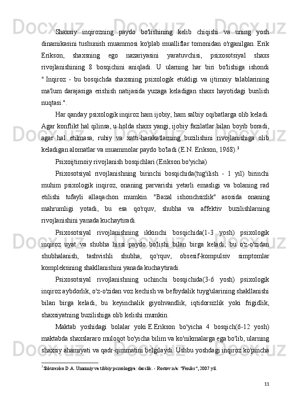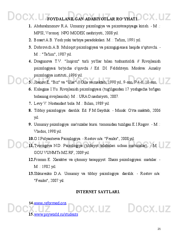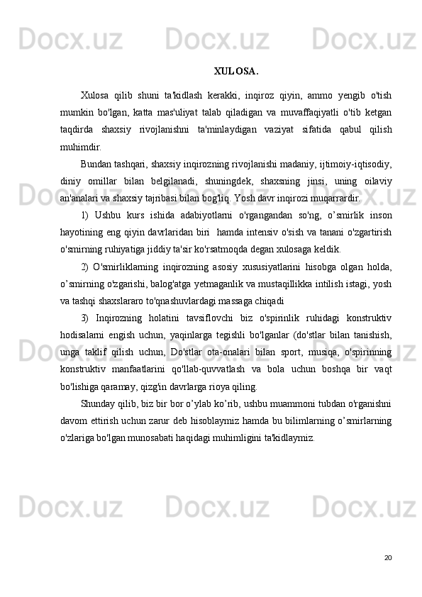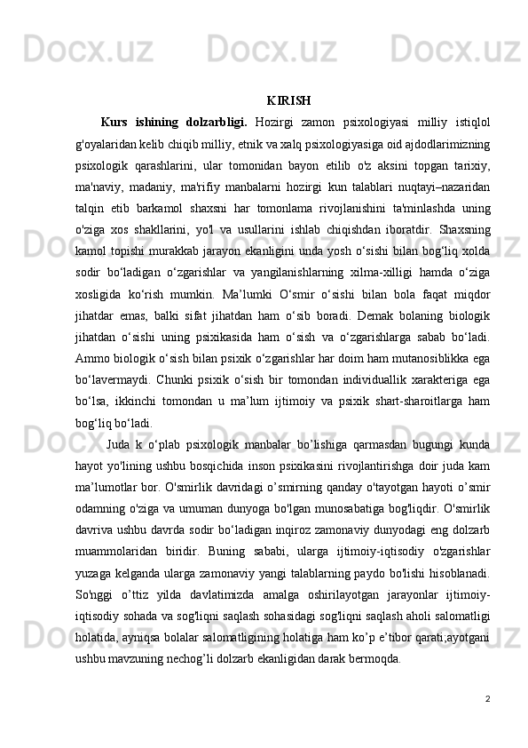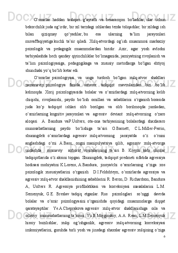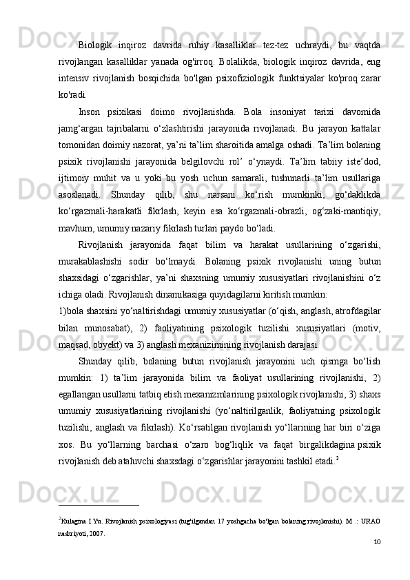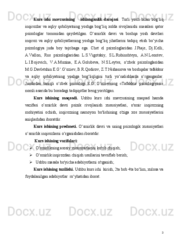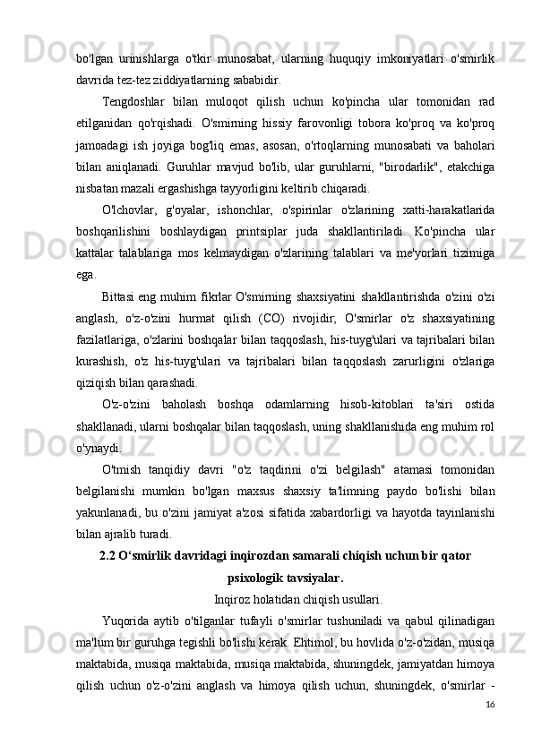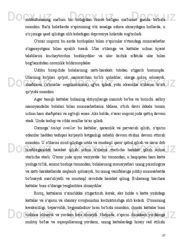 “O‘smirlik davrida psixik rivojlanish xususiyatlari”.