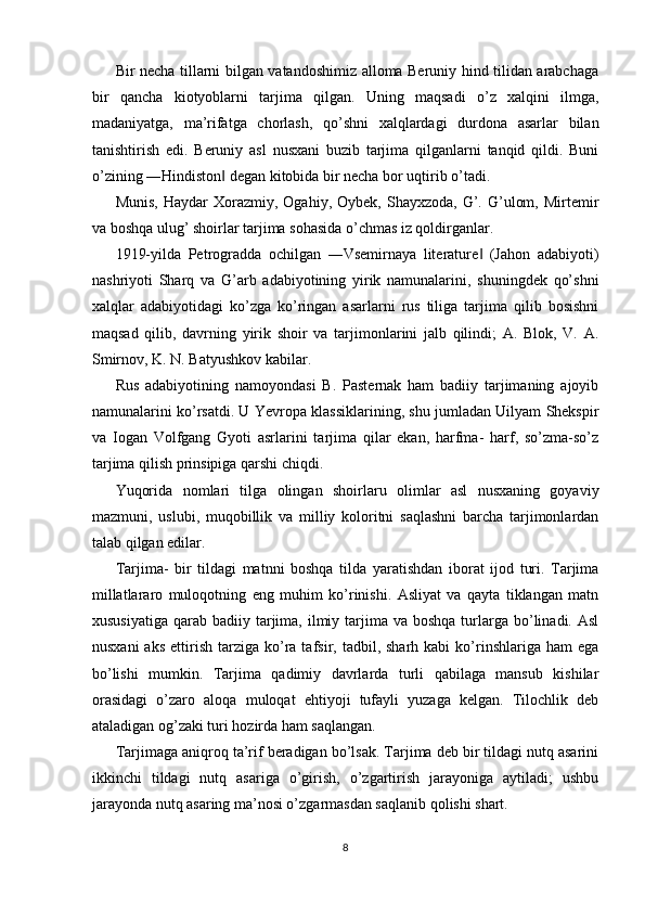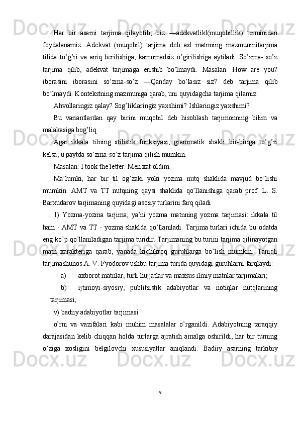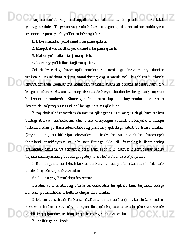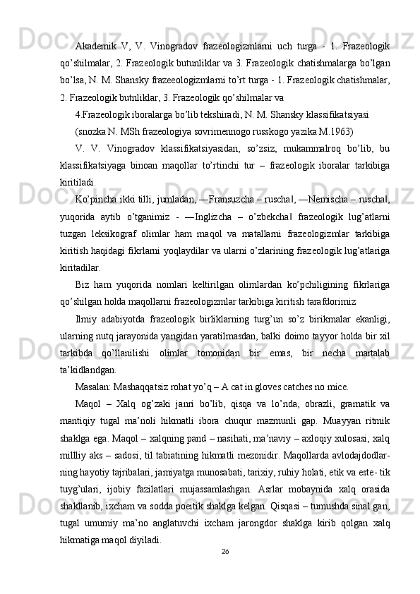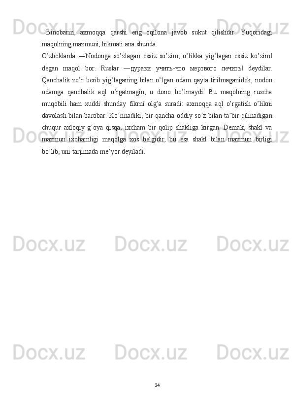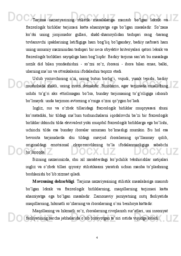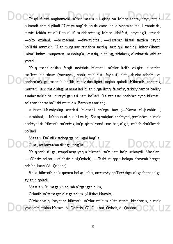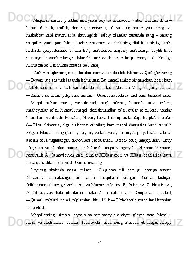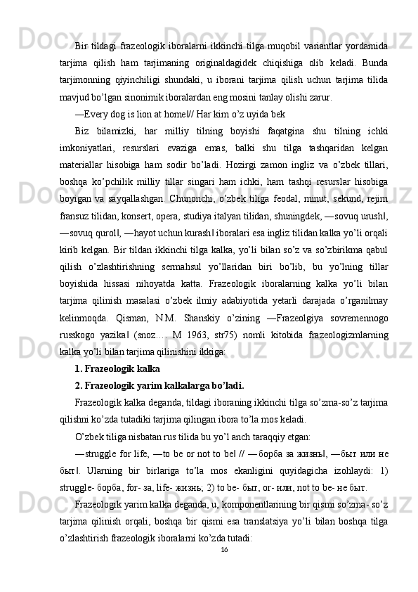 O’tkir Hoshimovning “Ikki eshik orasi” asarida uchraydigan hikmatli so’zlar va maqollar tarjimasi va tahlili
