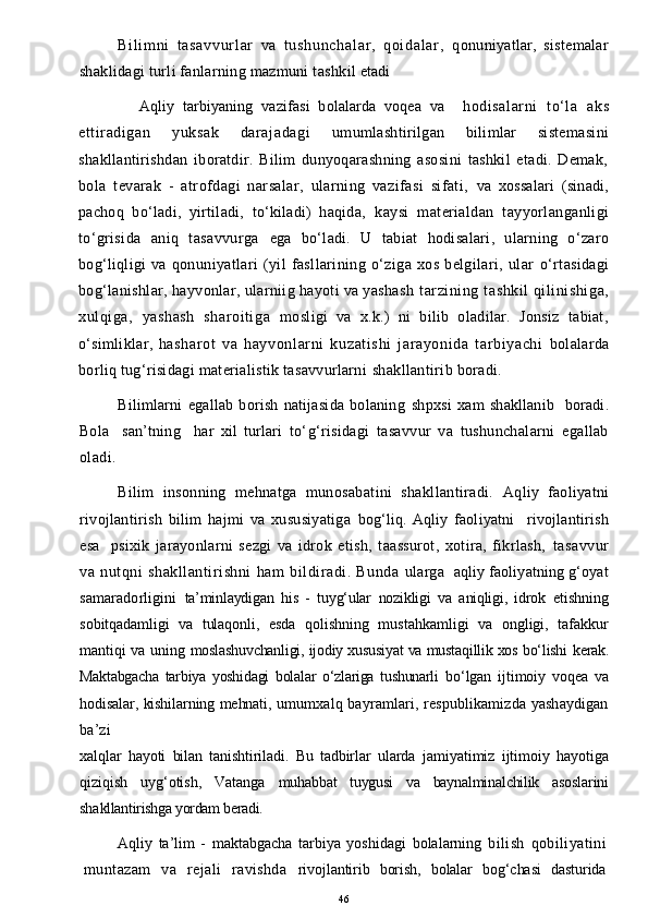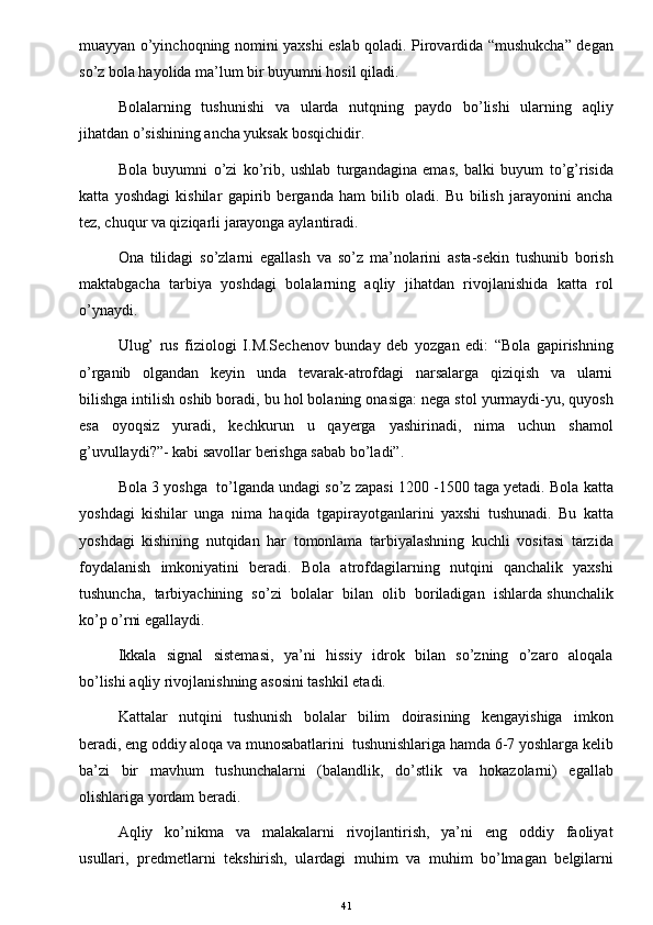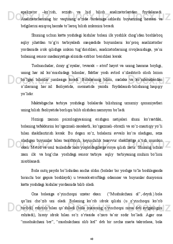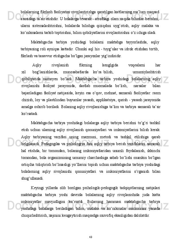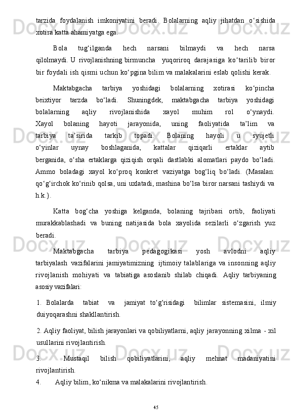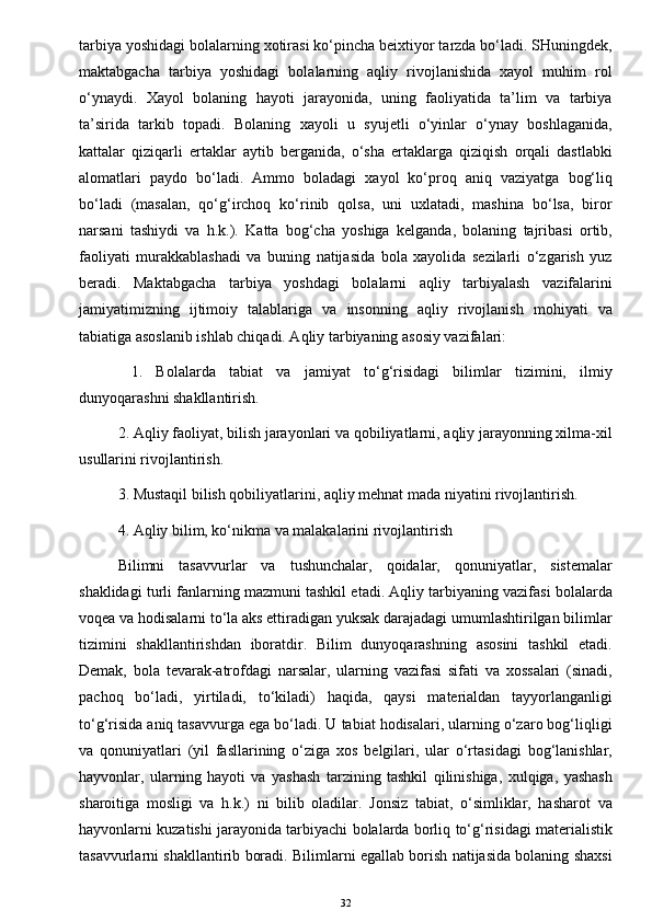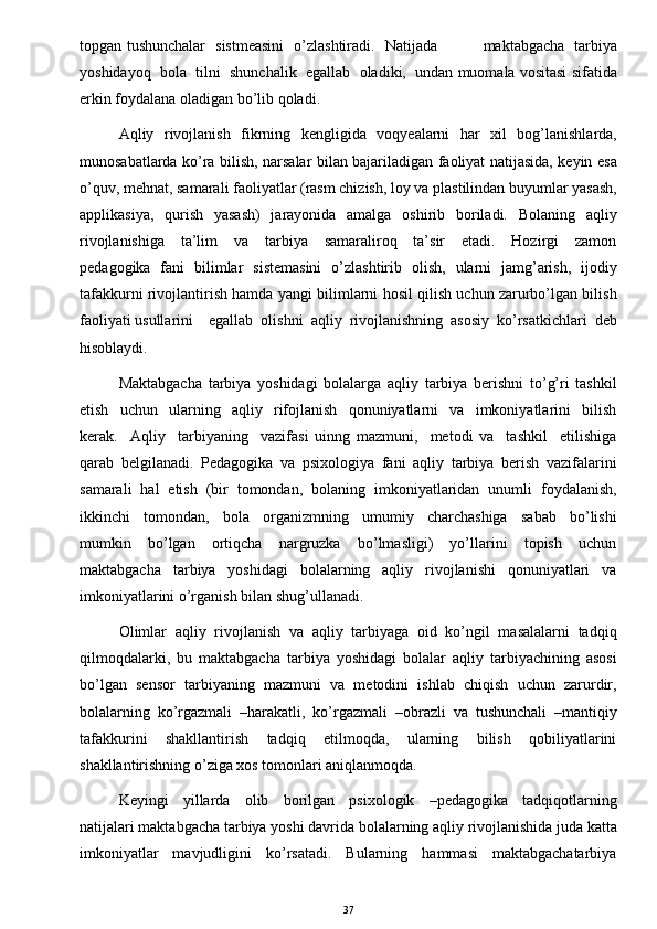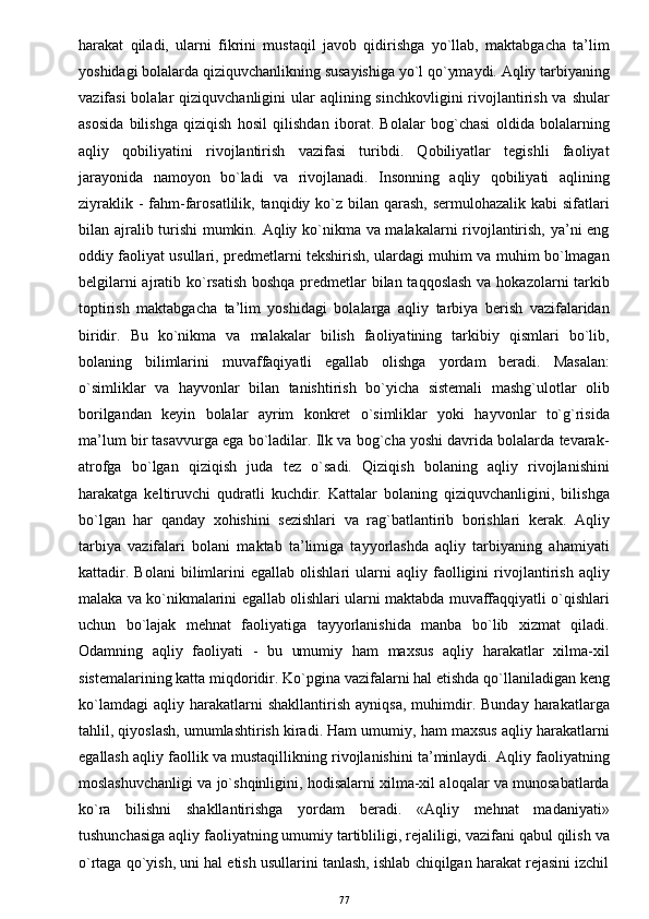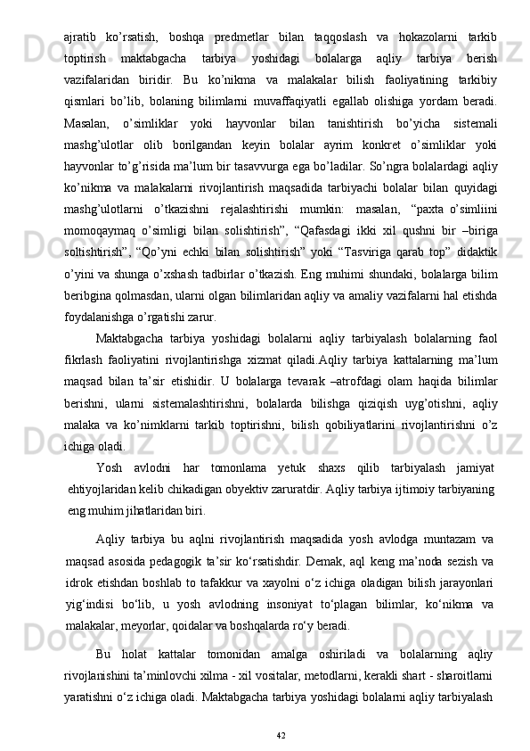 O’yinda bolalarni aqliy tarbiyasi