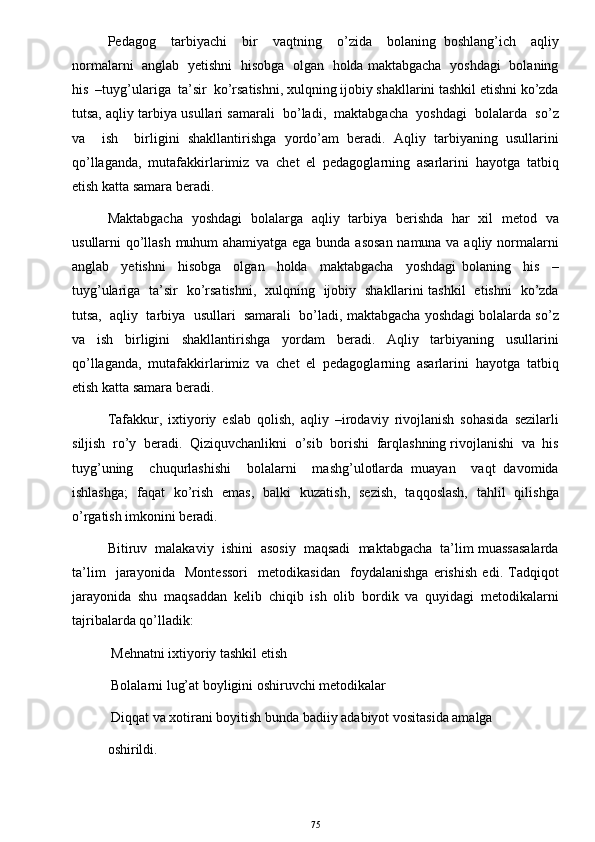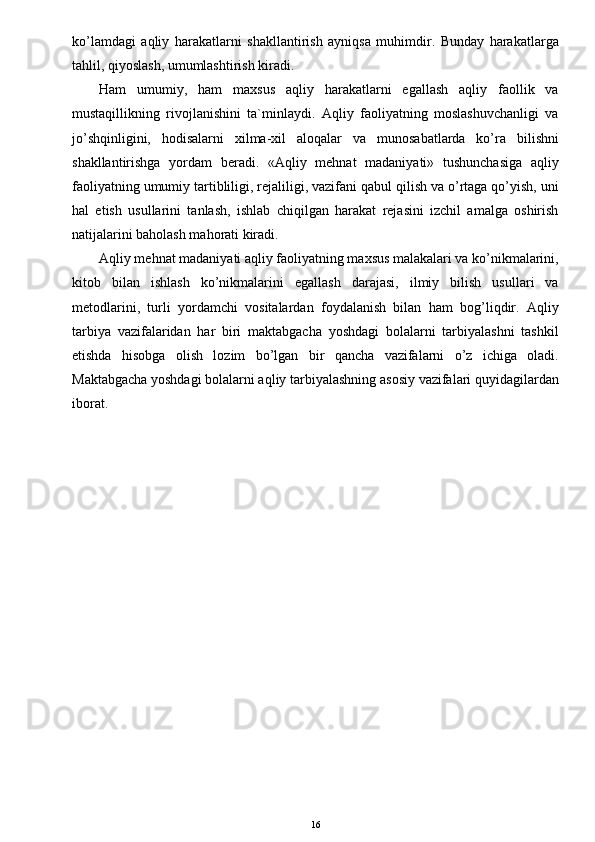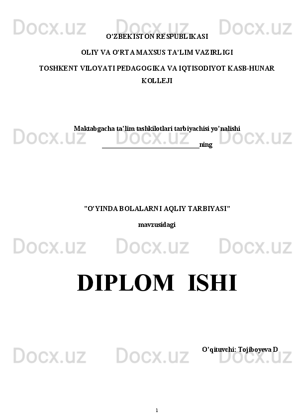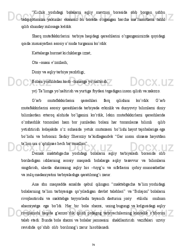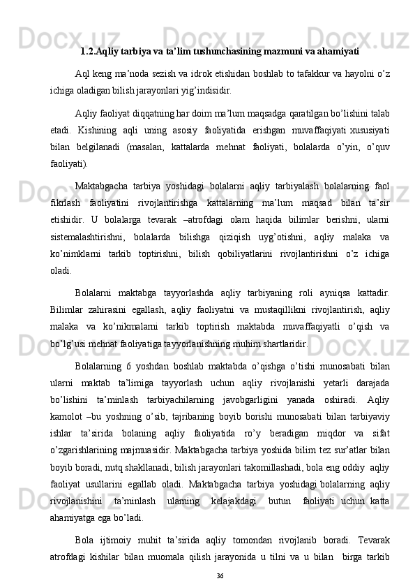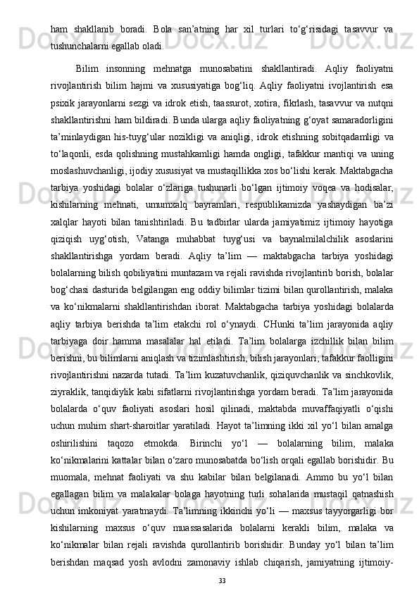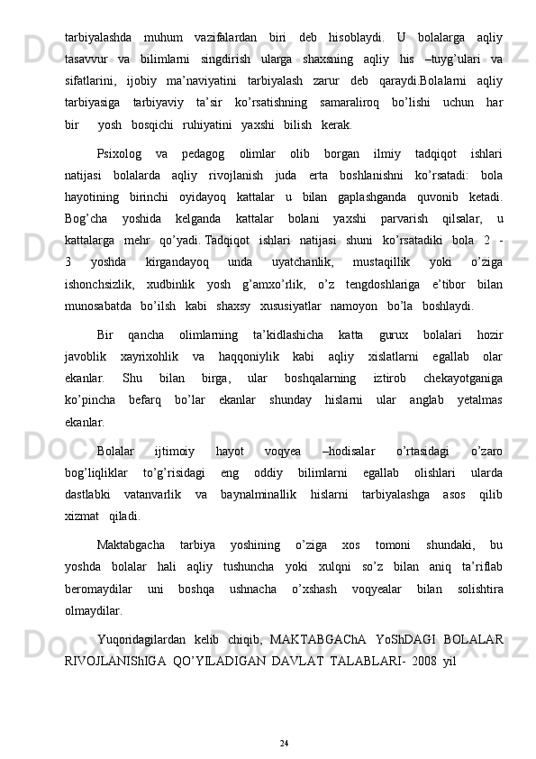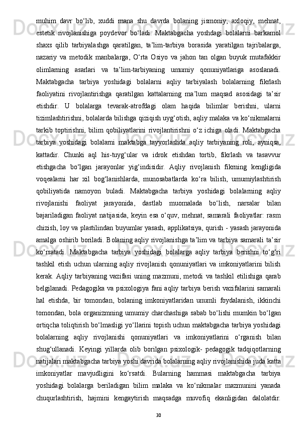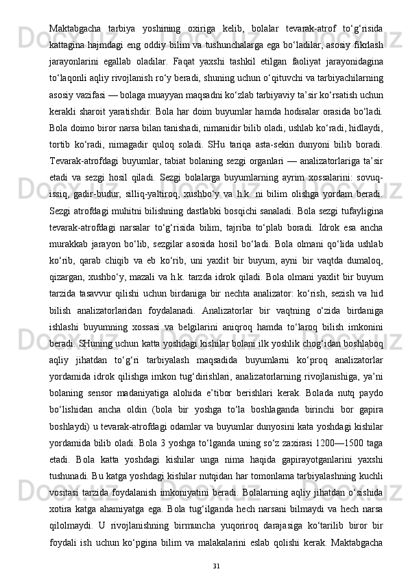 O’yinda bolalarni aqliy tarbiyasi