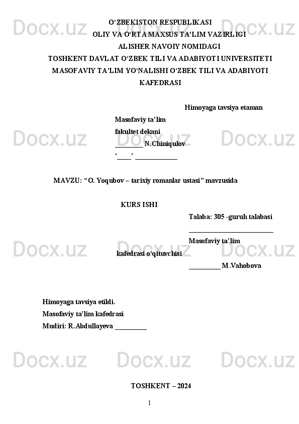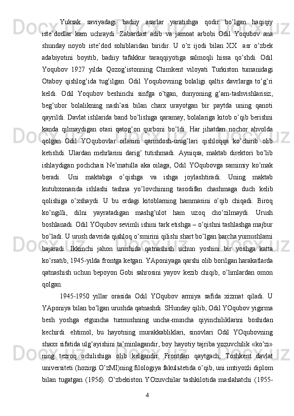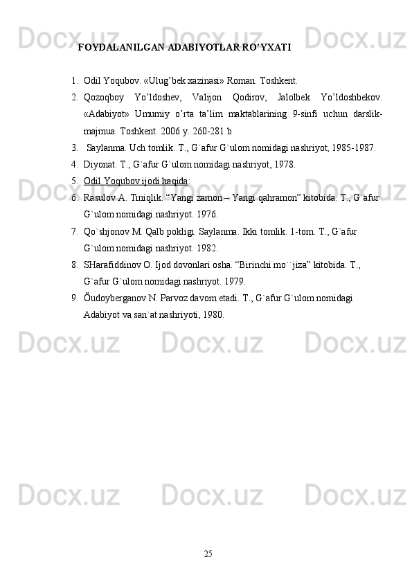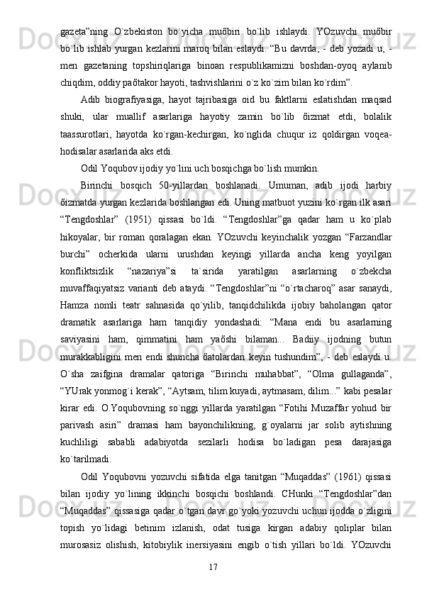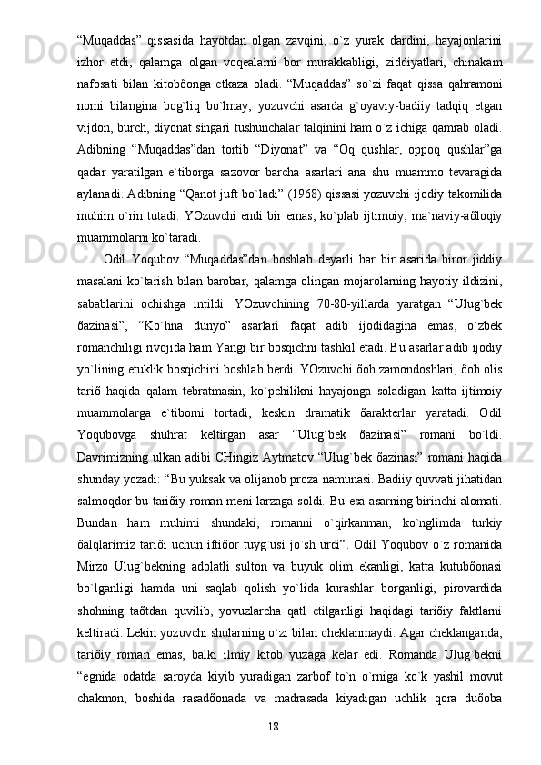 O. Yoqubov – tarixiy romanlar ustasi