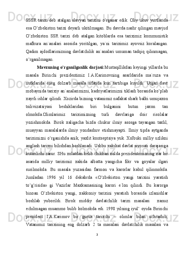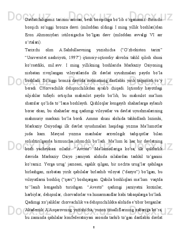 O'zbek davlatchiligi tarixi tarixshunosligi.