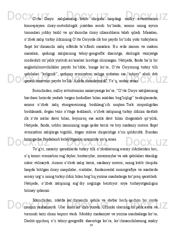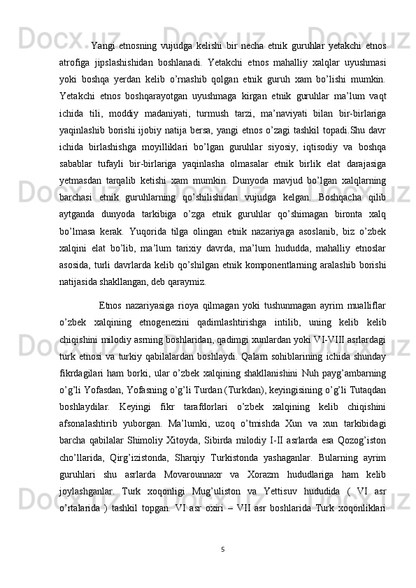 O'zbek etnik nomi kelib chiqishi tarixi xususida
