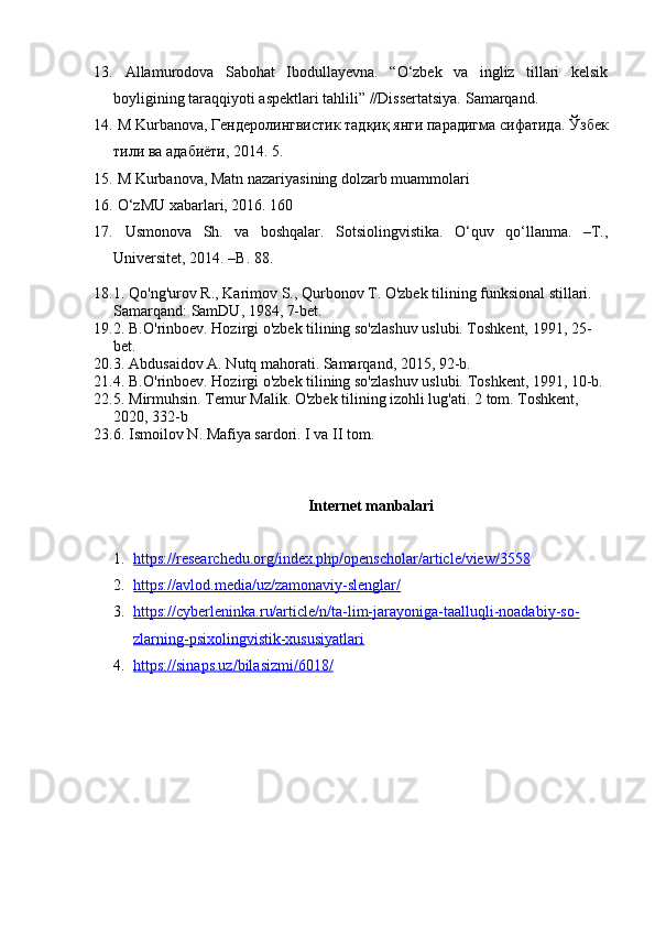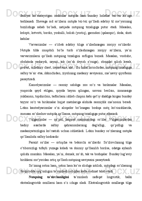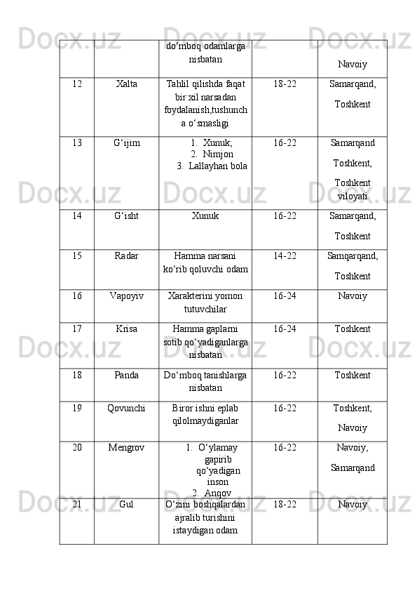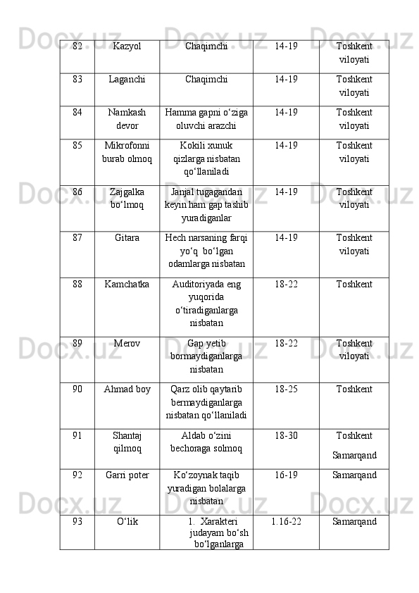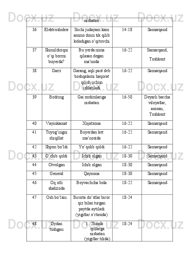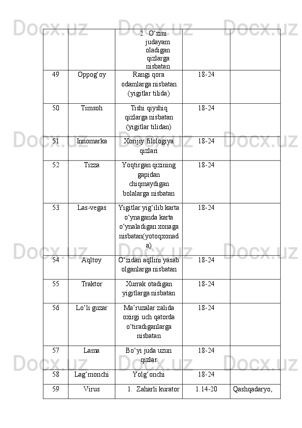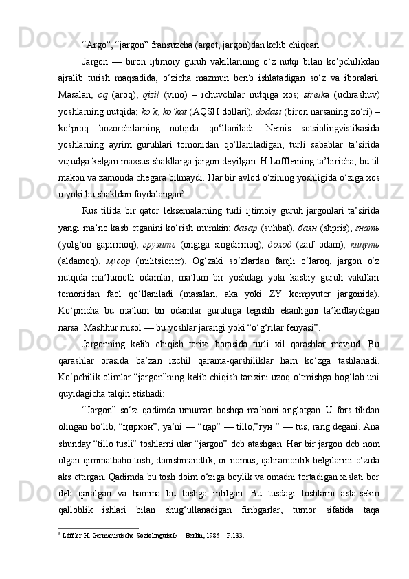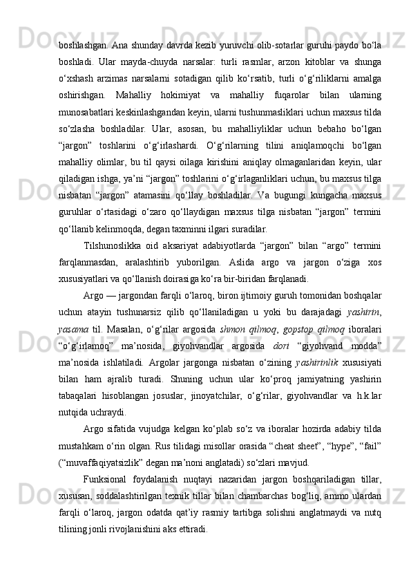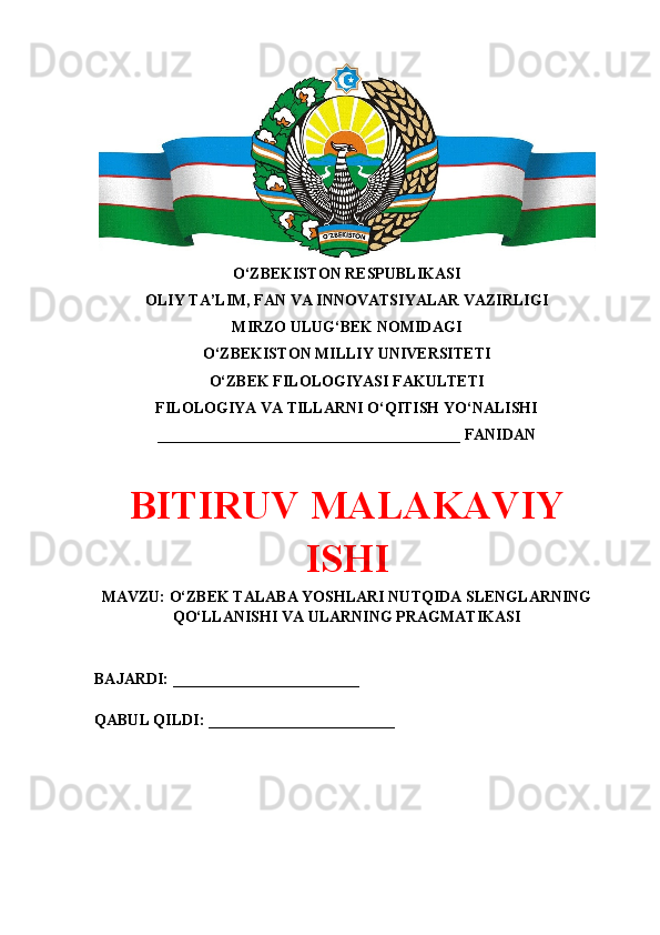| 2.2. Talabalar nutqiga slenglarning o‘zlashuvi…………………..………. | |