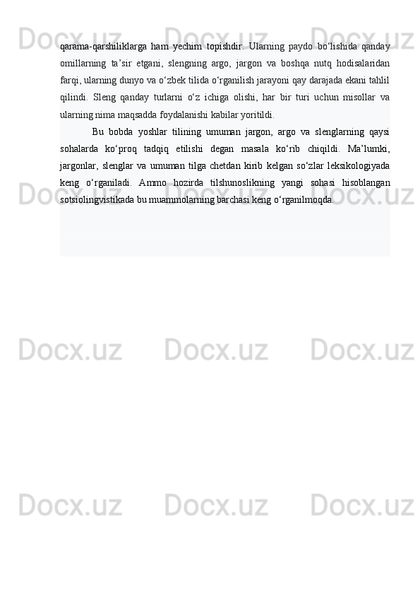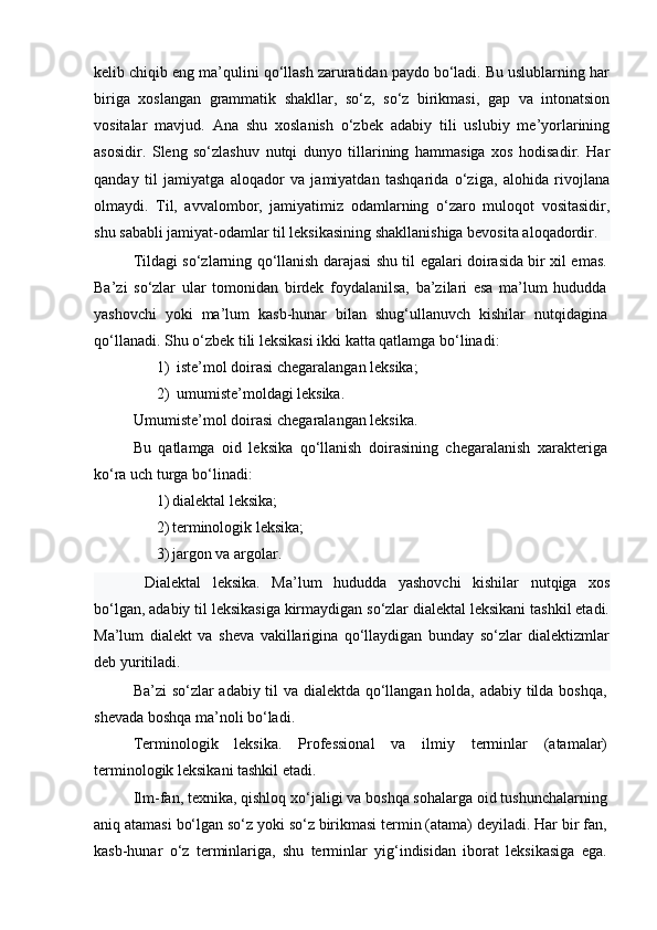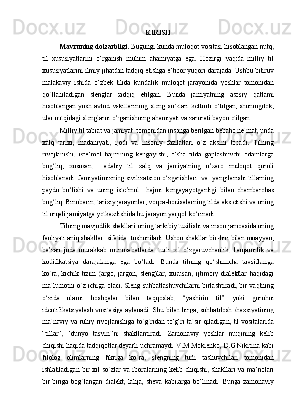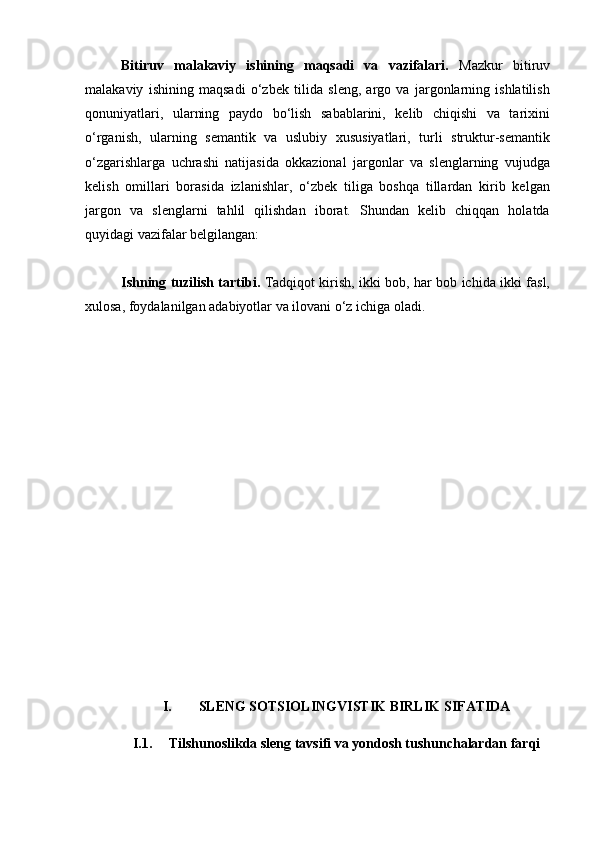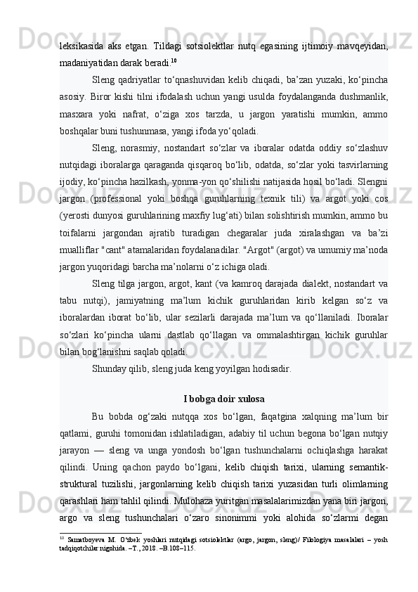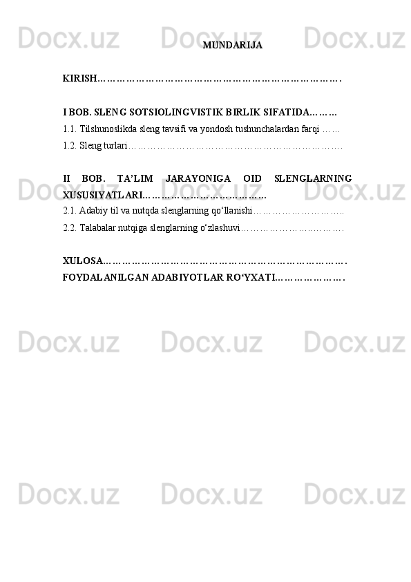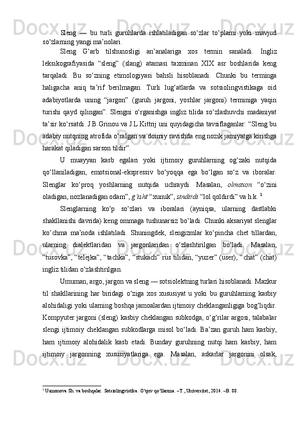 | I BOB. SLENG SOTSIOLINGVISTIK BIRLIK SIFATIDA……… | |