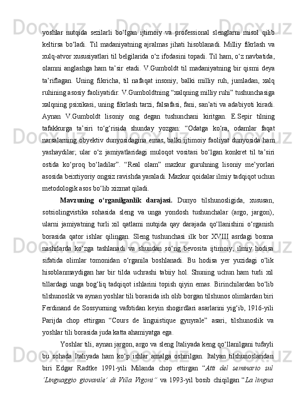 O’zbek talaba yoshlari nutqida slenglarning qo‘llanishi va ularning pragmatikasi