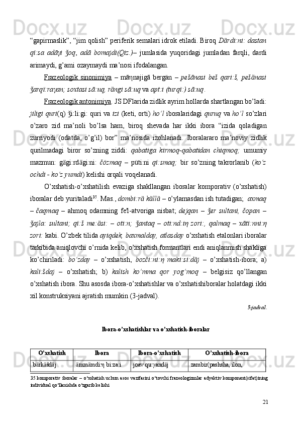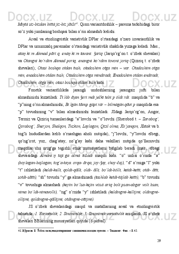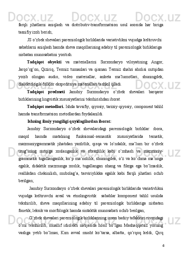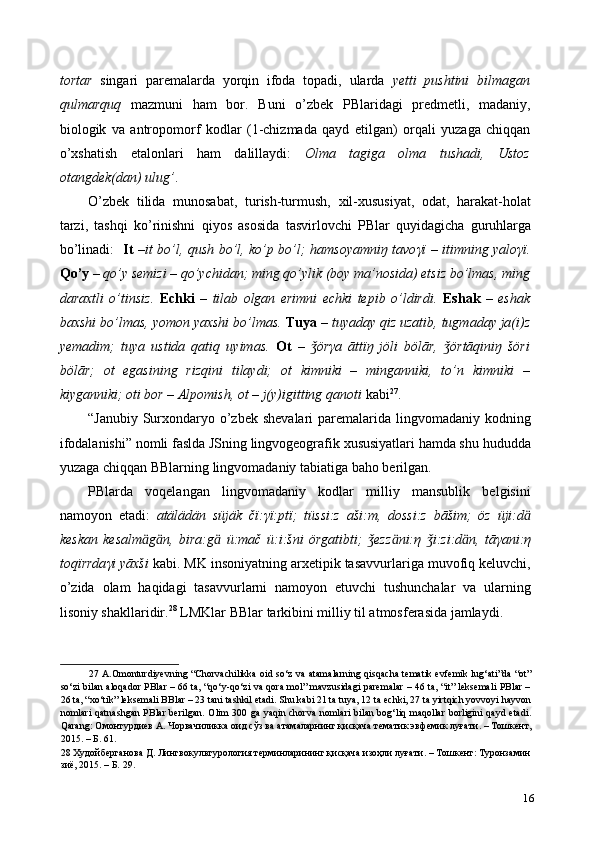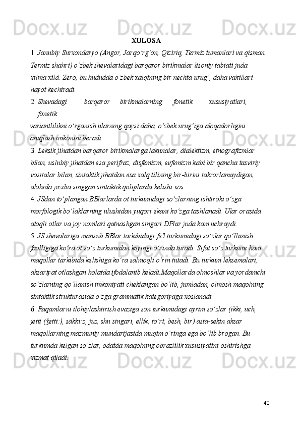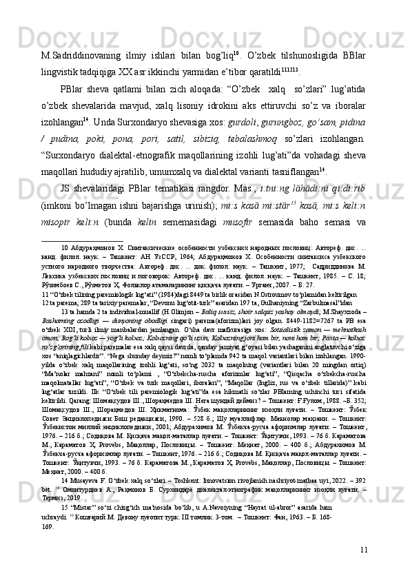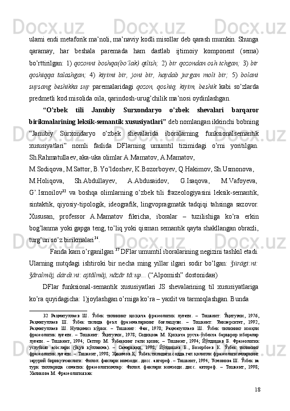 O’zbek tili janubiy Surxondaryo o’zbek shevalari barqaror birikmalarining lingvistik xususiyatlari