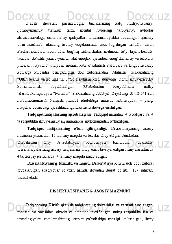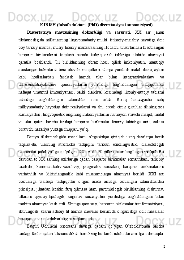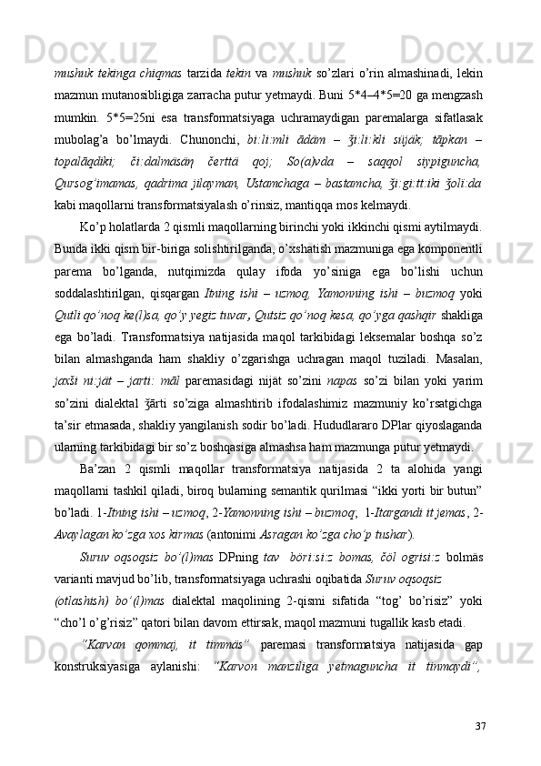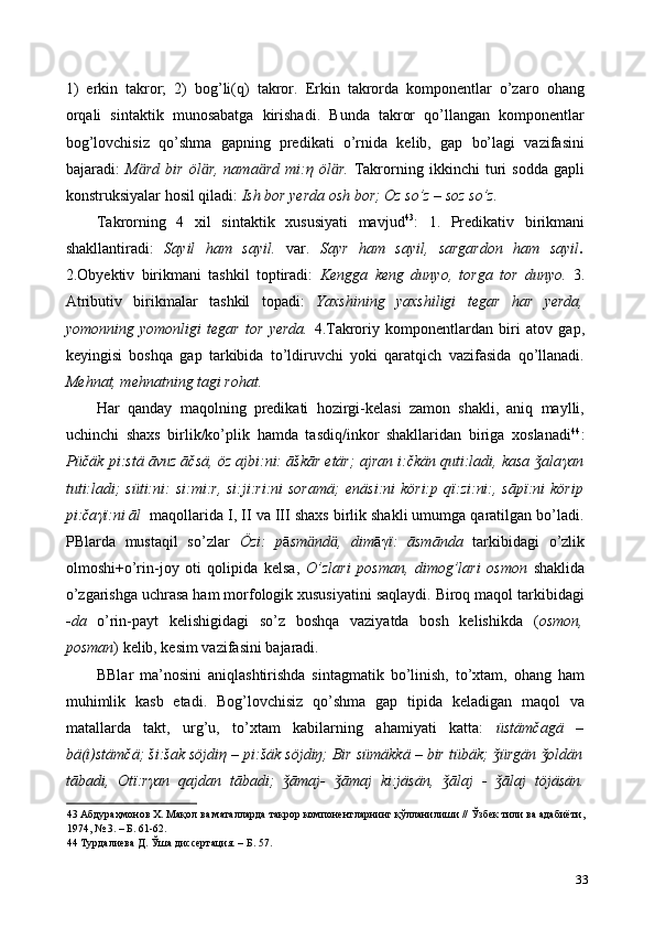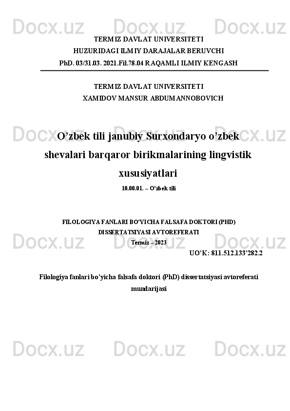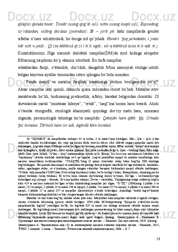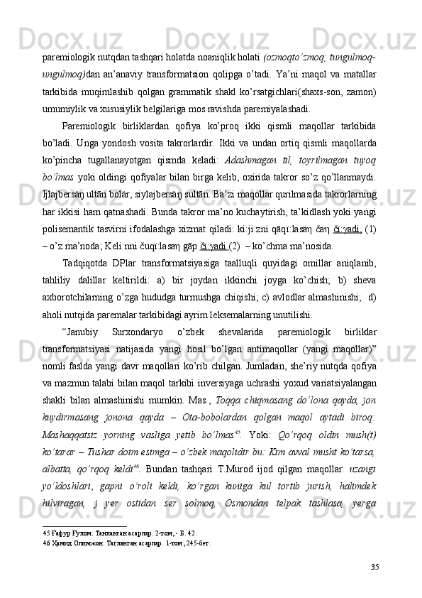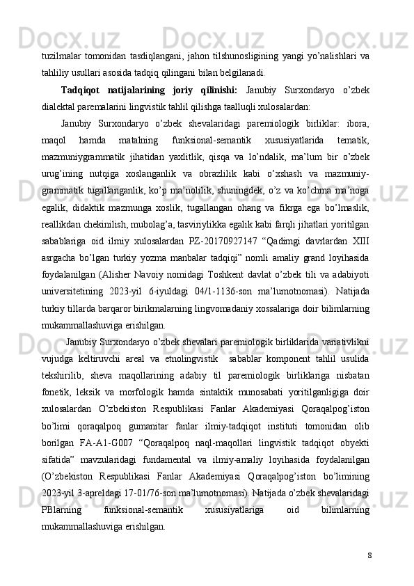 O’zbek tili janubiy Surxondaryo o’zbek shevalari barqaror birikmalarining lingvistik xususiyatlari