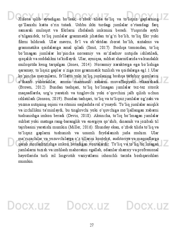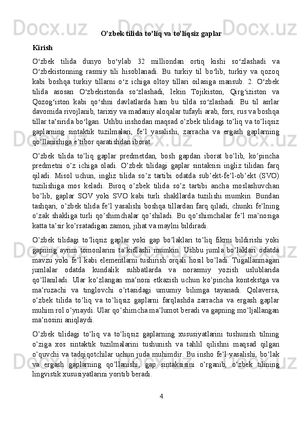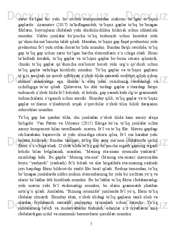 O’zbek tilida to’liq va to’liqsiz gaplar