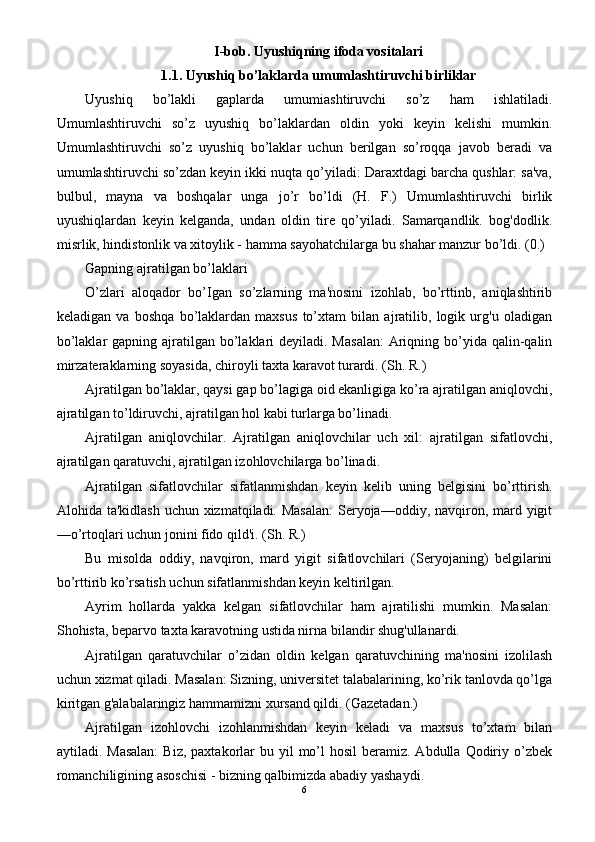 O’zbek tilida uyushiqlik hodisasi tadqiqi