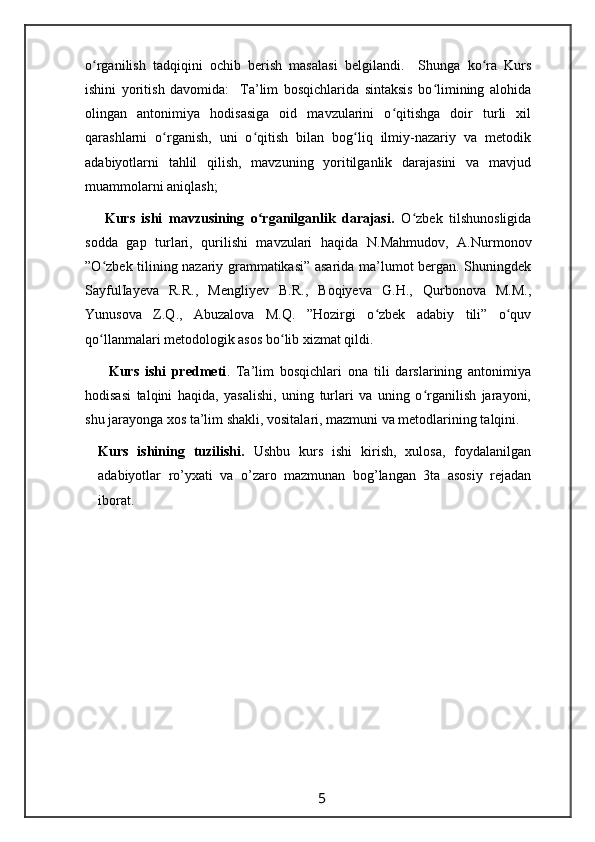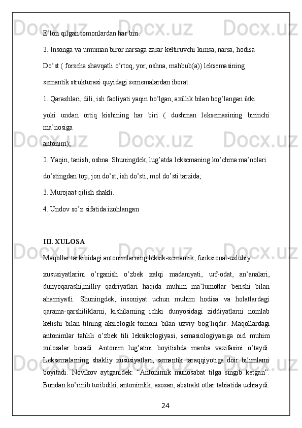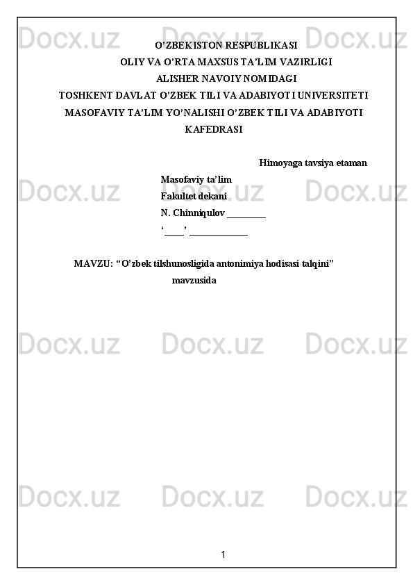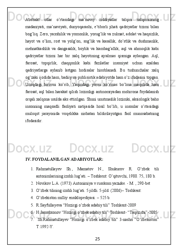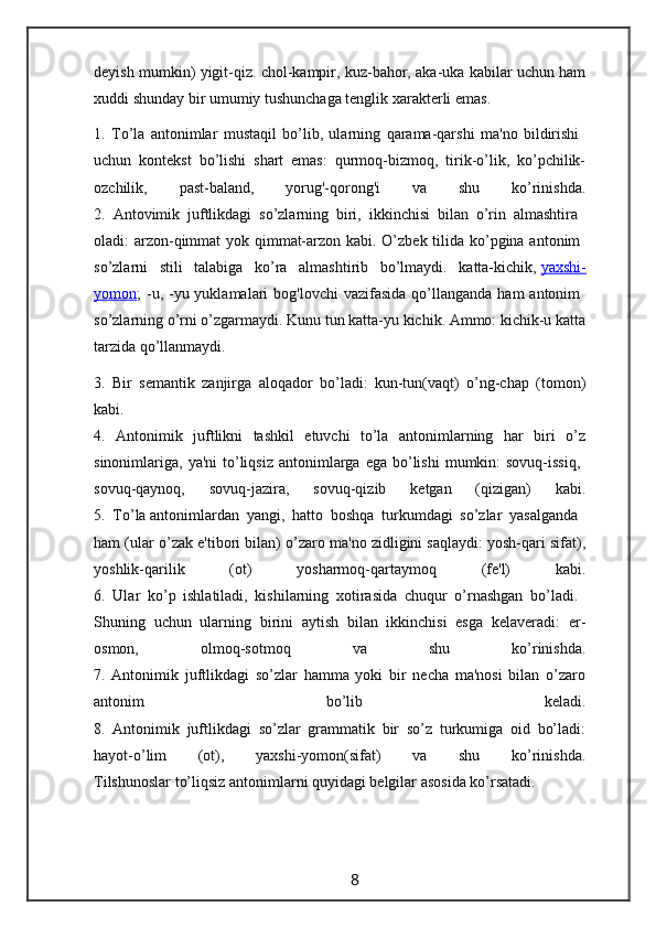 O’zbek tilshunosligida antonimiya hodisasi talqini