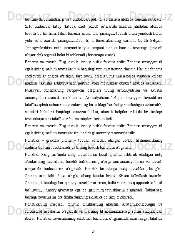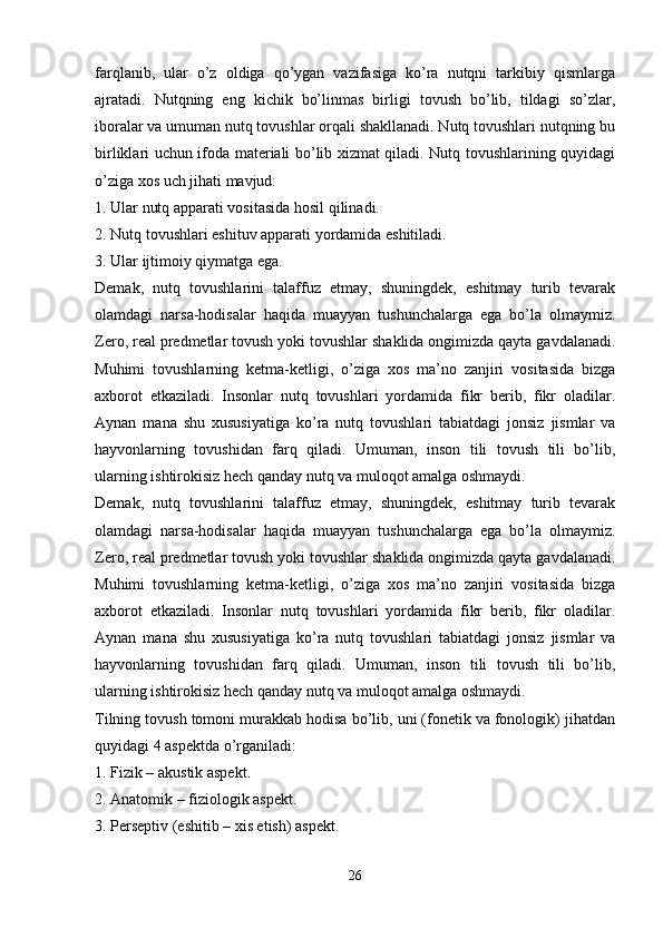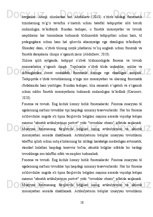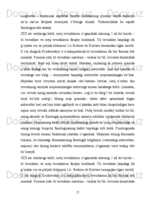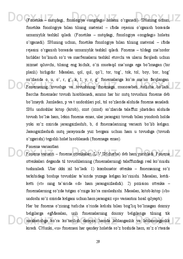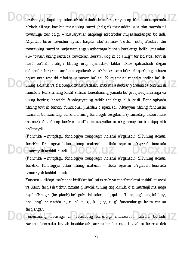O’zbek tilshunosligida fonema va tovush munosabati tavsifi