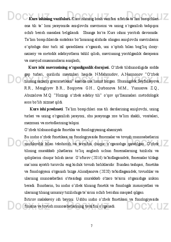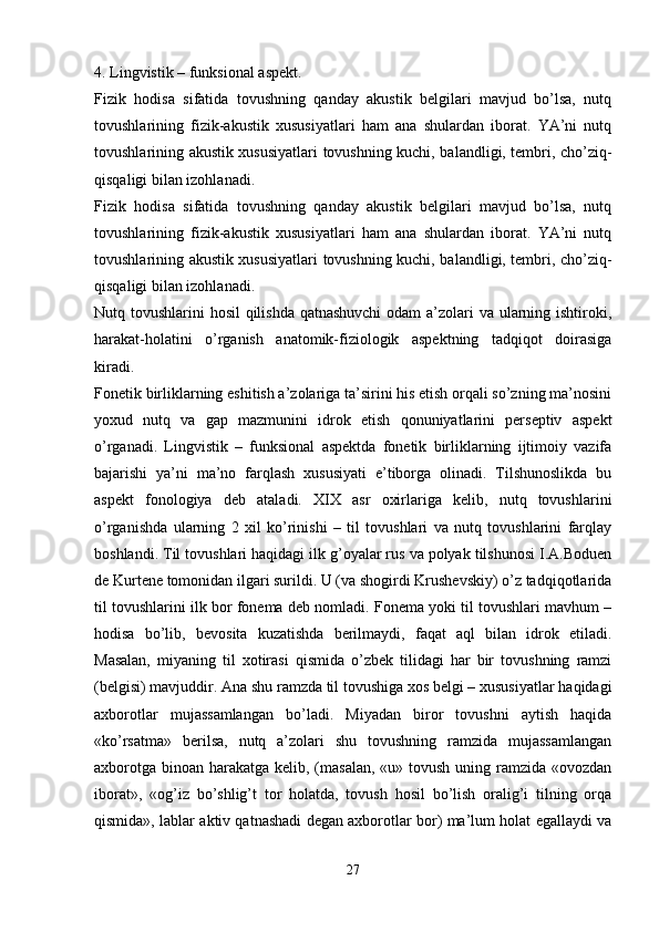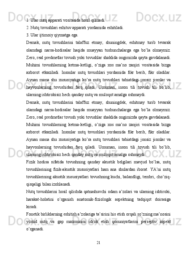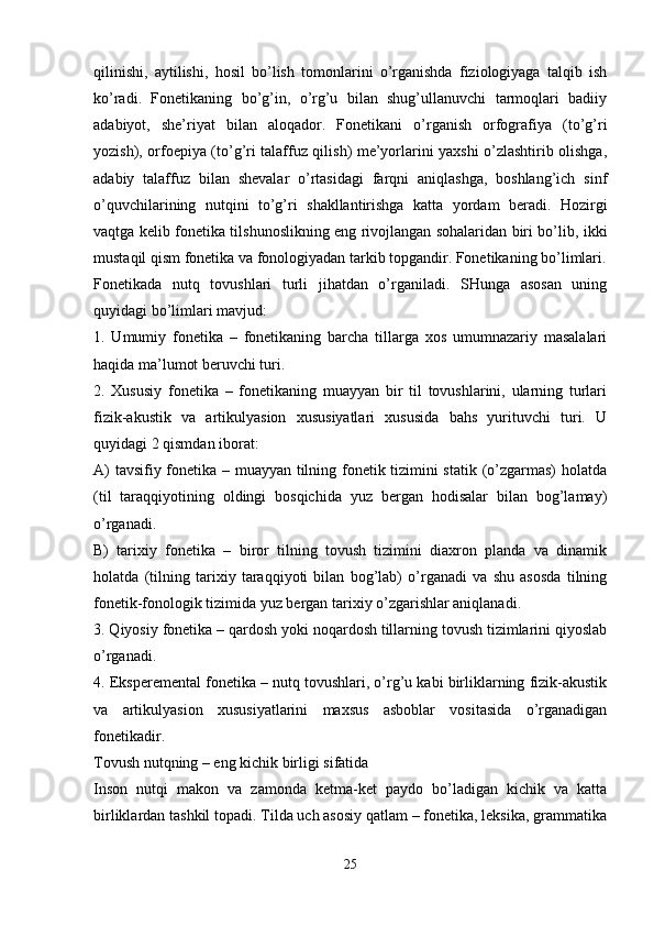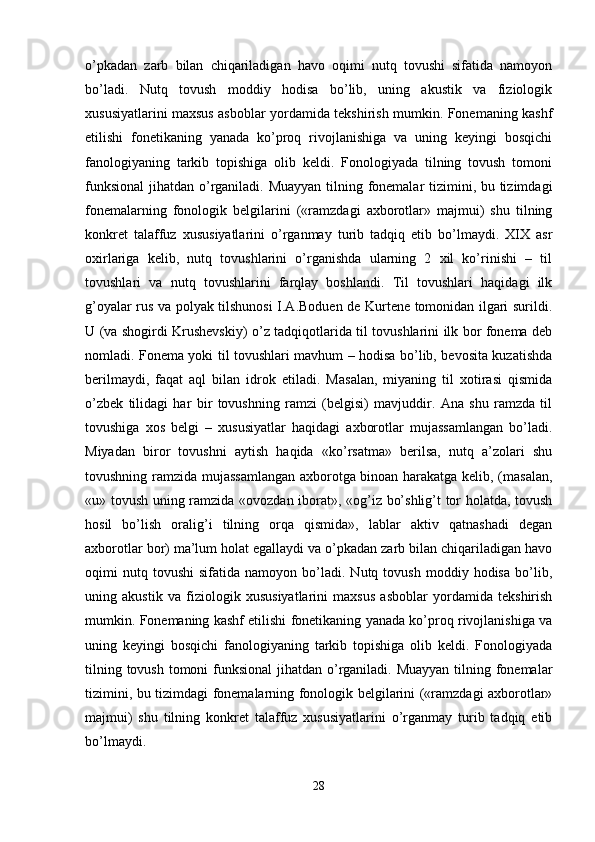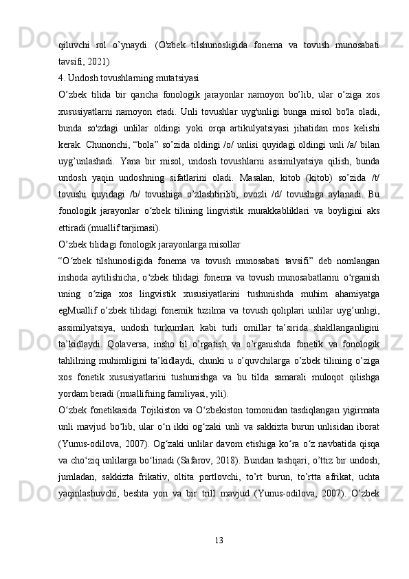 O’zbek tilshunosligida fonema va tovush munosabati tavsifi