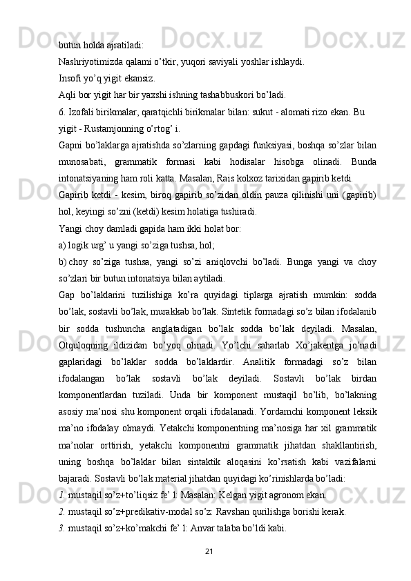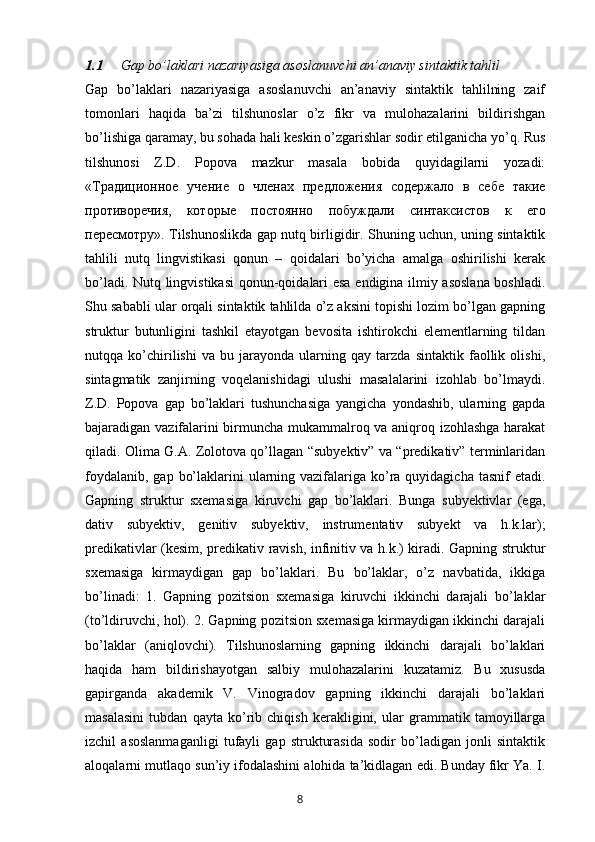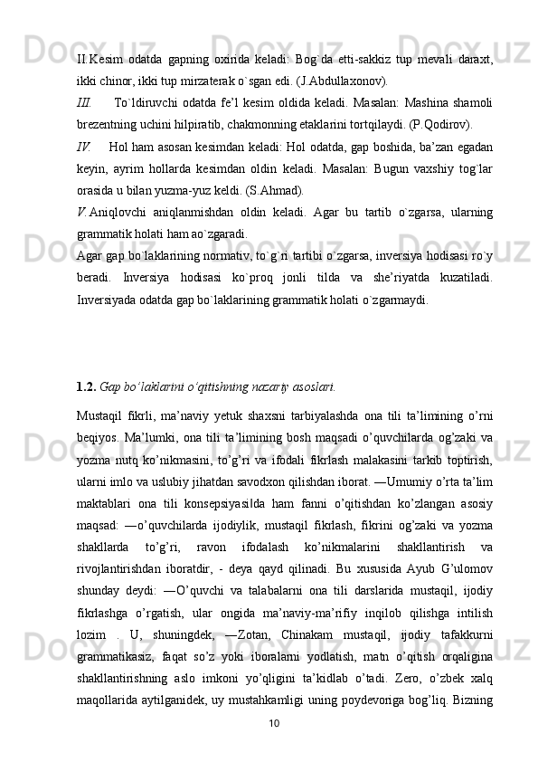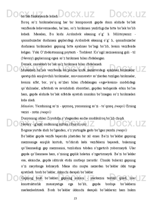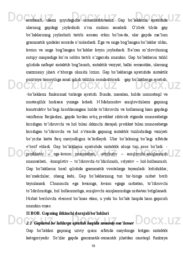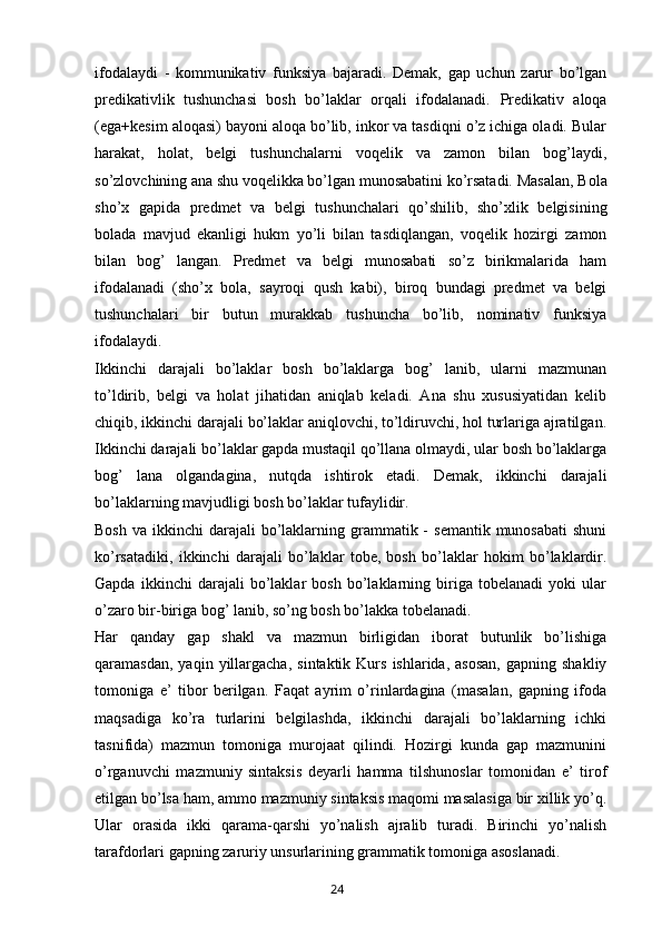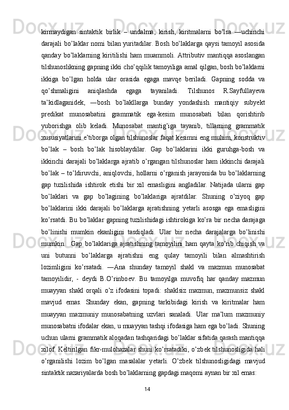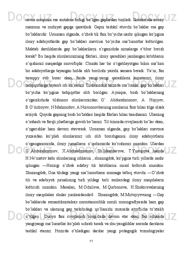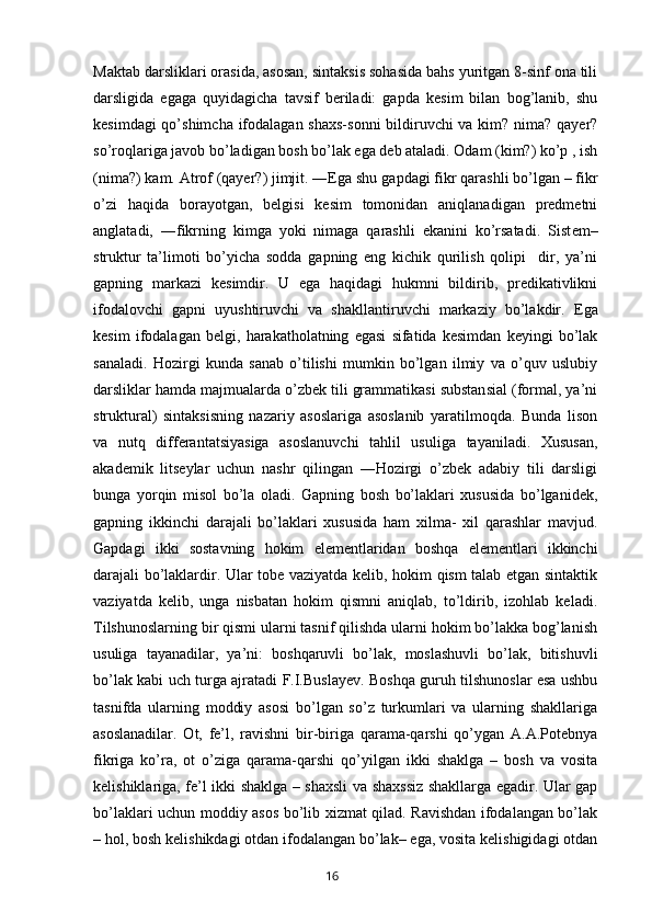 O’zbek tilshunosligida gap bo’laklari nazariyasi