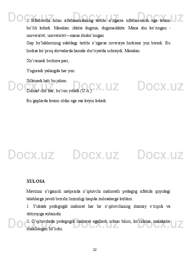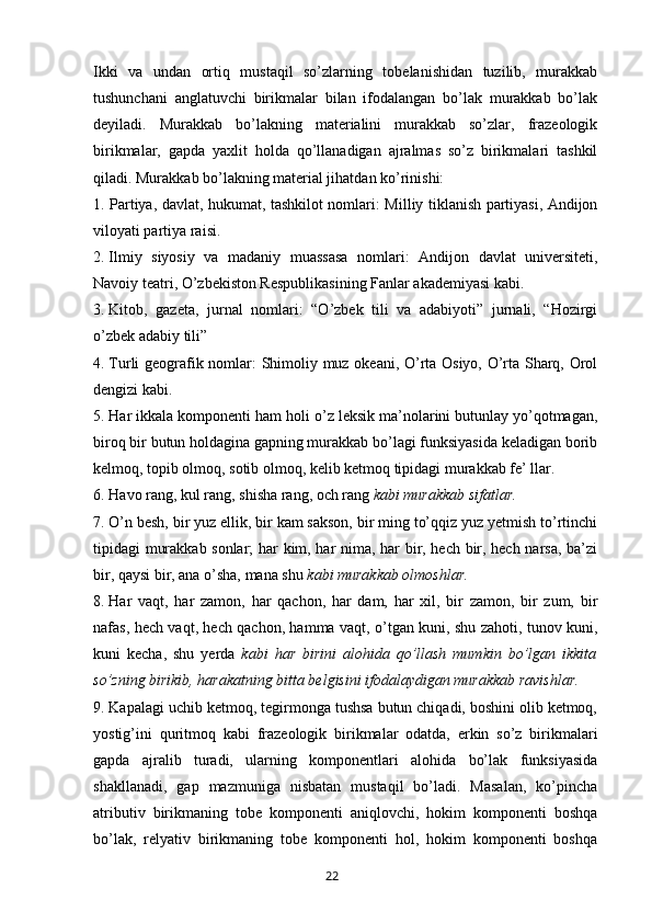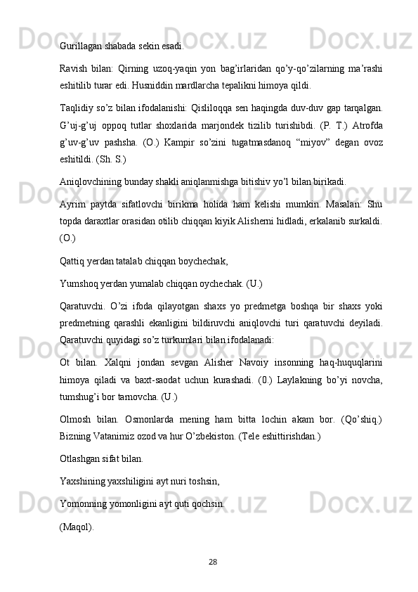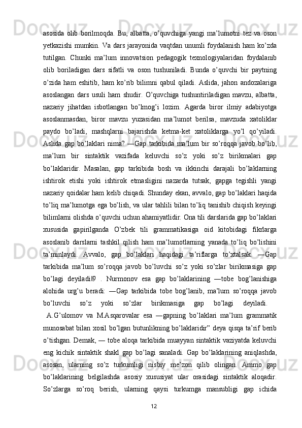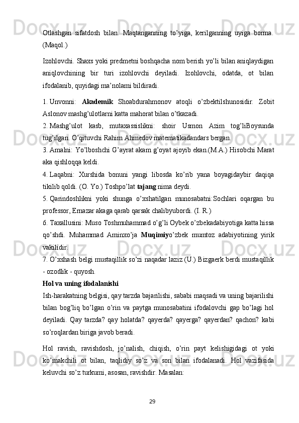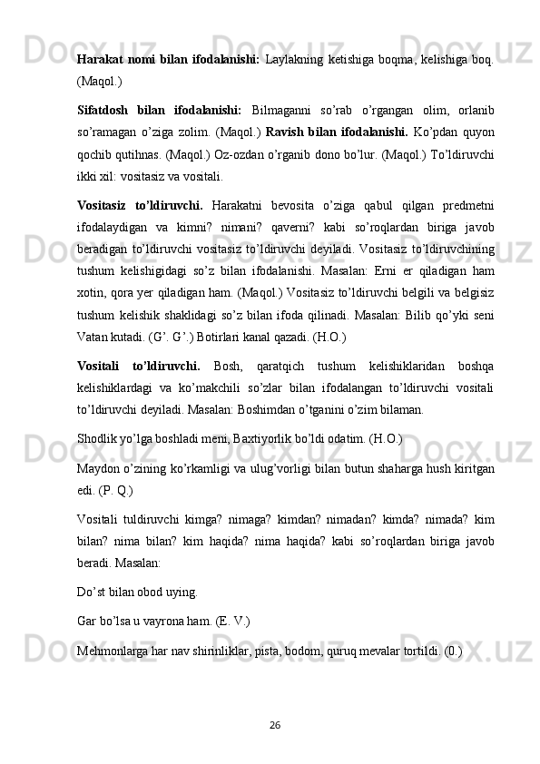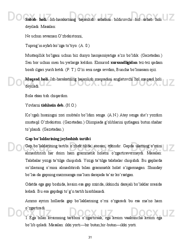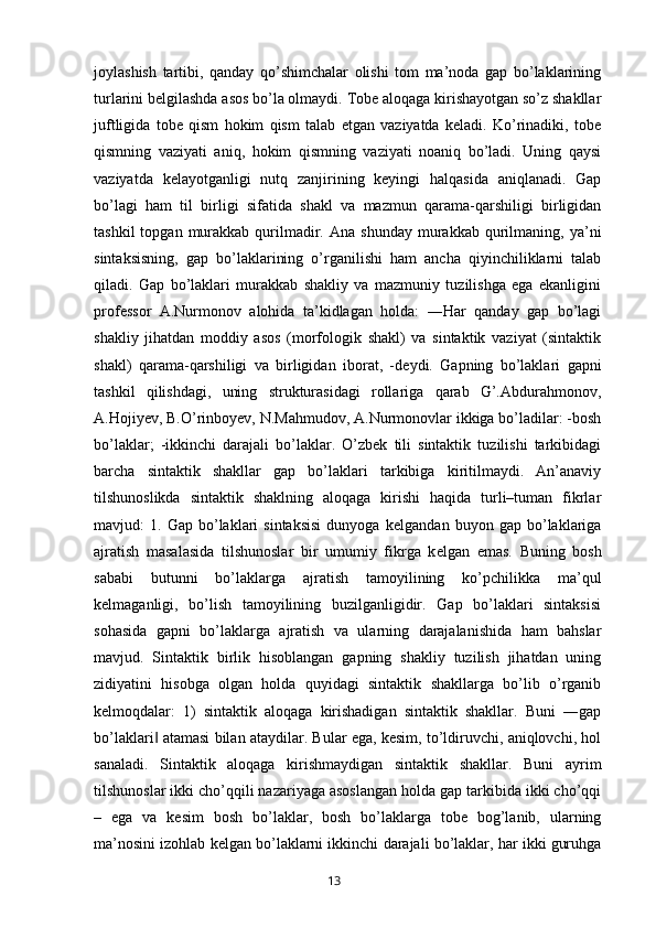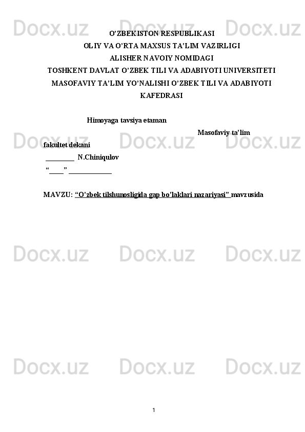 O’zbek tilshunosligida gap bo’laklari nazariyasi