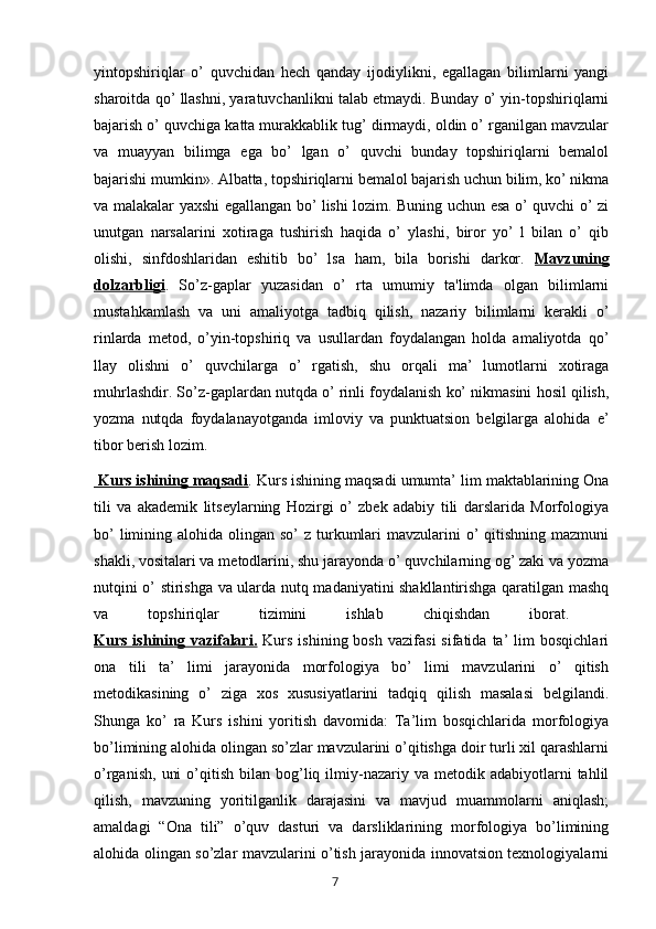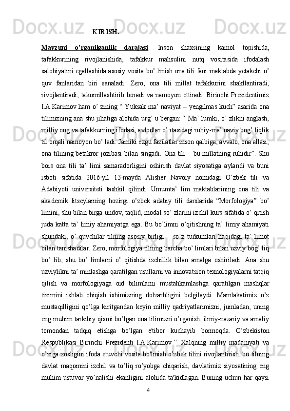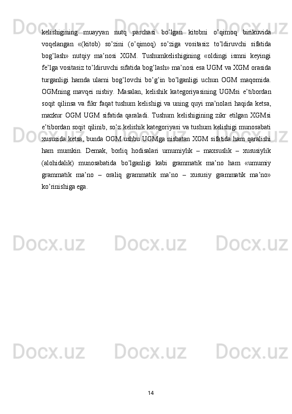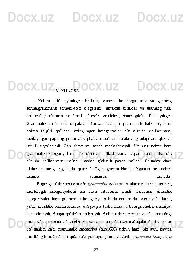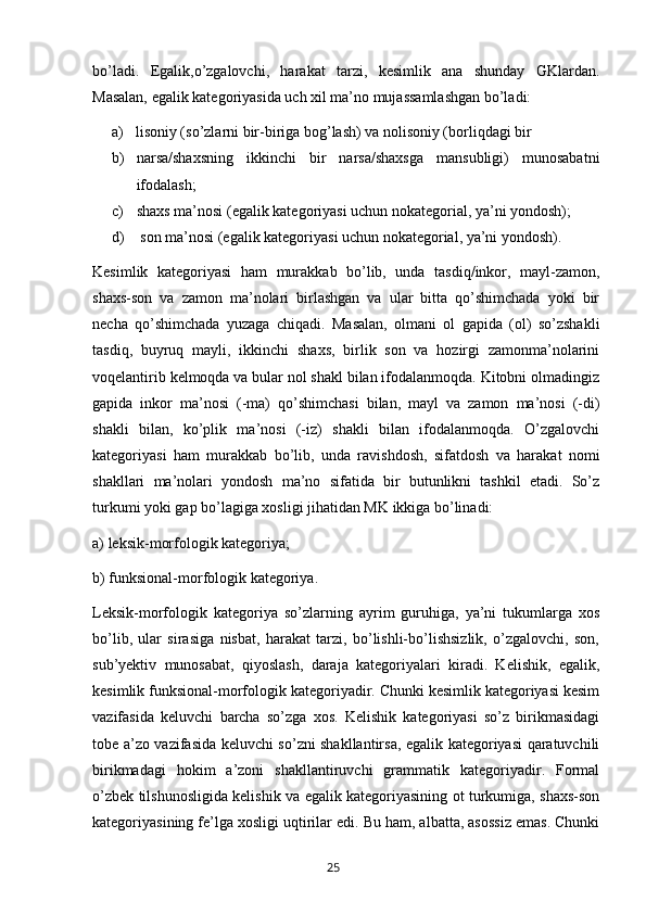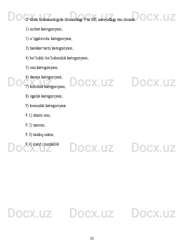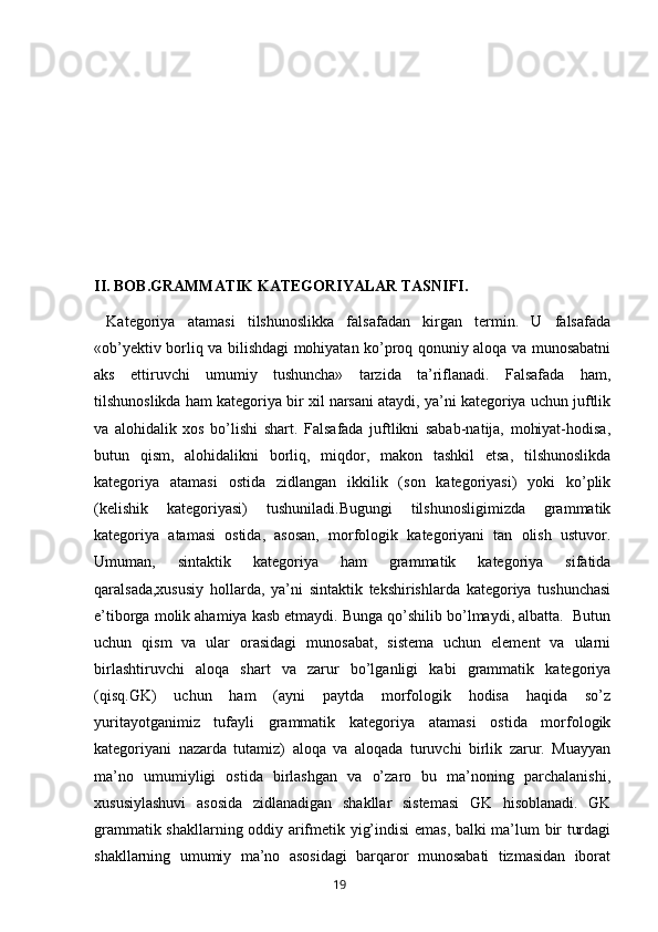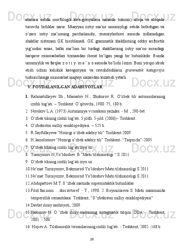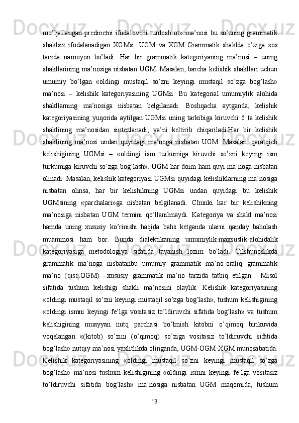 O’zbek tilshunosligida grammatik kategoriya tushunchasi talqini