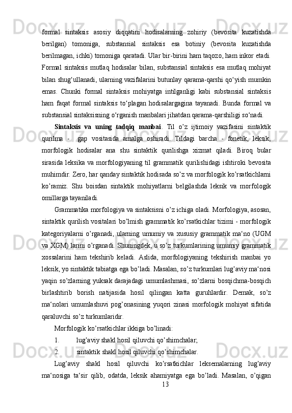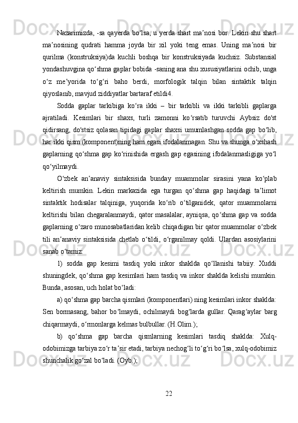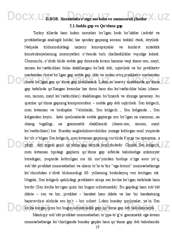 II.BOB. Sintaksisda o‘ziga xos bahs va munozarali jihatlar………….19